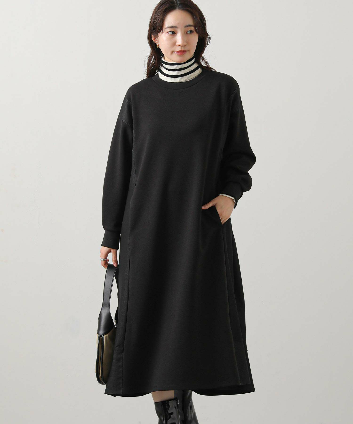 スッキリしたトップスから緩やかに広がるシルエットで、カジュアルさと女性らしさを兼ね備えデザイン。