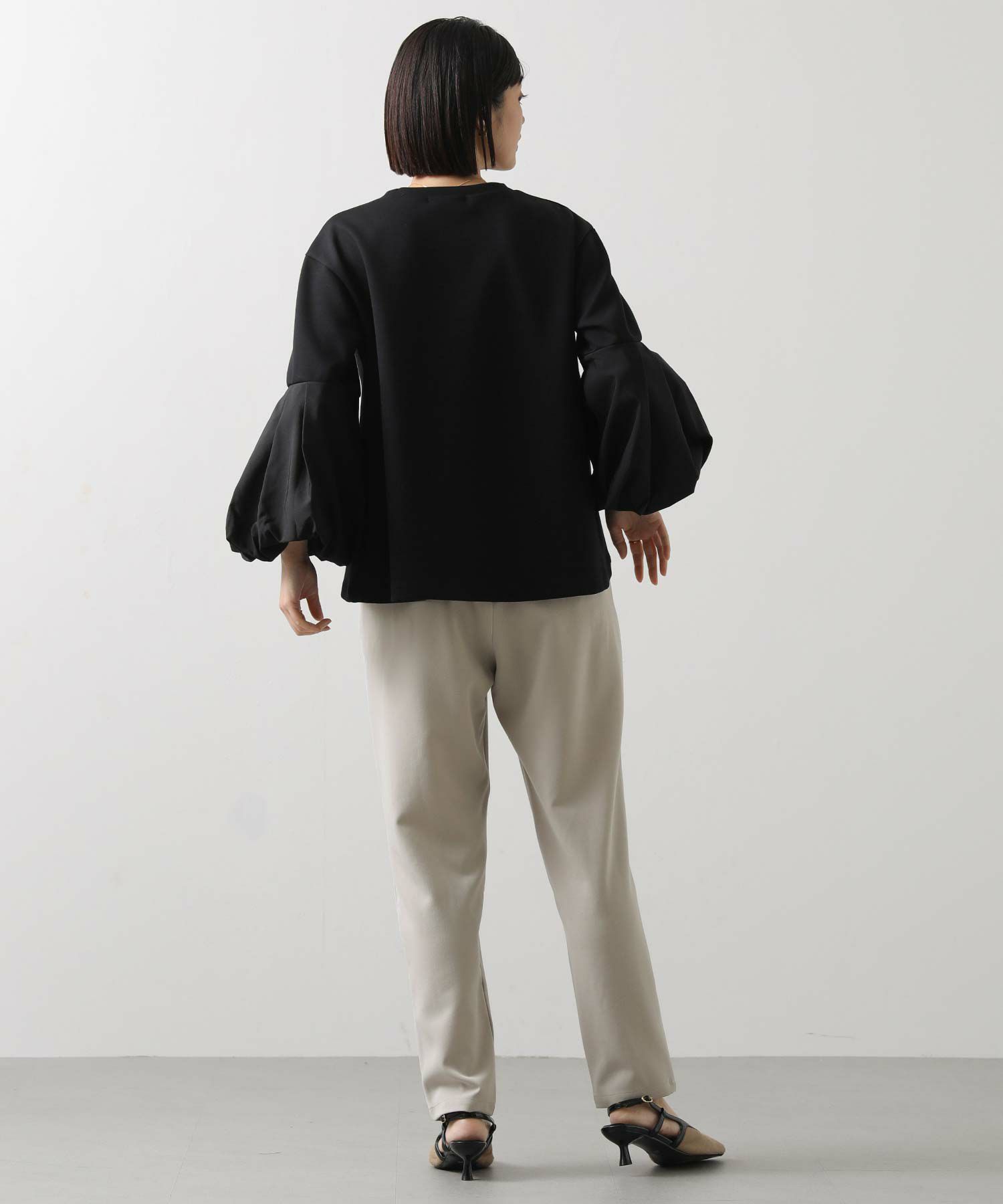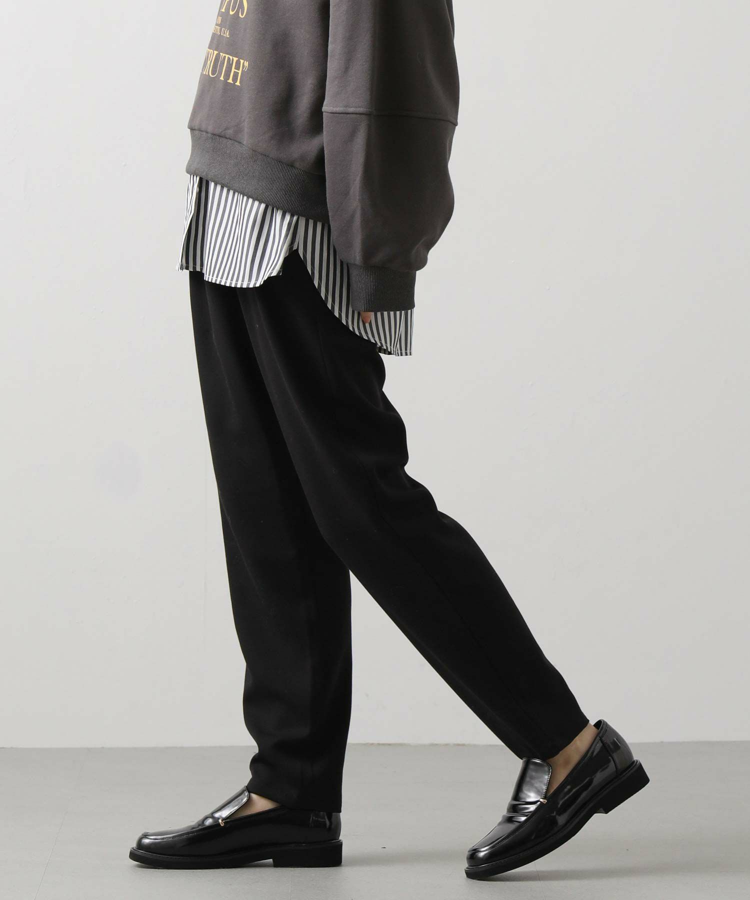 ウエストゴムの楽ちんな穿き心地に、きちんと見えするシルエットがオン・オフ使える万能パンツです。