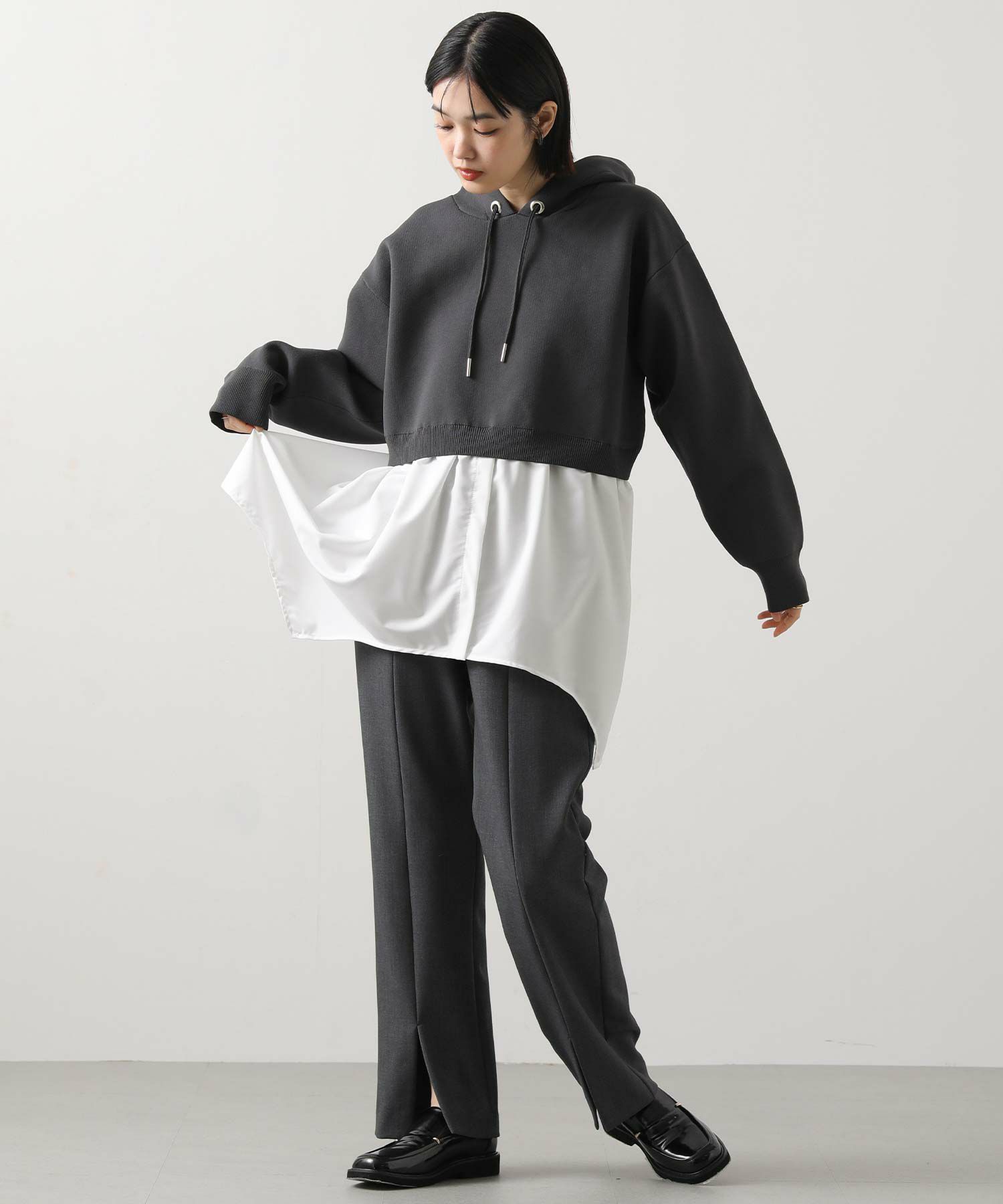 ※着用画像は撮影状況、光の当たり具合で色みが違って見える場合がございます。実際の色みについては、画像一覧の最後に掲載している詳細画像をご参照ください。