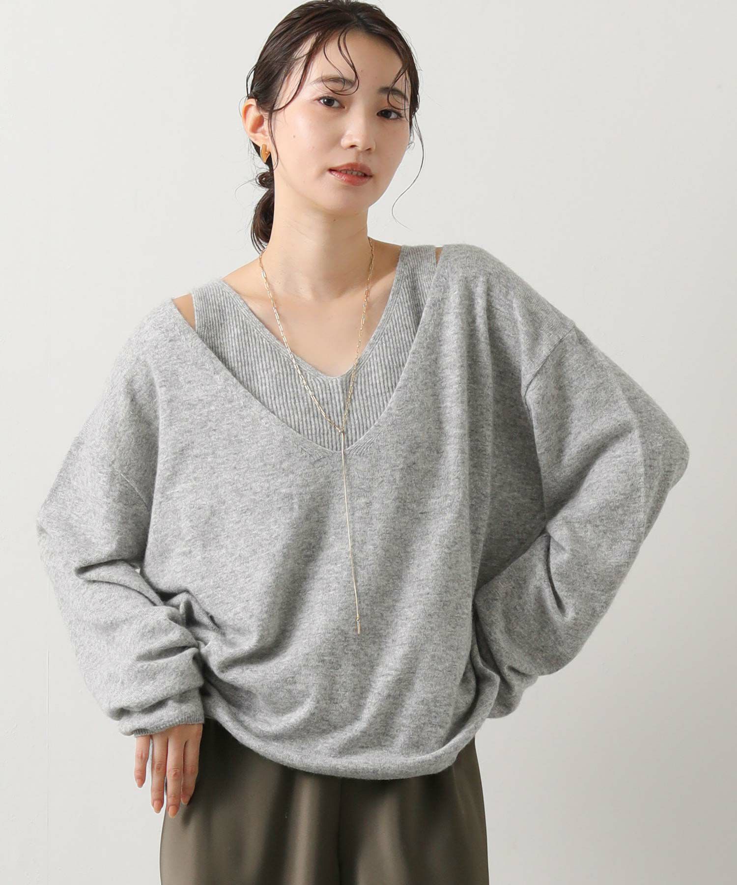深Vネックプルオーバーとタンク型の2枚がセットになって、たっぷり気回せるのが嬉しいアイテム。