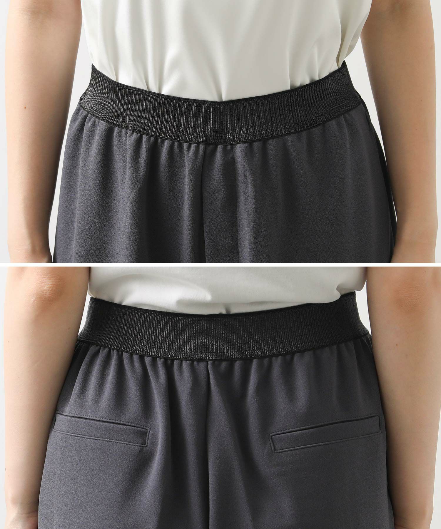 さらっと軽やかなストレッチジョーゼットを使用し、ポイントのラメ入りベルトは総ゴムで穿き心地◎