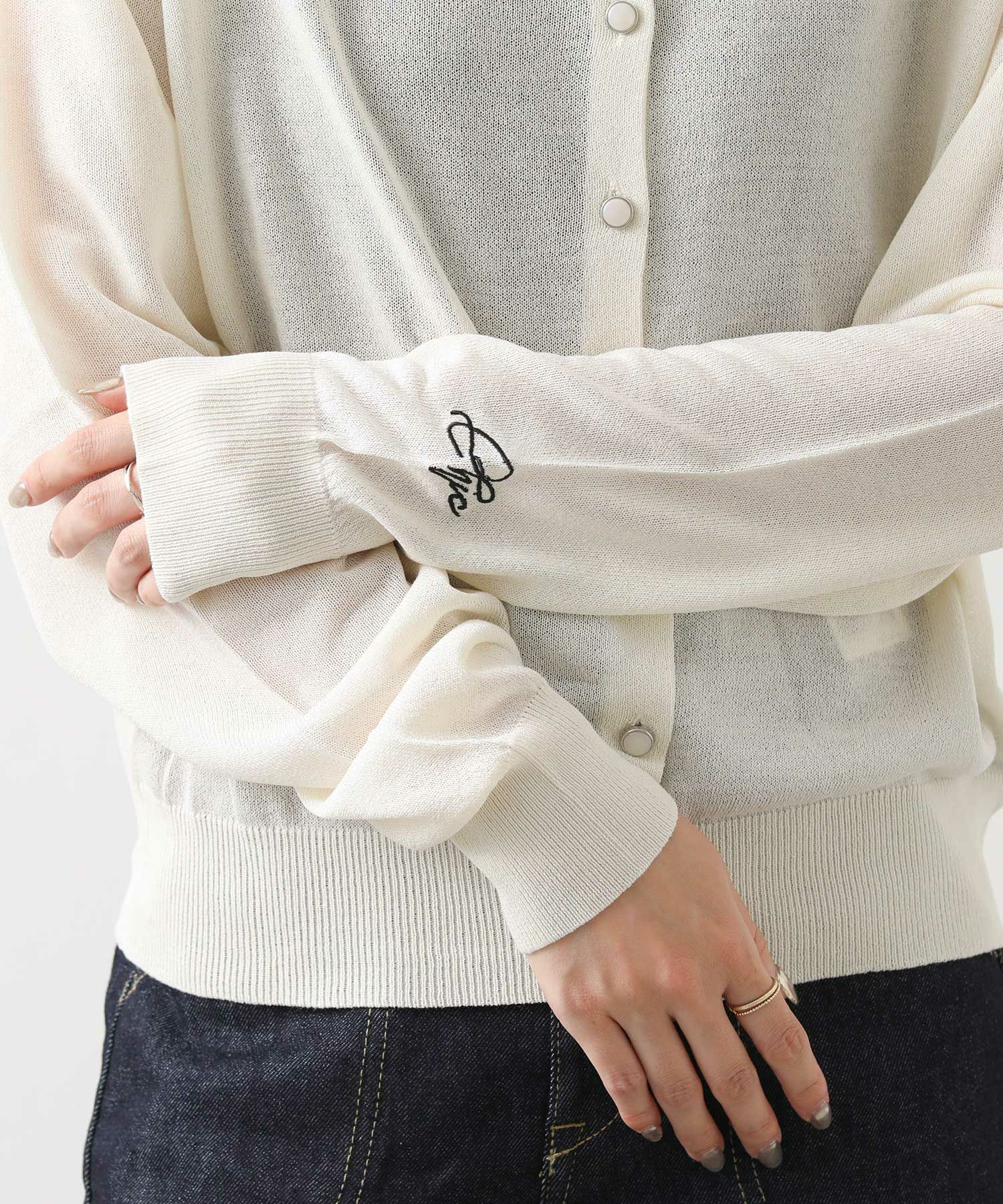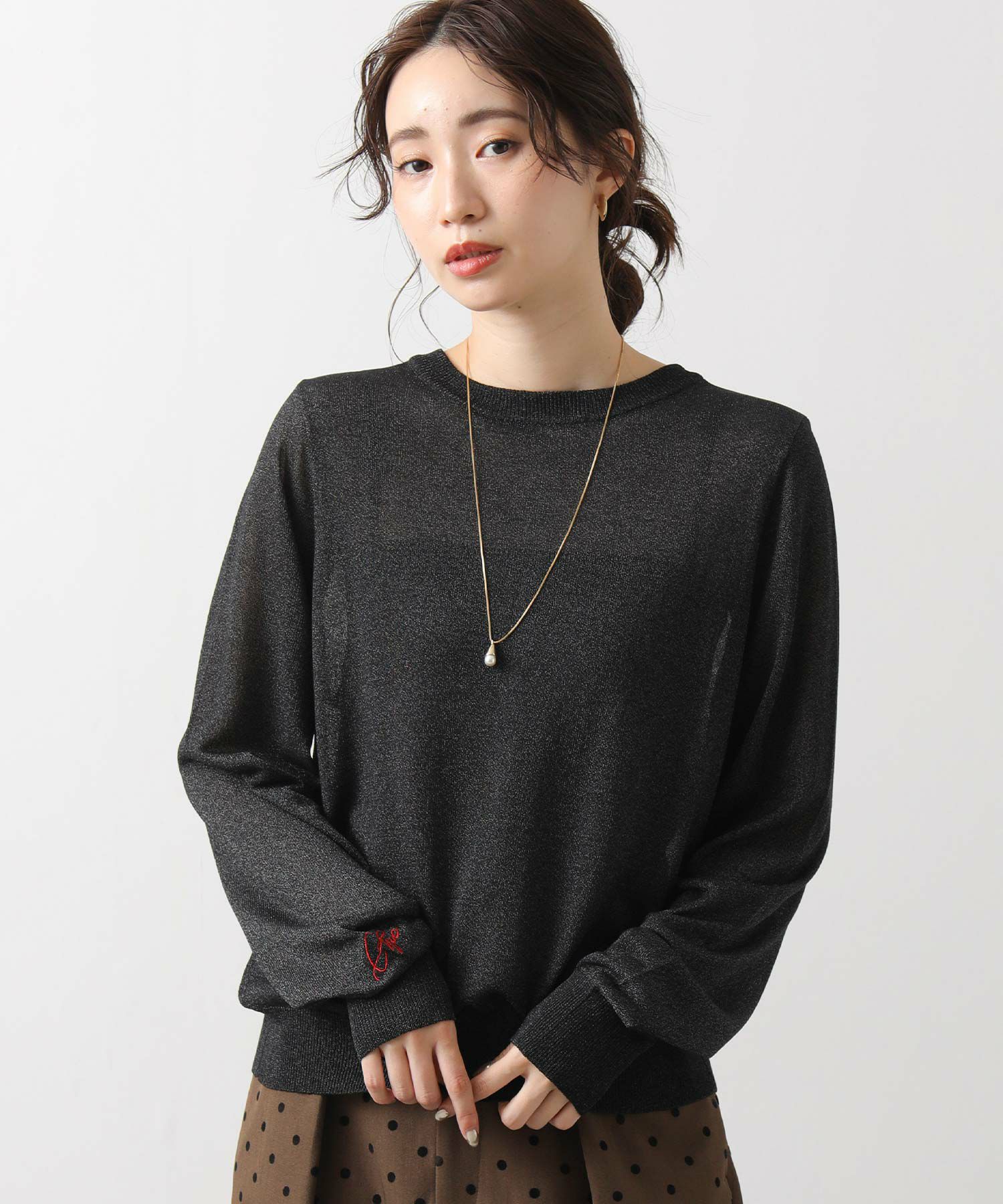 袖口のさりげないロゴ刺繍がポイントのコンパクトシアーニット。