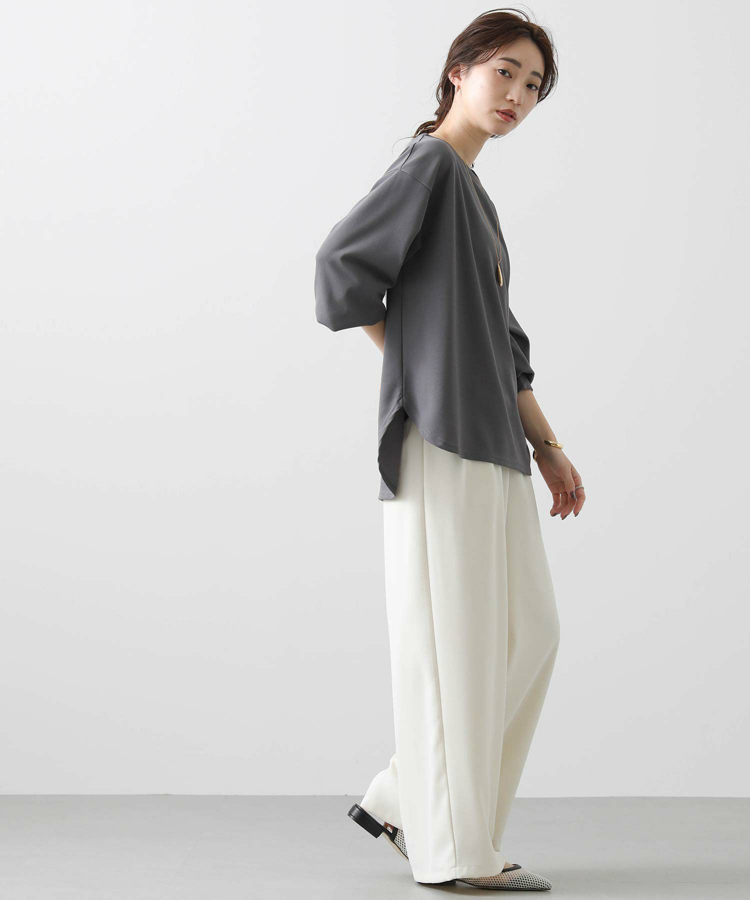 布帛見えするカットジョーゼット生地を使用した、きちんと見えも叶うプルオーバー。