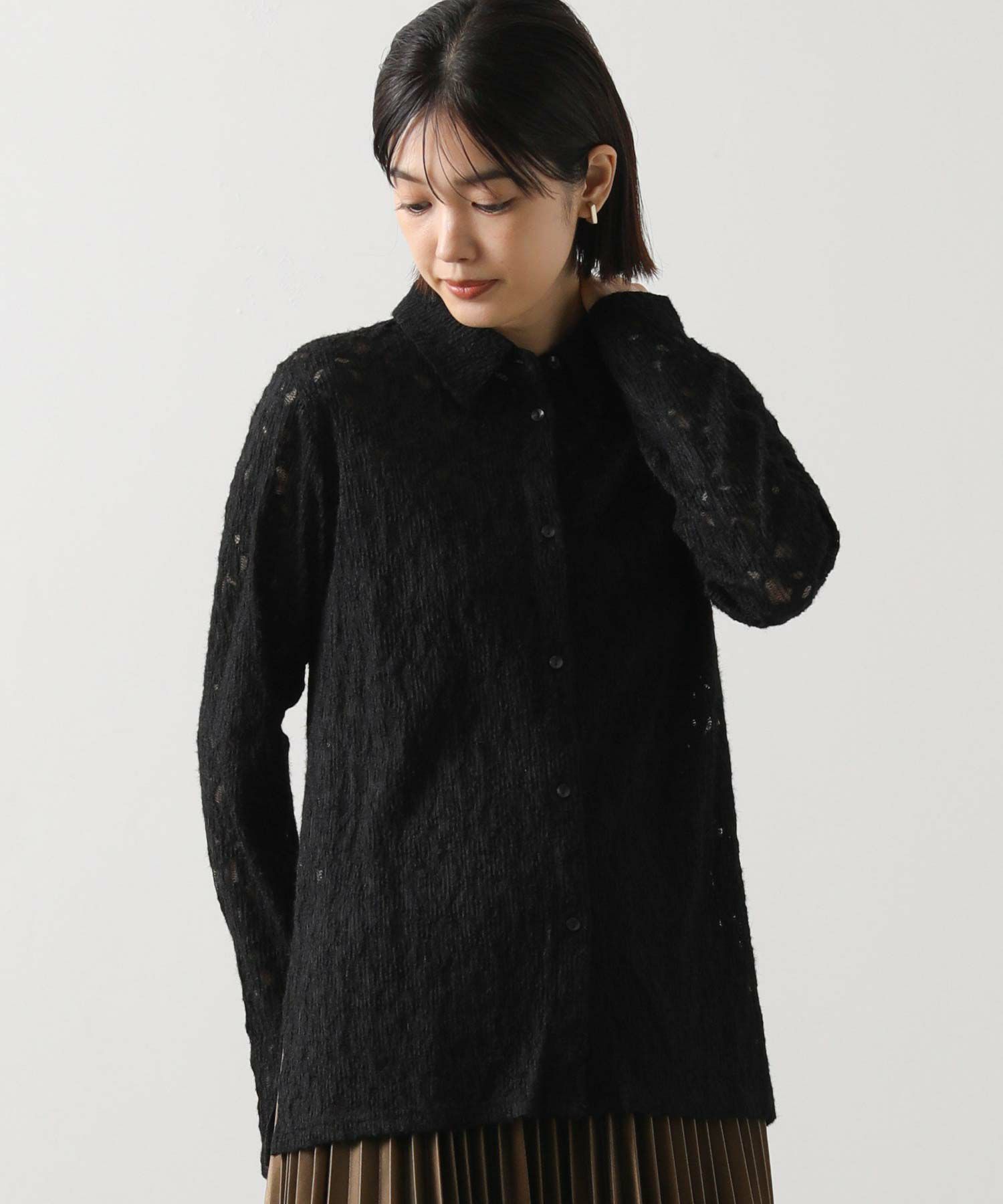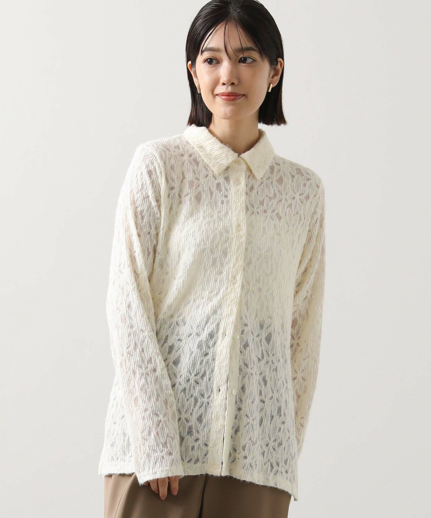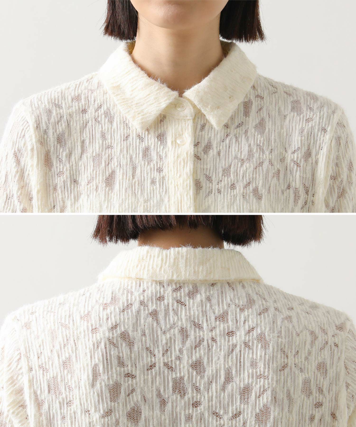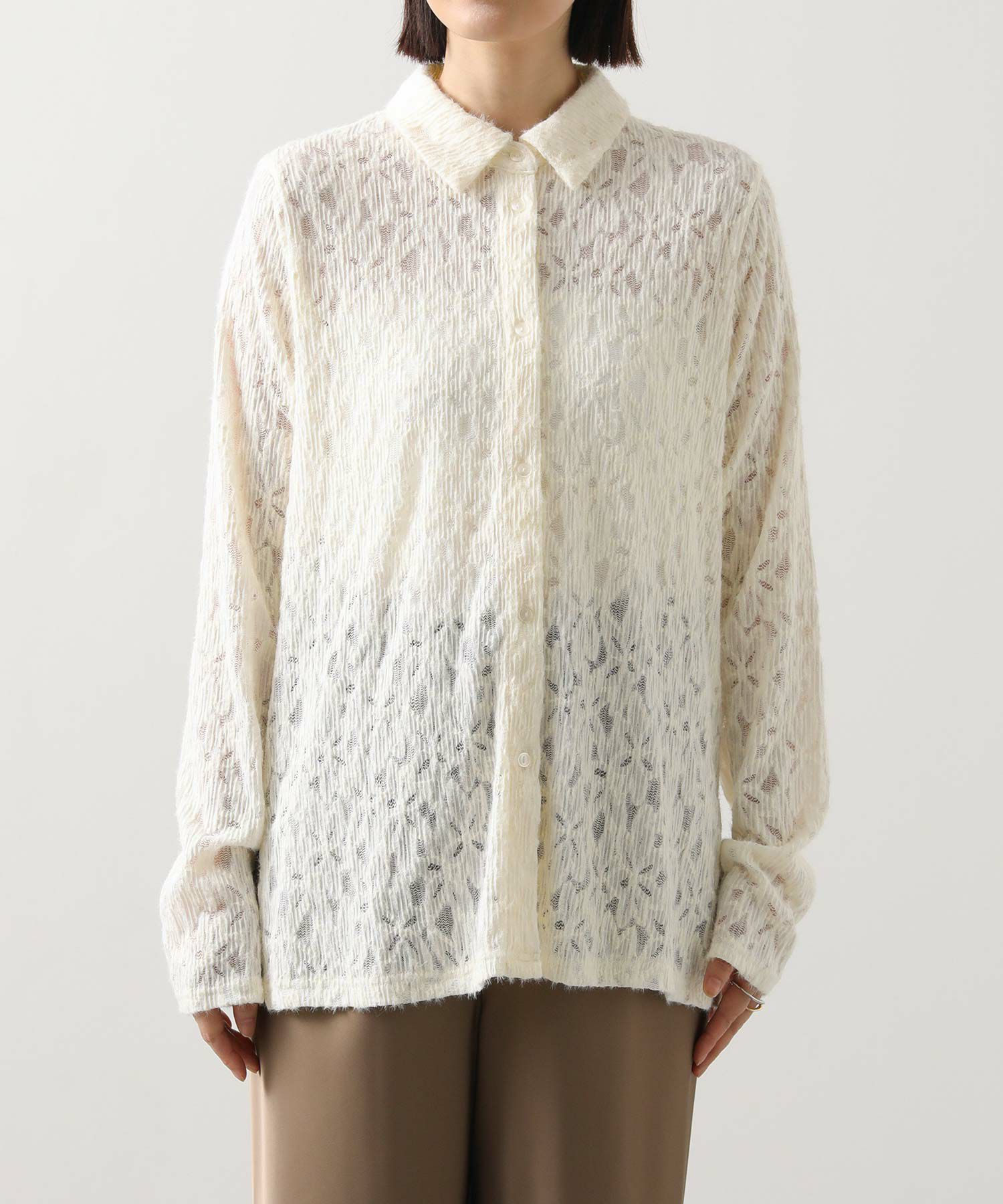 総レースで仕立てたシャツ。