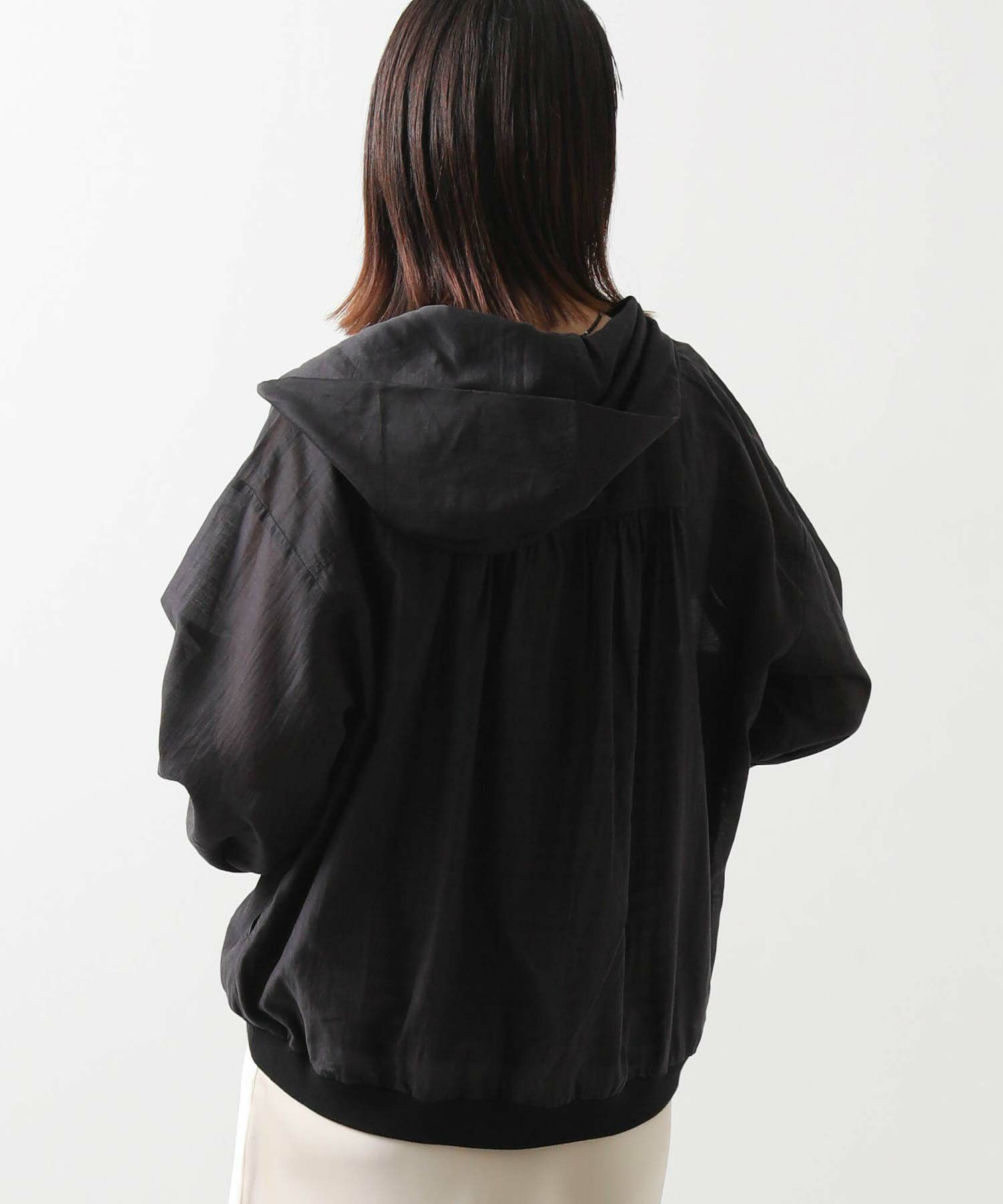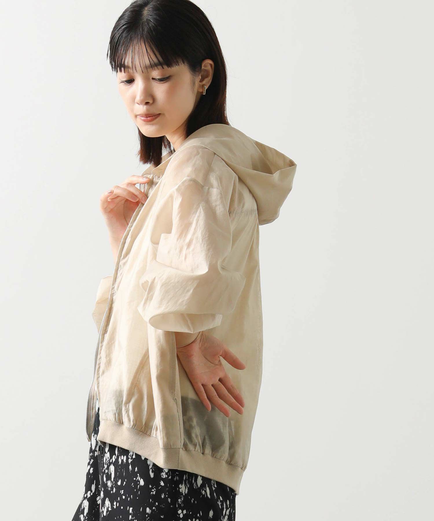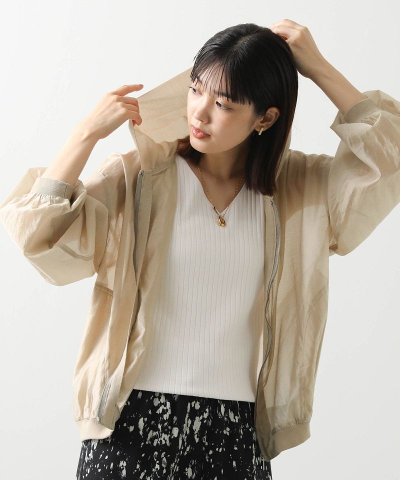 カジュアルなイメージのパーカーですが、上品な透け感の素材でキレイめコーデにも合わせやすい1枚。
