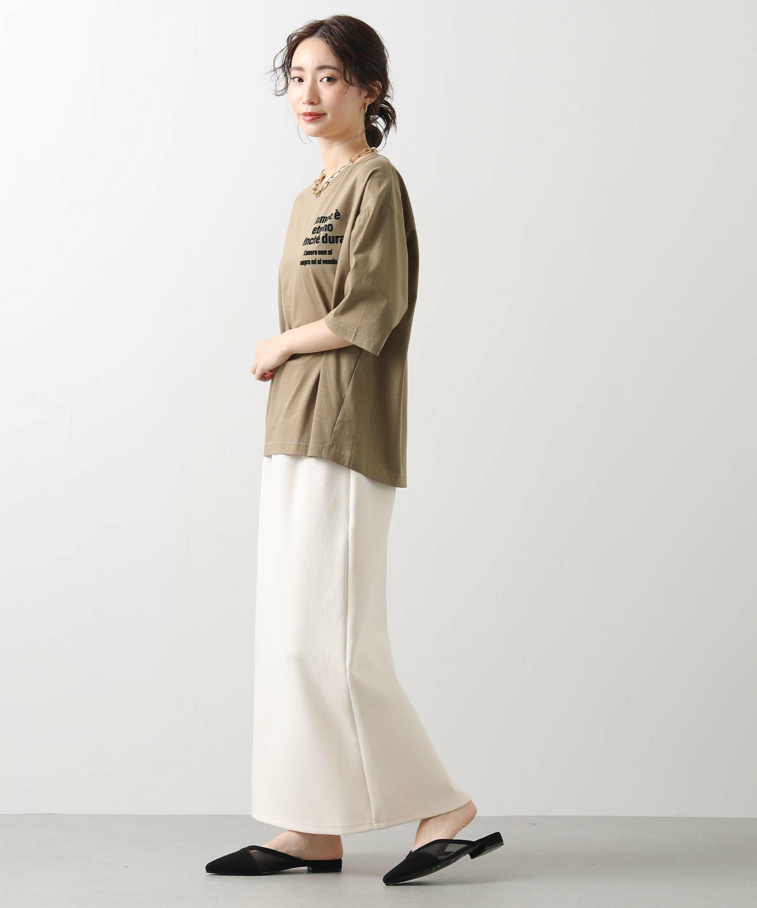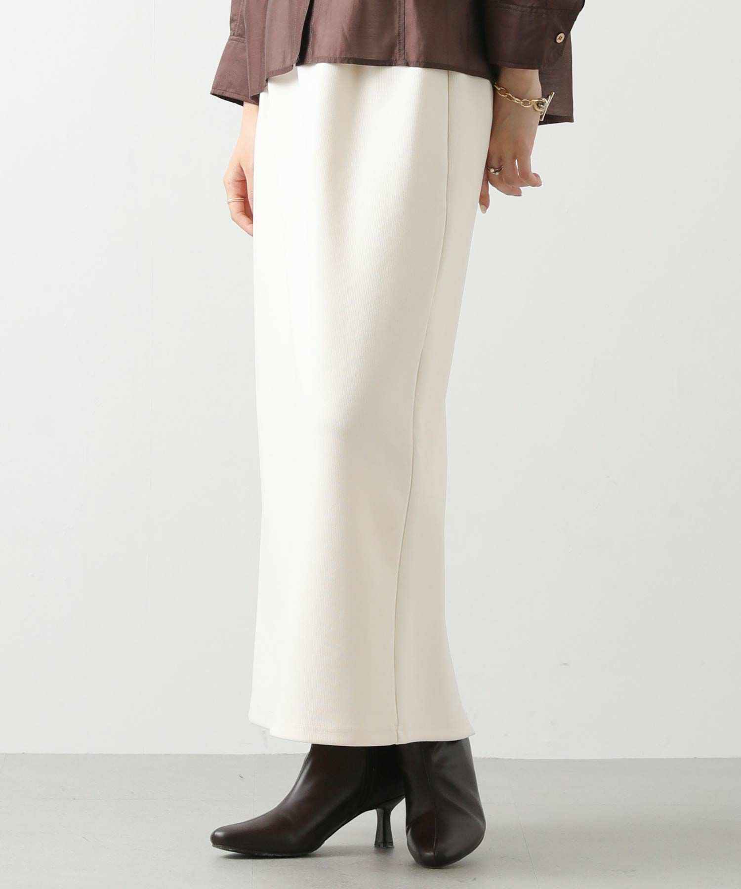 程よくフィット感のあるサイジングは、下半身をすっきり見せ、女性らしさを引き立ててくれます。