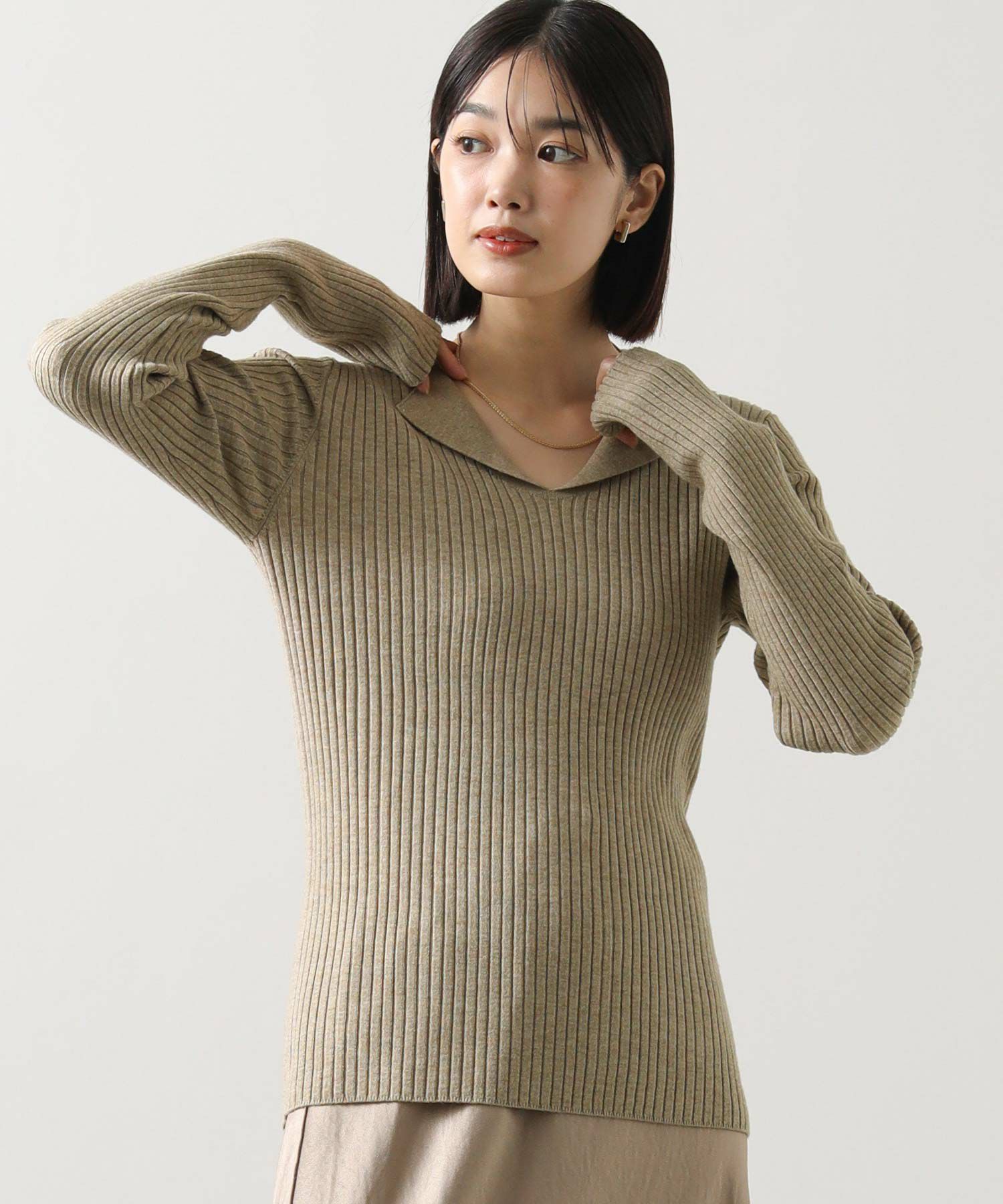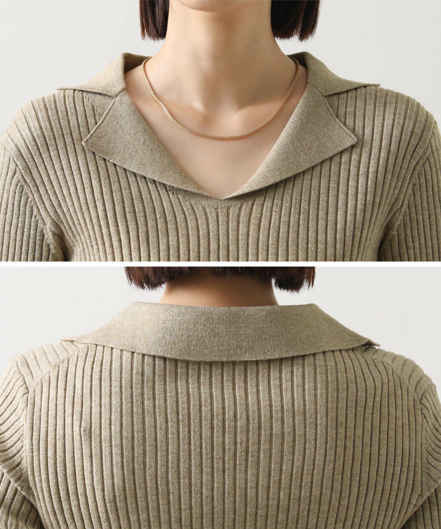 肌触りの柔らかな糸を使用したリブ編みニットプルオーバー。