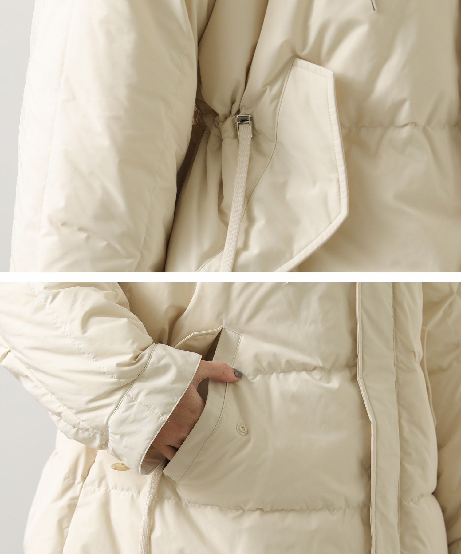 ダウン90%、フェザー10%なので寒い冬も暖かく着ていただけます。