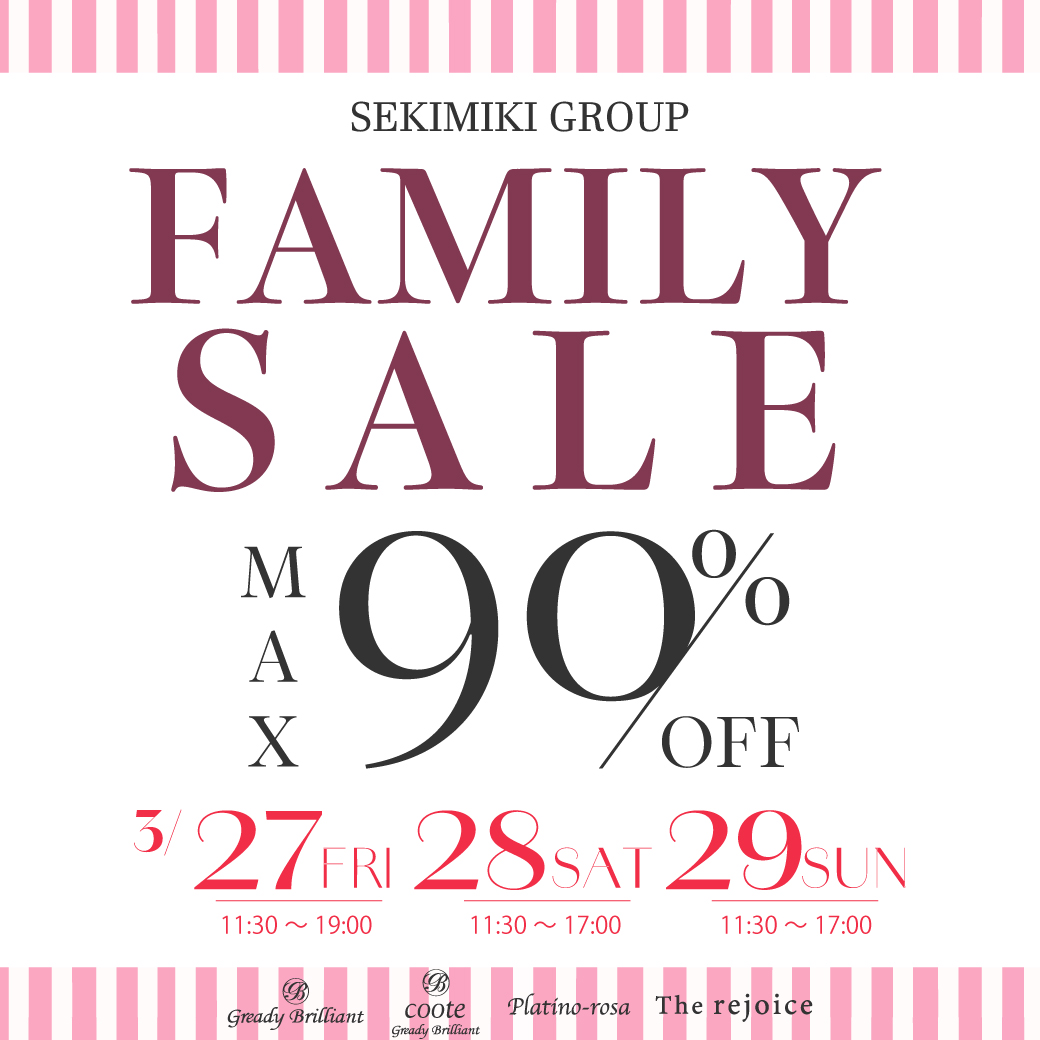 オンライン限定ファミリーセールの開催日時は4月2日(木)19:00頃を予定しております。