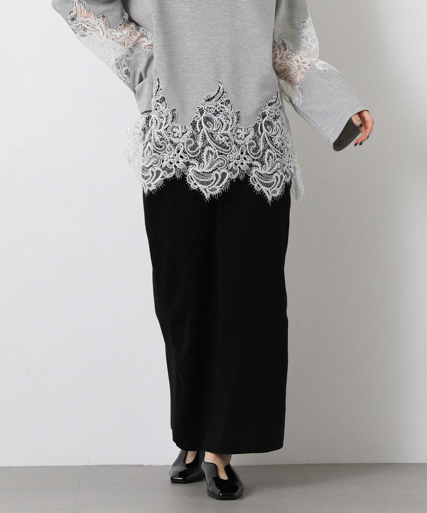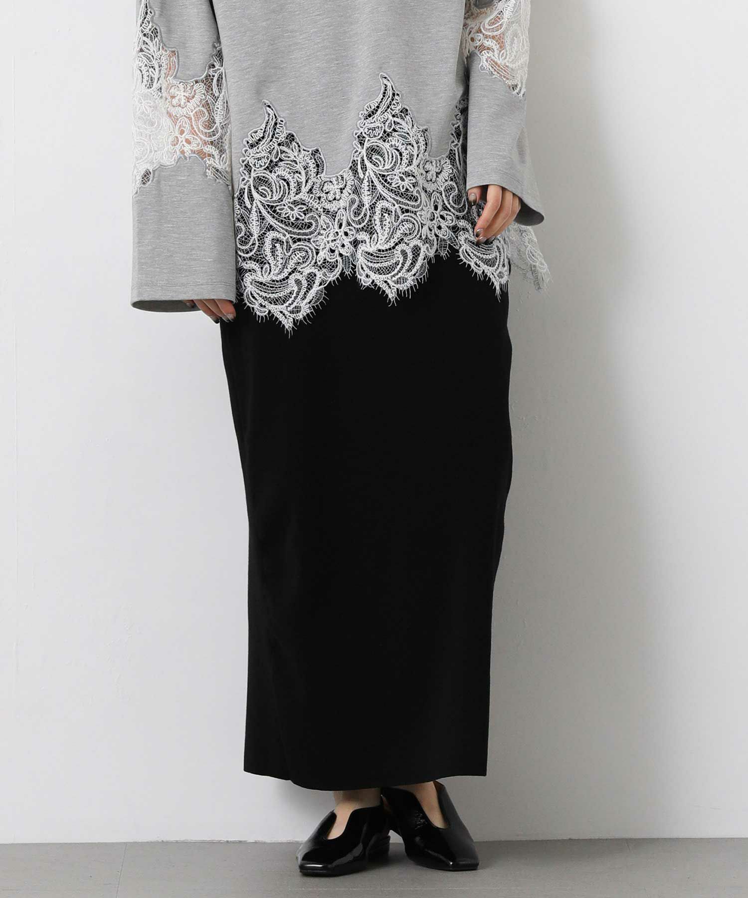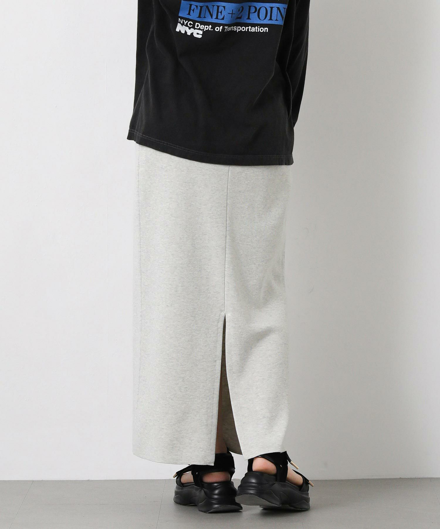さりげない光沢感のあるサラっとした着心地の糸を使用したタイトスカート。