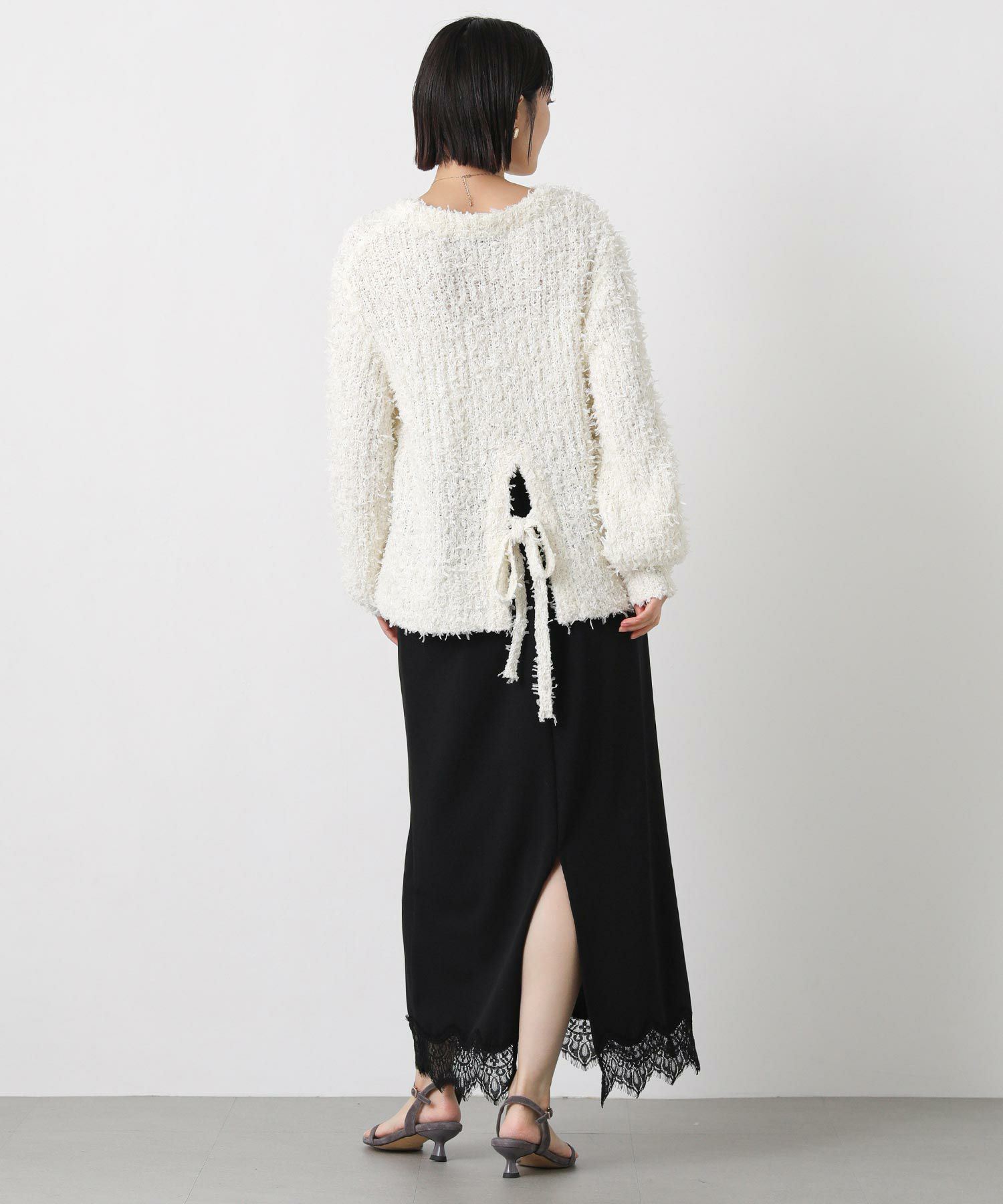 繊細なレースと伸縮性のあるジョーゼット素材を組み合わせた、グレディらしい大人フェミニンなスカート。
