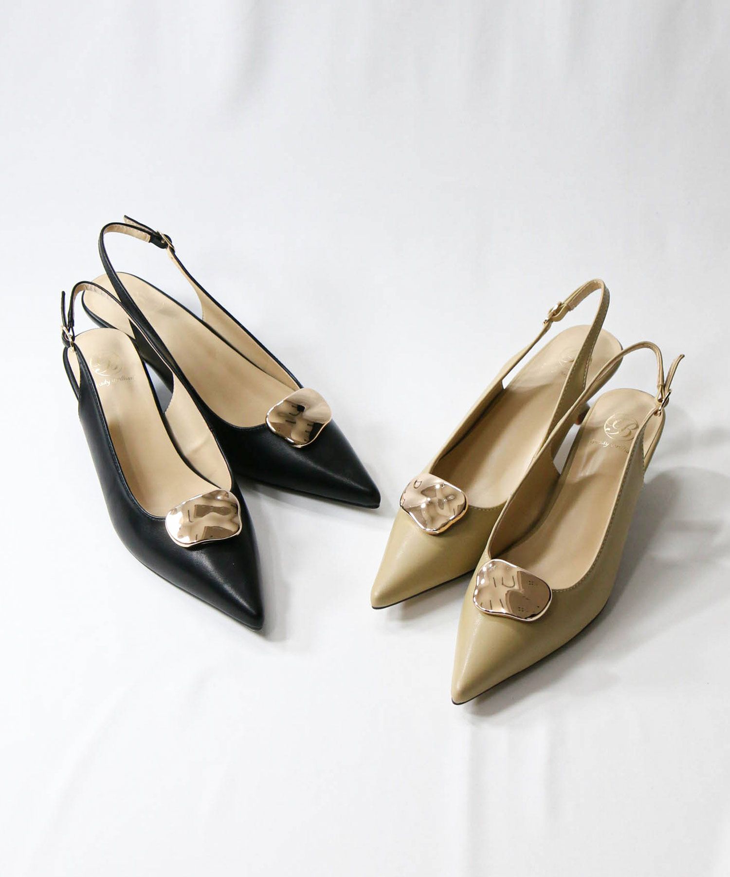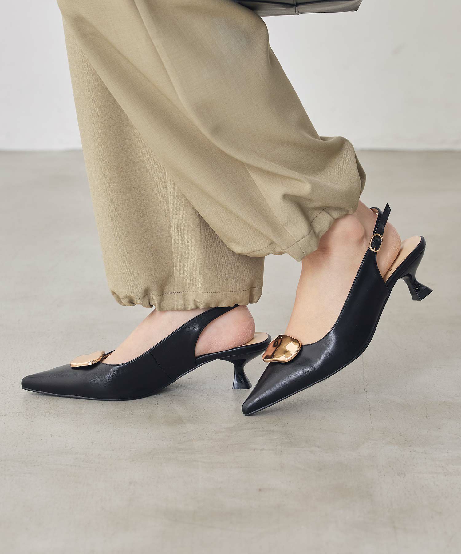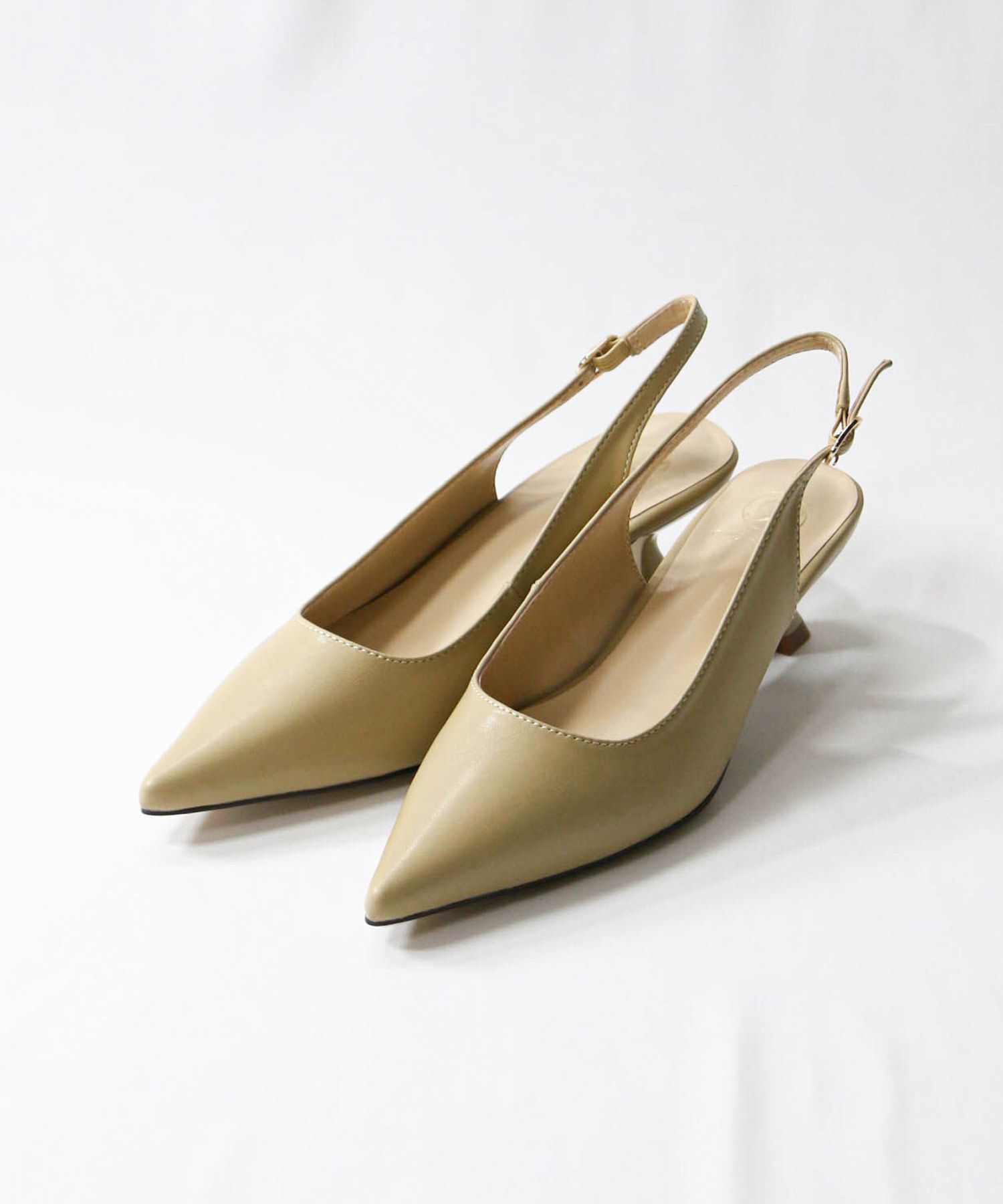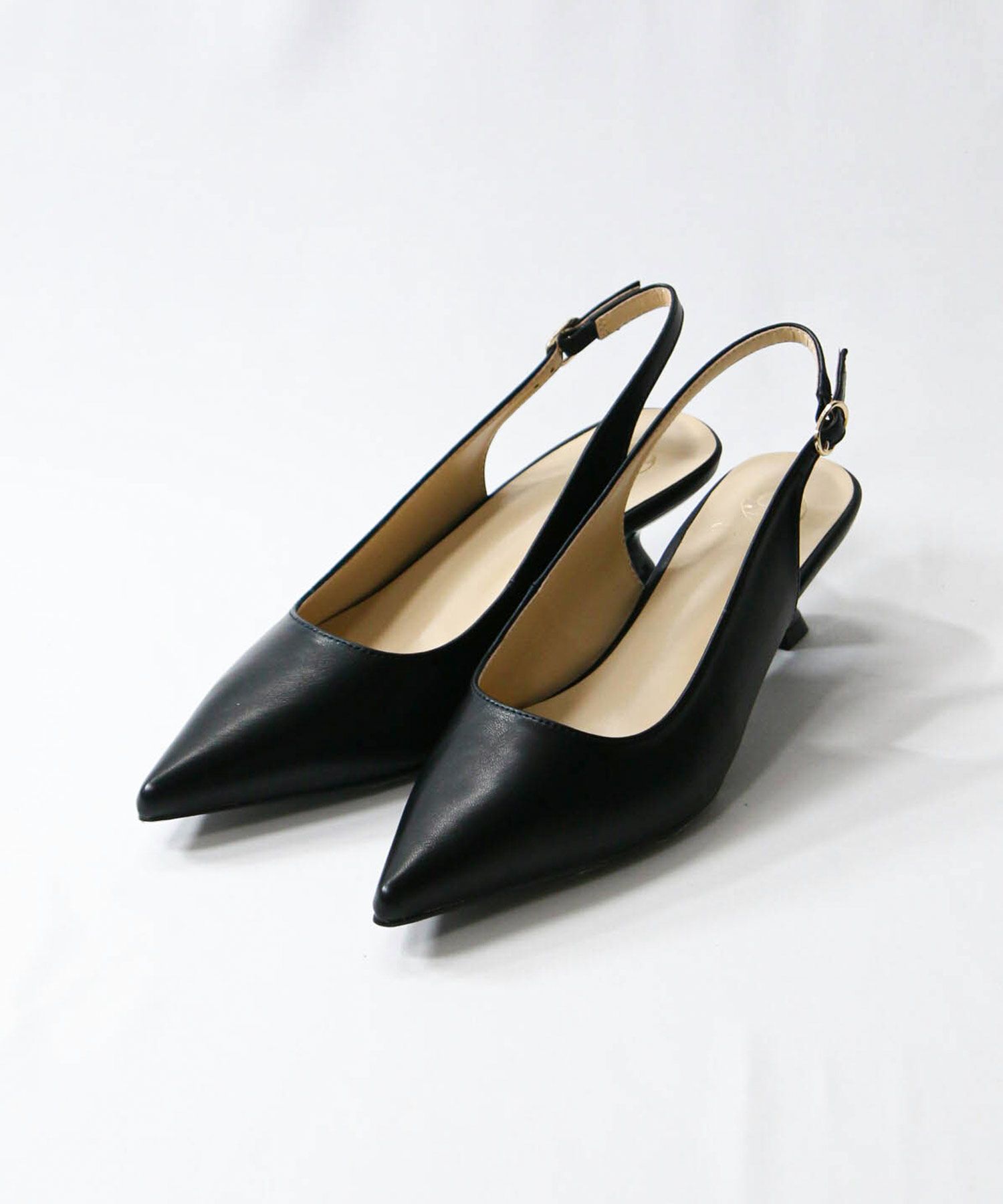 オフィスやオケージョンシーンに使いやすい、バックストラップのパンプス。