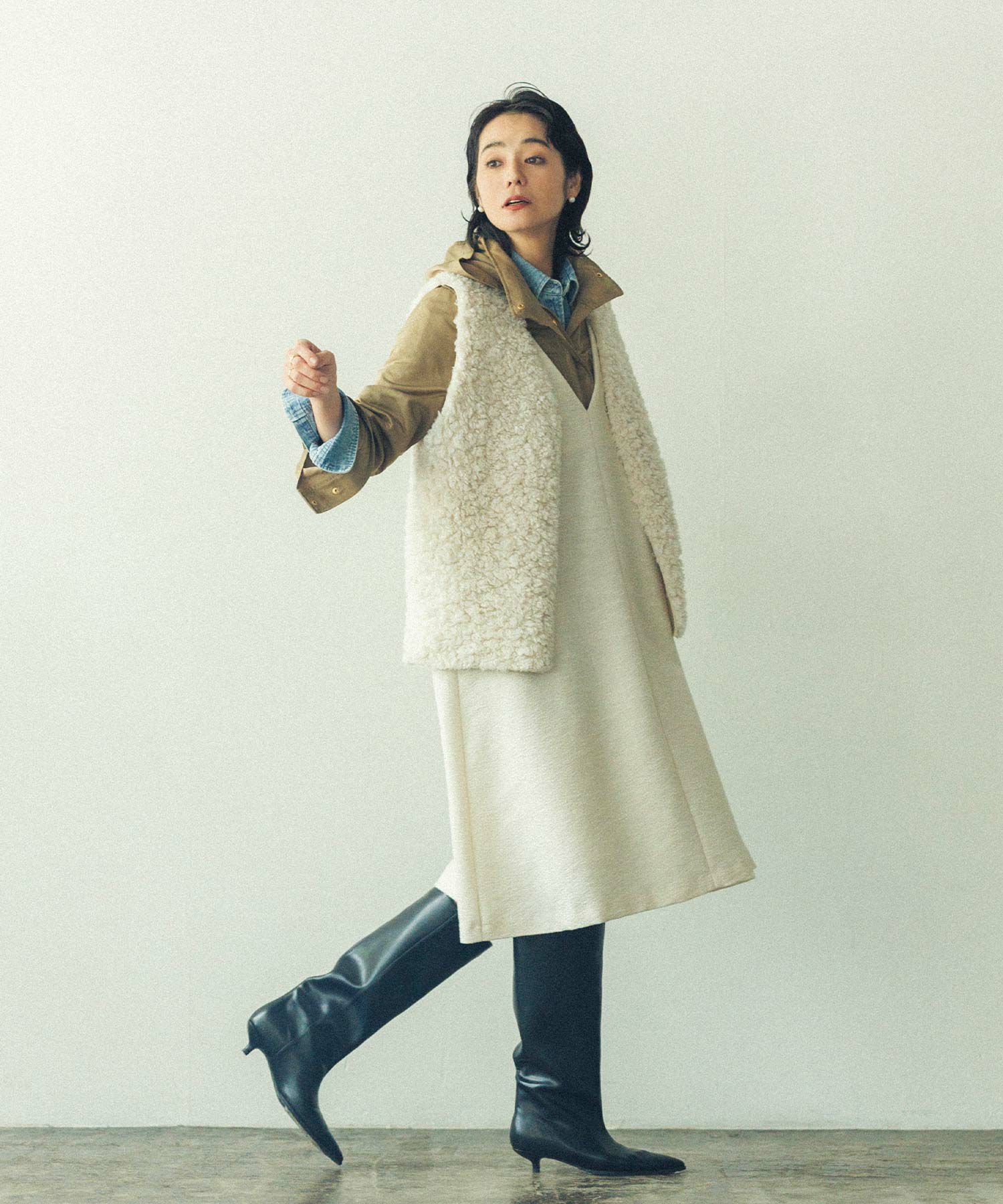 お尻が隠れるミディ丈が新鮮で、秋冬のレイヤードスタイルにぴったりです。