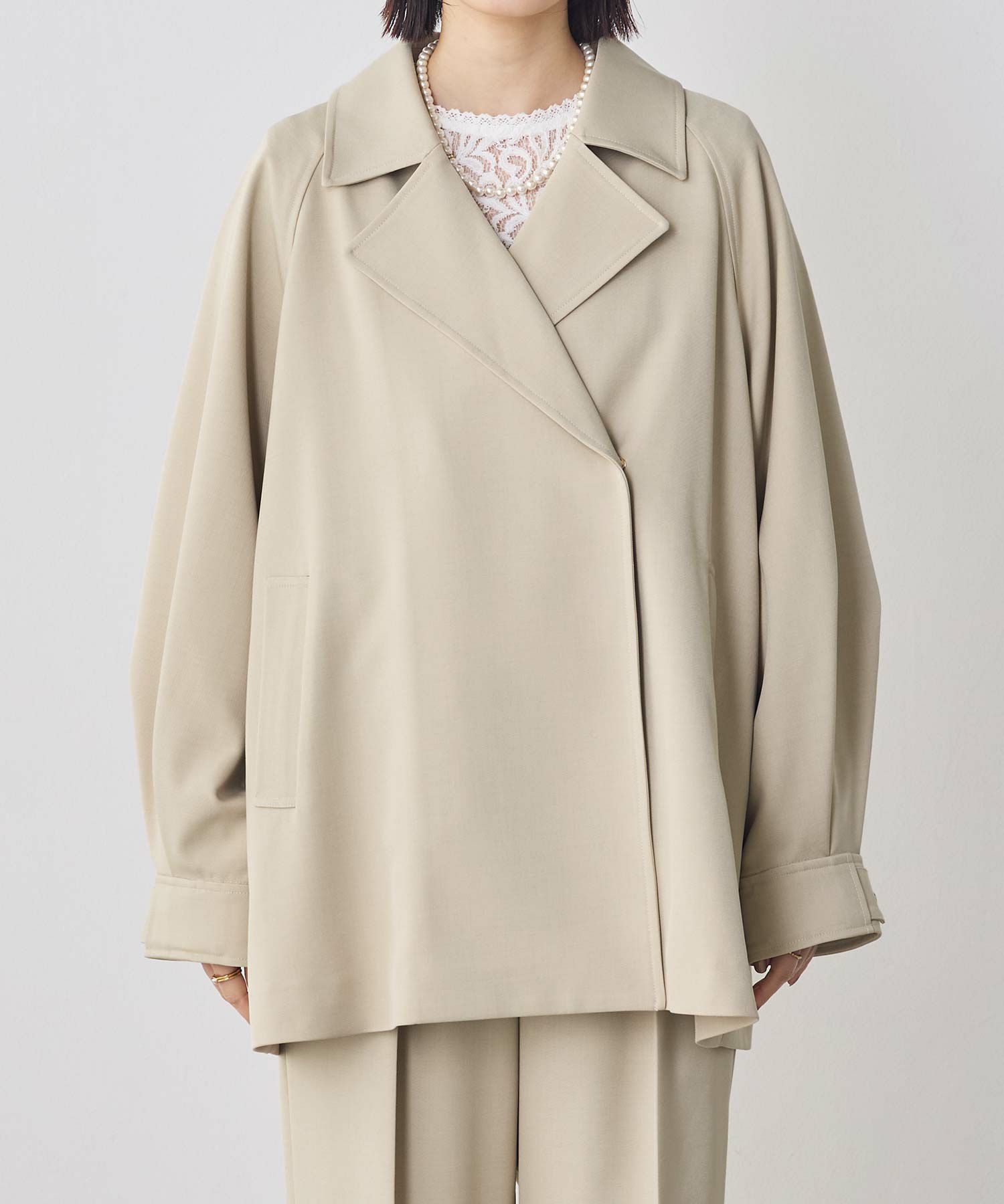 トラディショナルなトレンチコートのディティールを取り入れながら、Aラインに広がるテント型のシルエットがトレンド感のある印象に仕上げたコート。