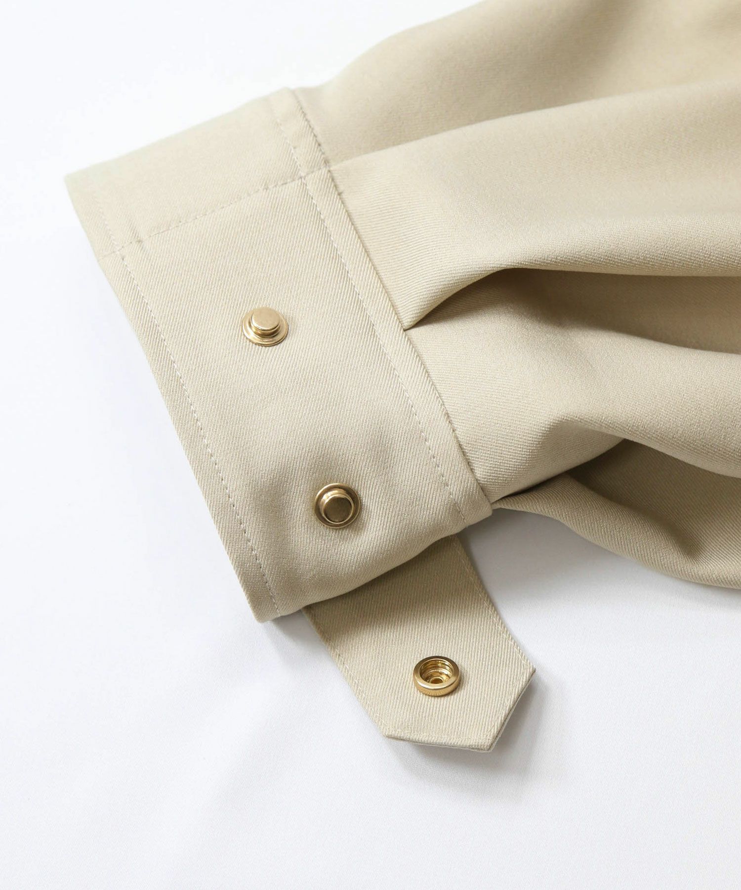 袖口はギュッと絞ってボリュームを出したり、あえて釦を金属のドットにしてシンプルに仕上げる着こなしも。