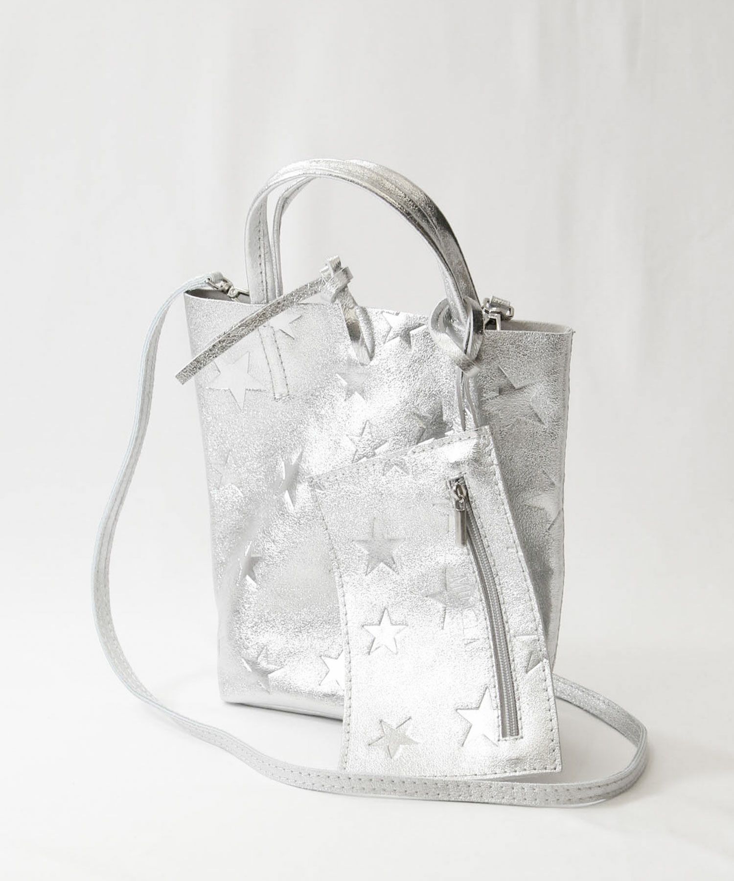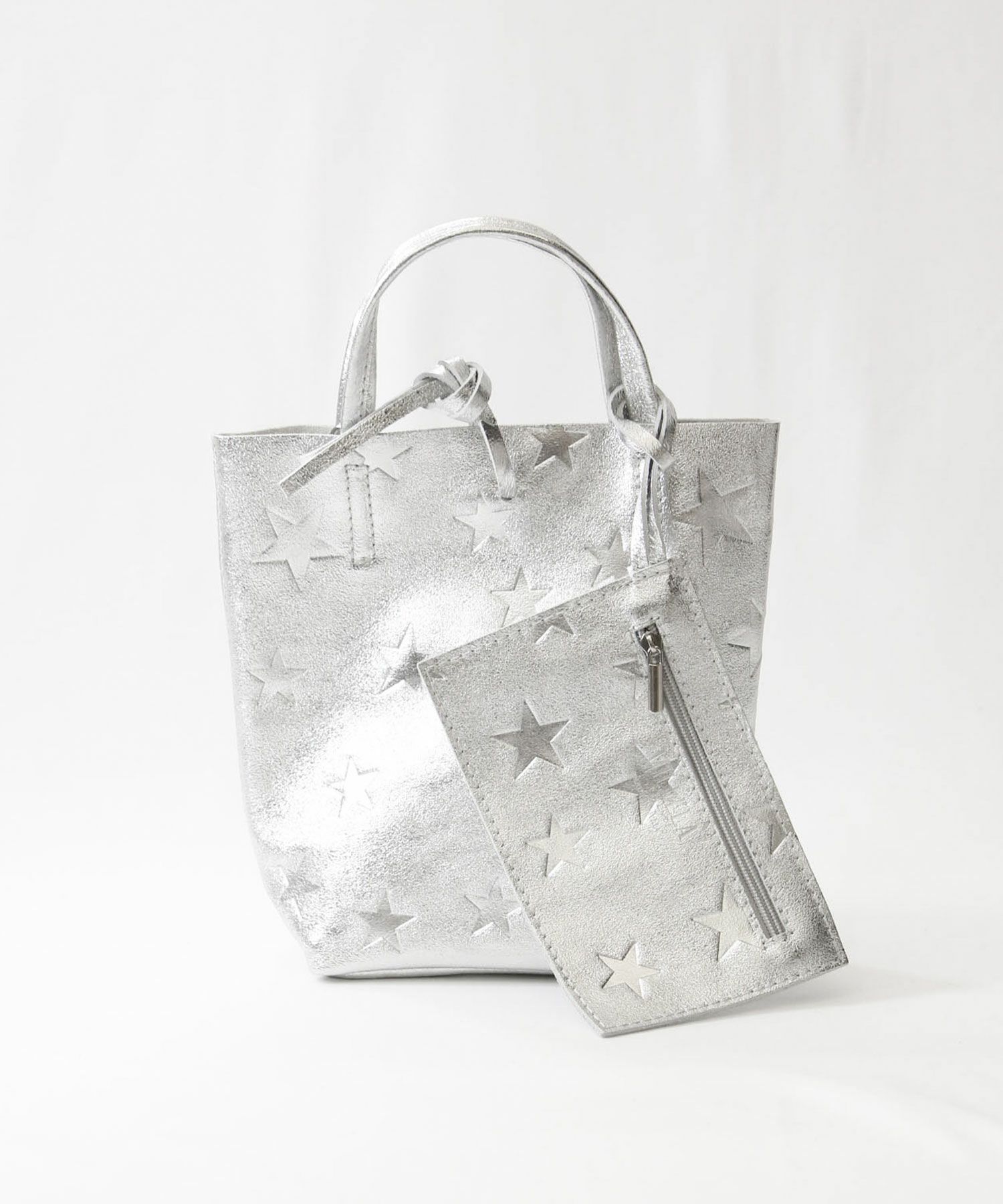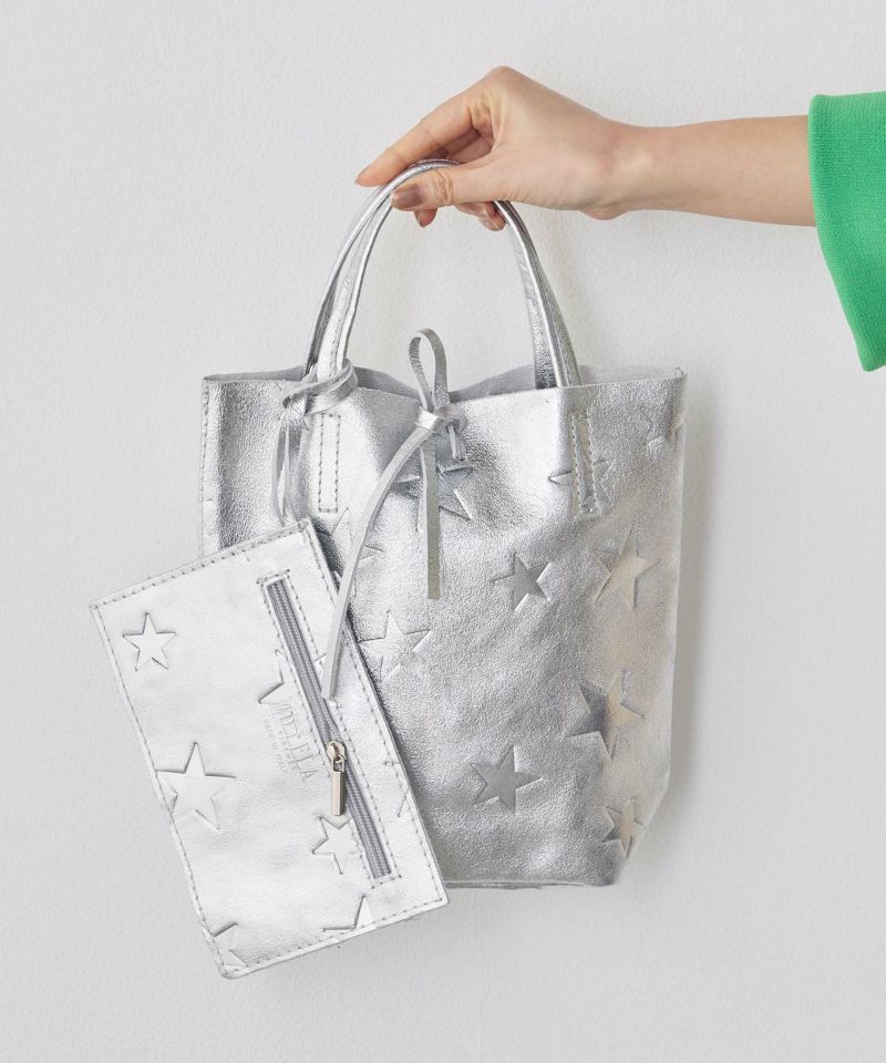 柔らかくリッチな質感のレザーにメタリック加工を施したミニトートバッグ。