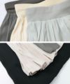 たっぷり分量感をとっていますが生地の落ち感がきれいなので、身体のラインをカバーして細見えしてくれる効果が期待できるシルエットになっています。ウエストはぐるり総ゴムで、柔らかいリブを使用しており、フィット感があり楽ちんな穿き心地です。