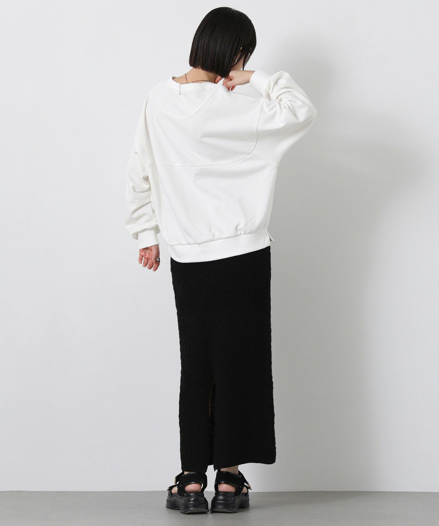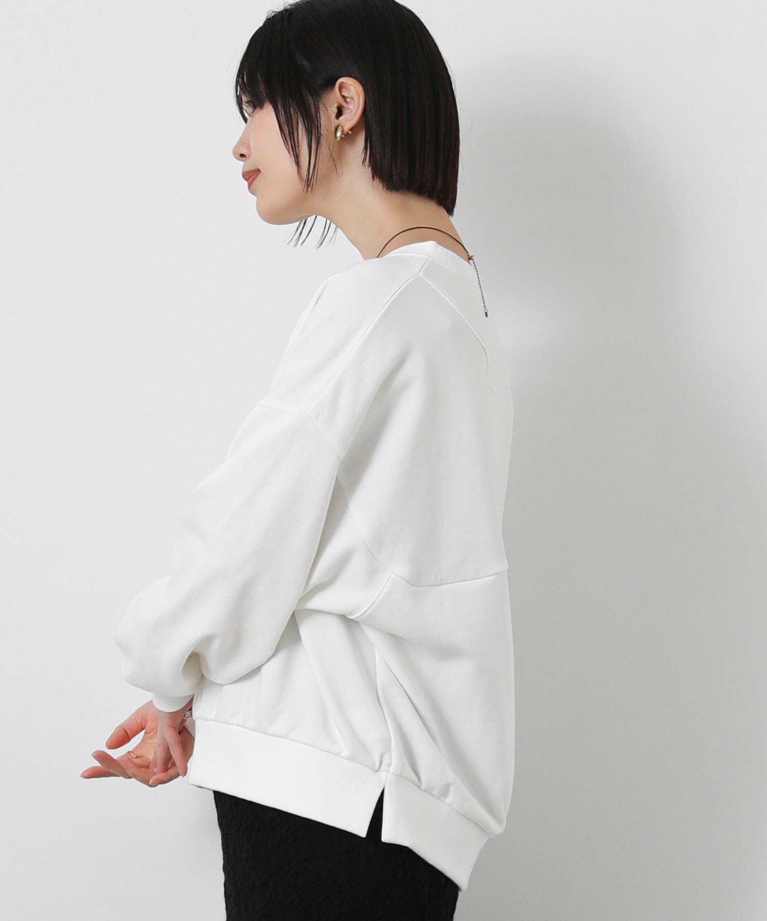 シンプルでもこなれスタイルが決まる、抜け感のあるフォルムのスウェット。