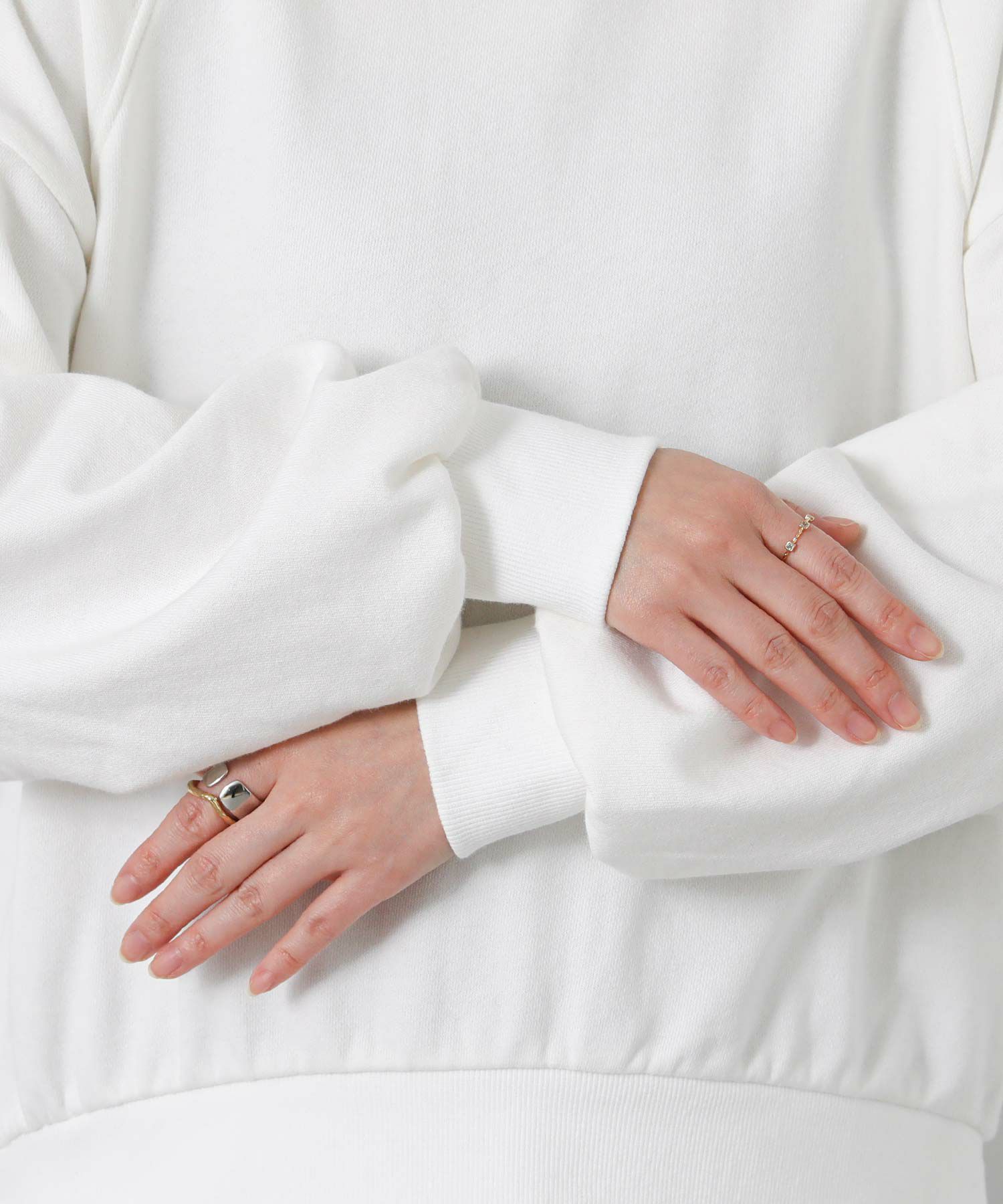 長いシーズン着用できる厚すぎない裏毛で、春のカジュアルスタイルにオススメ。