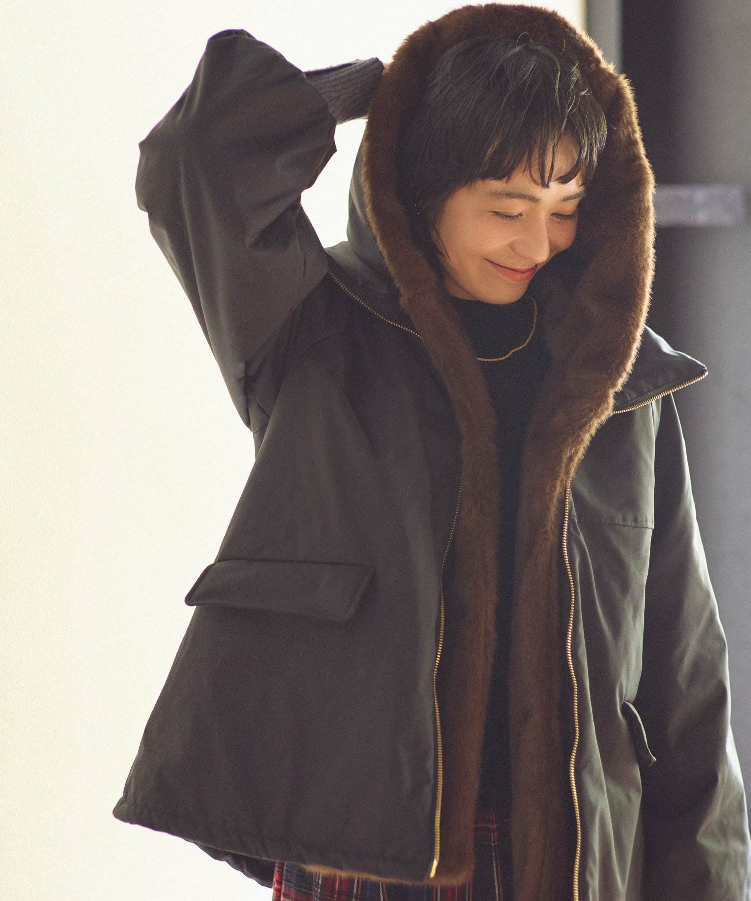 顔まわりのファーが上品&華やかさをプラスしてくれるアウター。