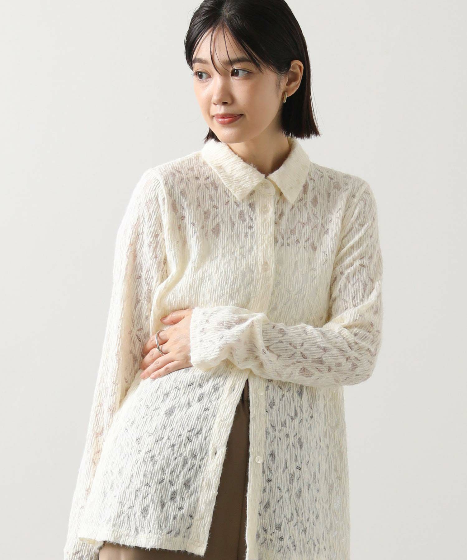 総レースで仕立てたシャツ。