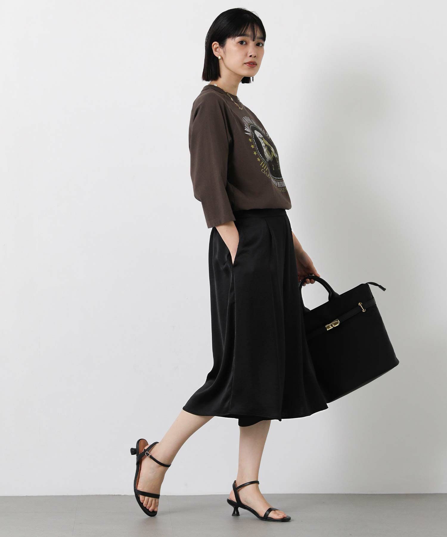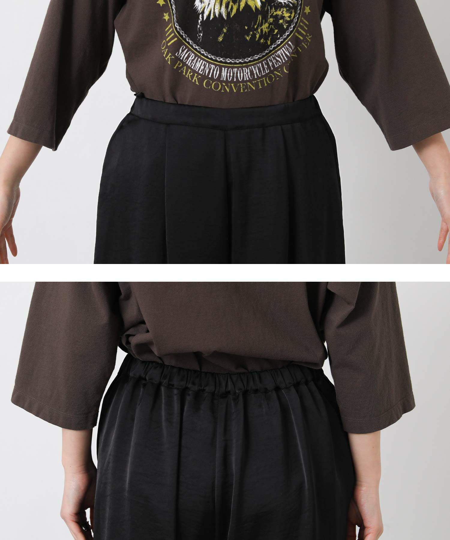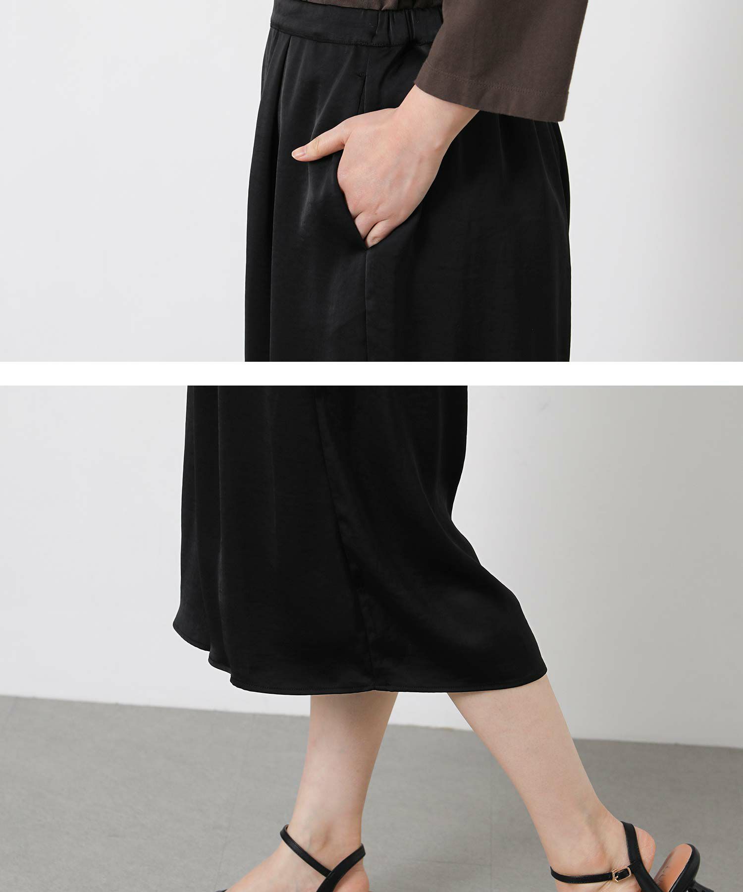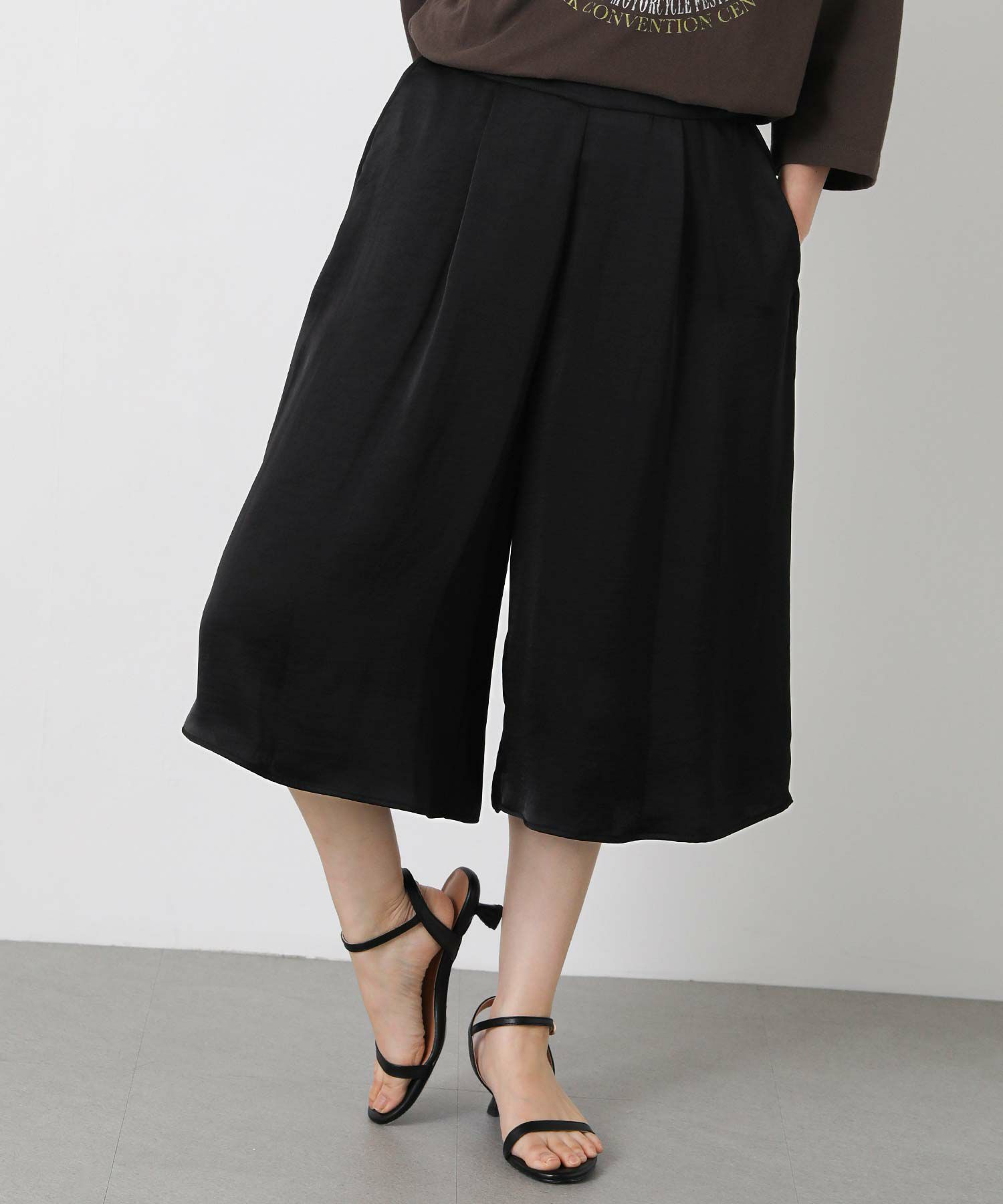 とろみ感のあるサテン生地を使用したガウチョパンツ。