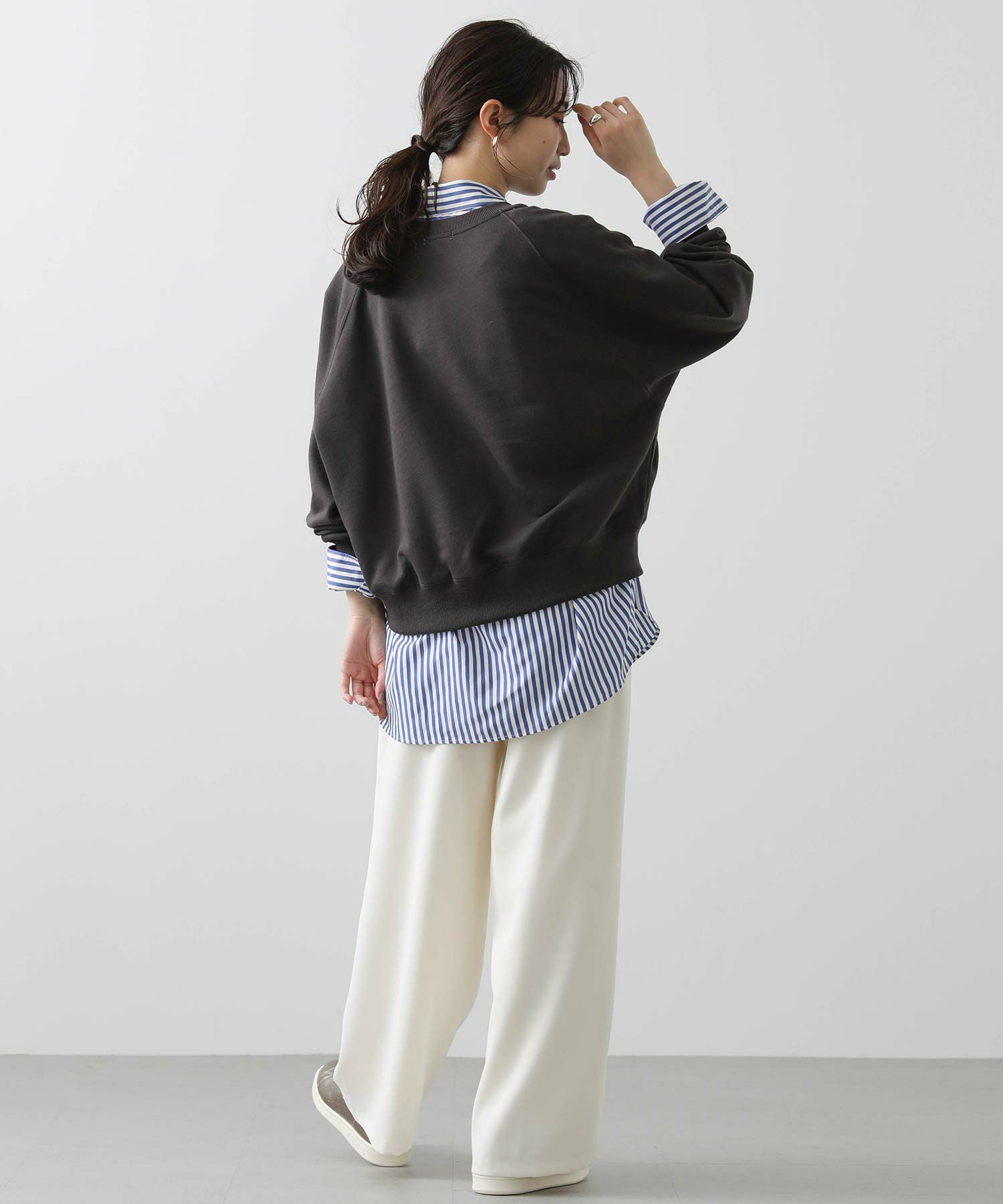 薄すぎず厚すぎない、程よい生地感が快適な裏毛素材を採用し、クルーネックで首元はミニマルに。たっぷりとした身幅に、ラグランスリーブでゆったりと仕上げました。
