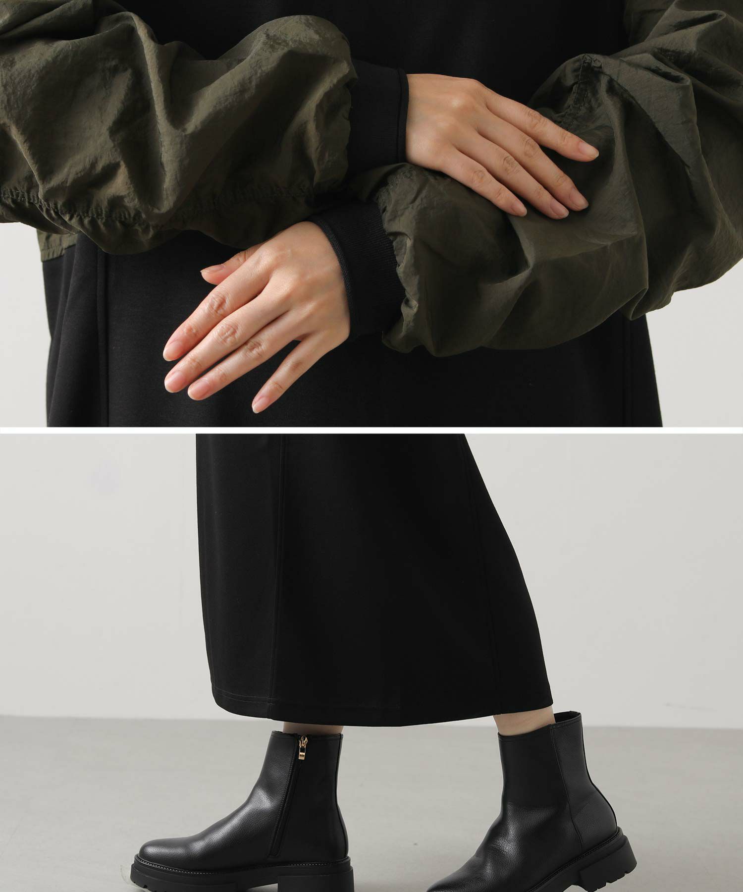 ※着用画像は撮影状況、光の当たり具合で色みが違って見える場合がございます。実際の色みについては、画像一覧の最後に掲載している詳細画像をご参照ください。