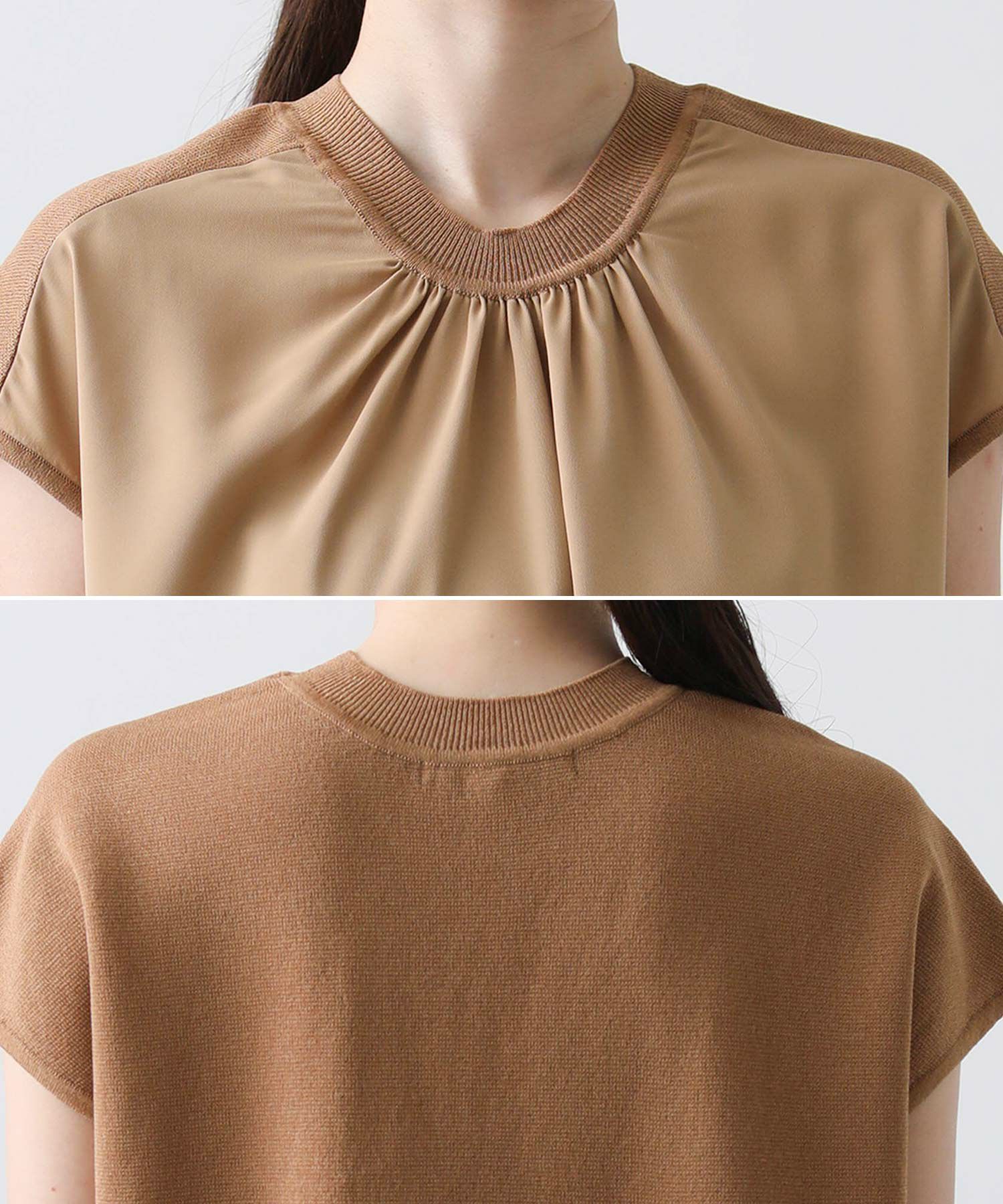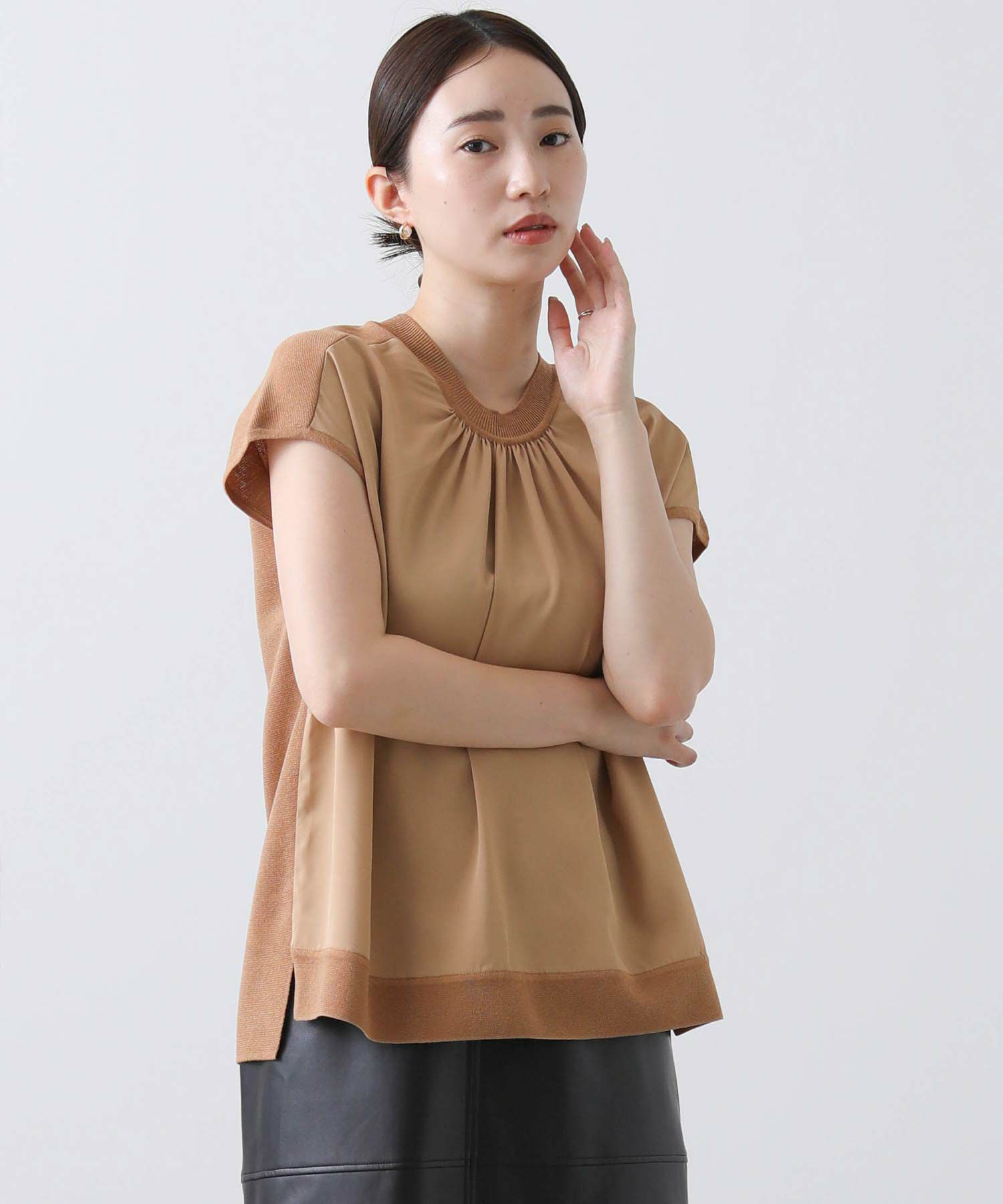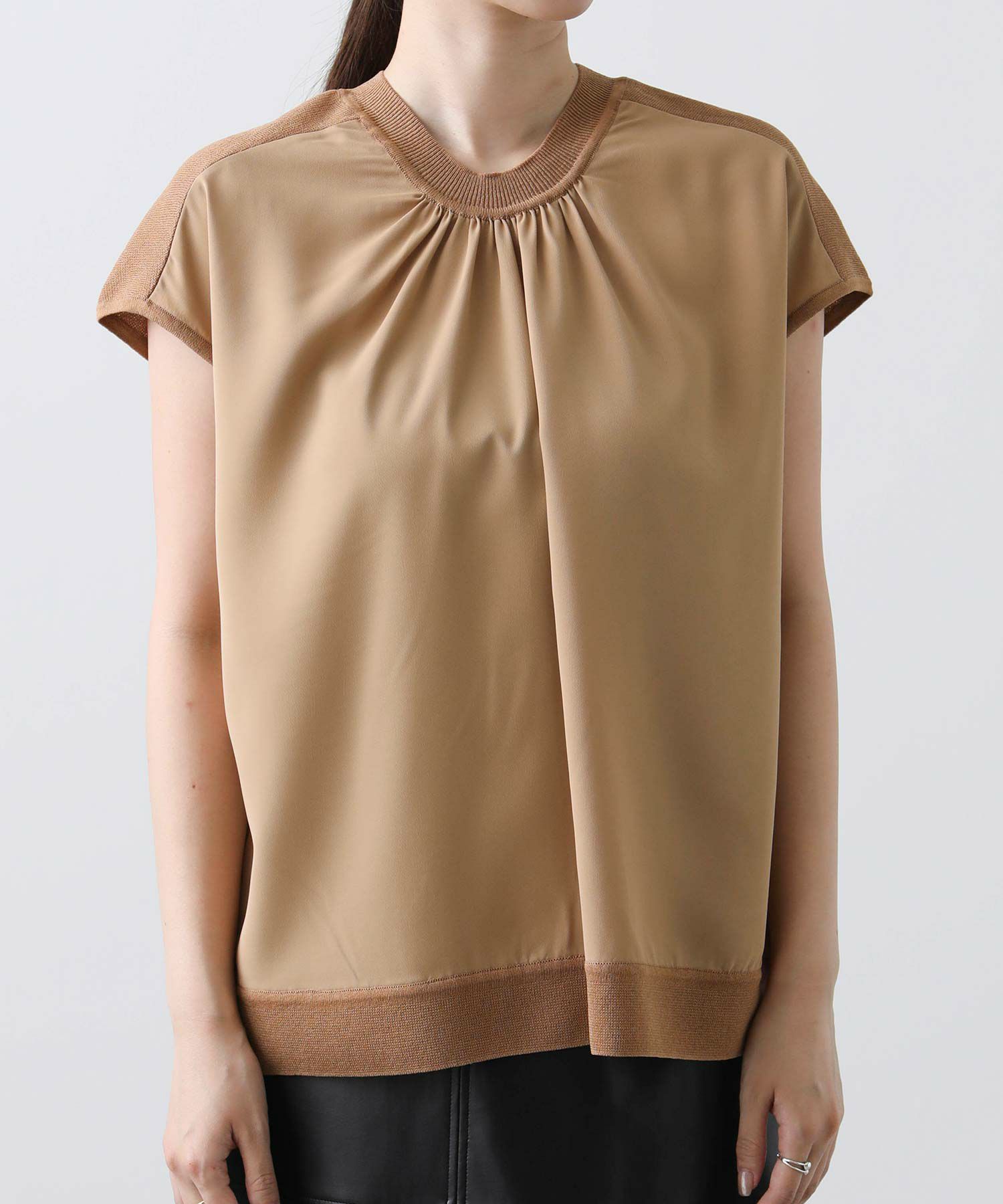 ジョーゼット生地とニットを組み合わせたフレンチスリーブプルオーバー。