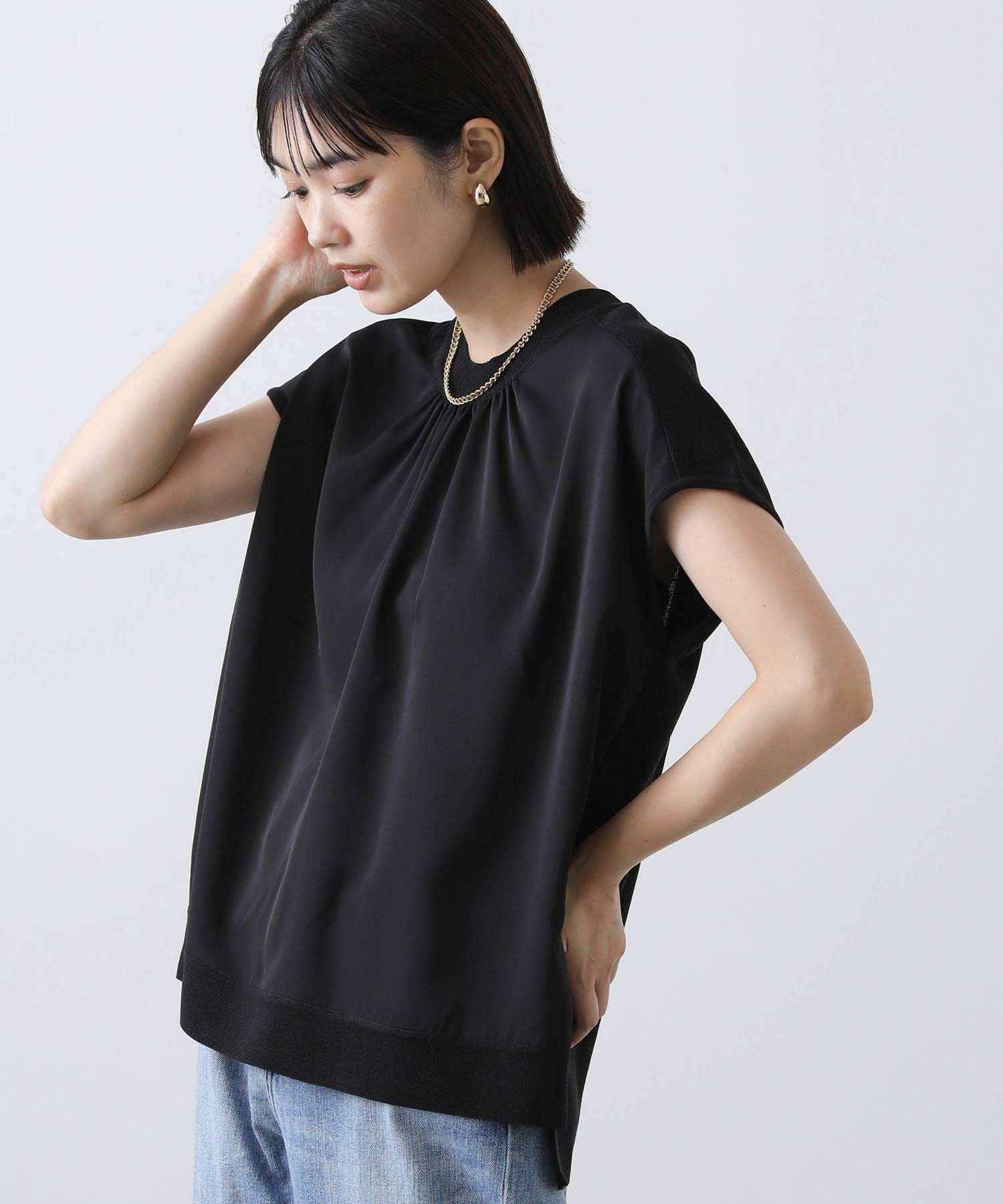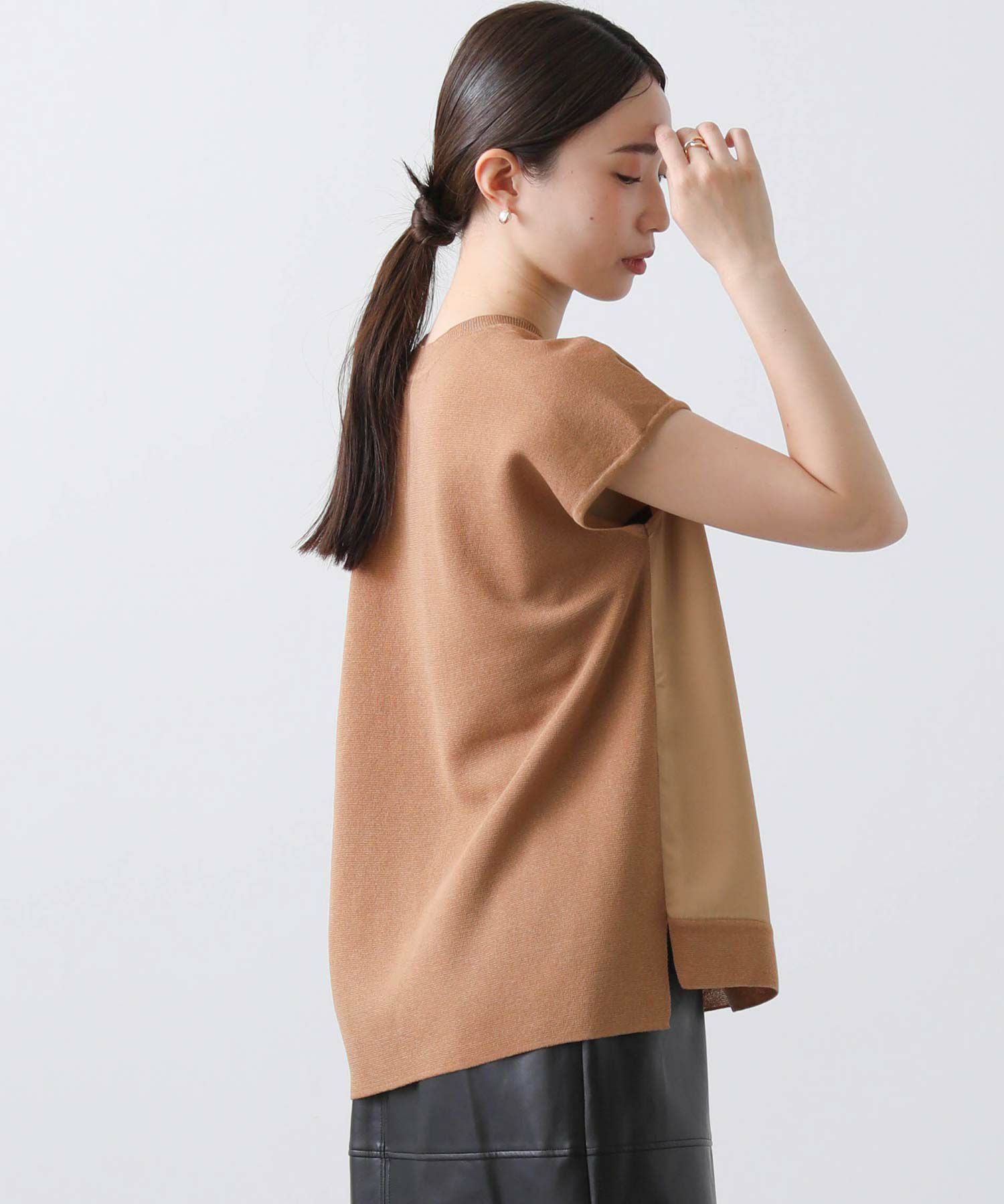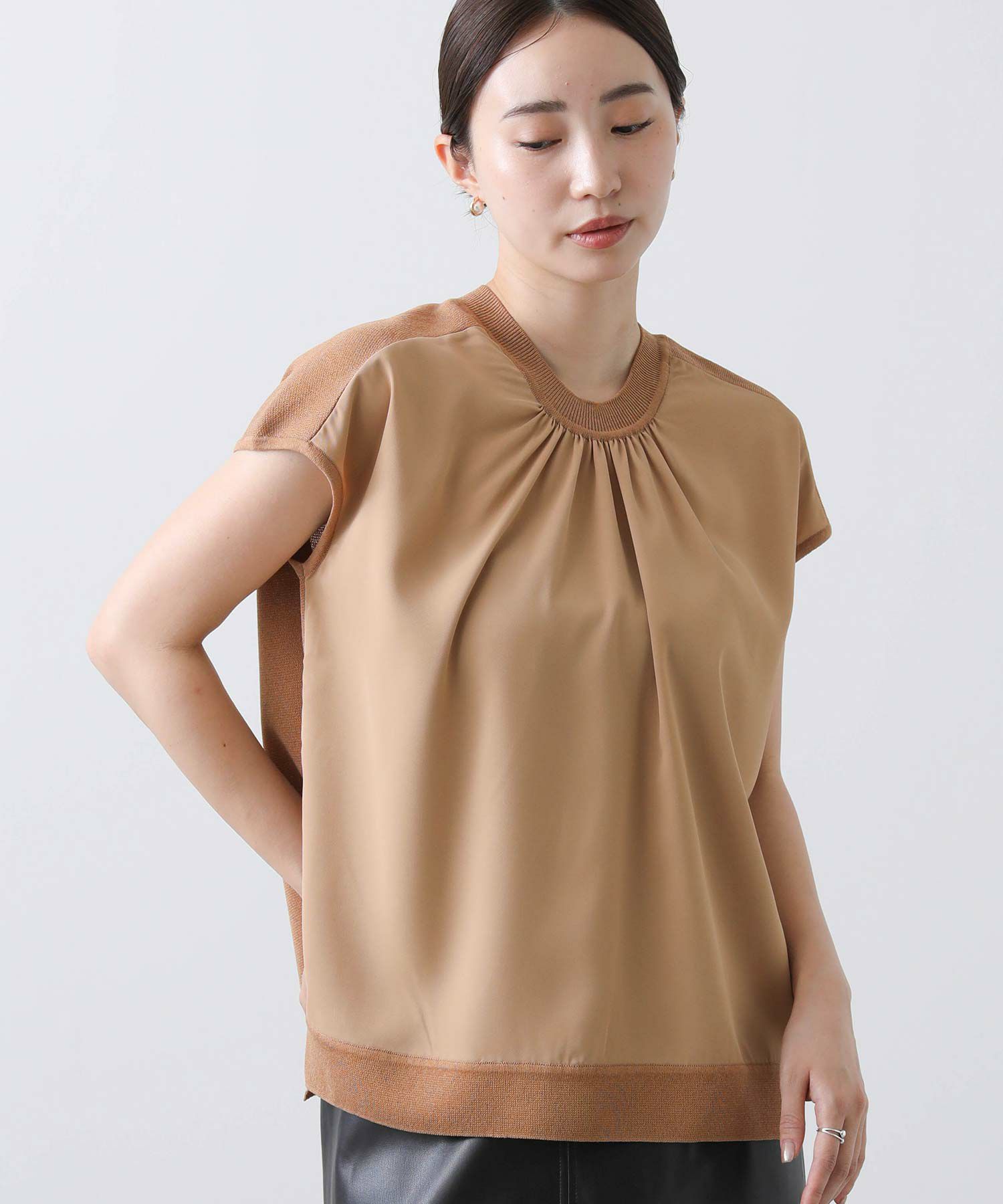 ジョーゼット生地とニットを組み合わせたフレンチスリーブプルオーバー。