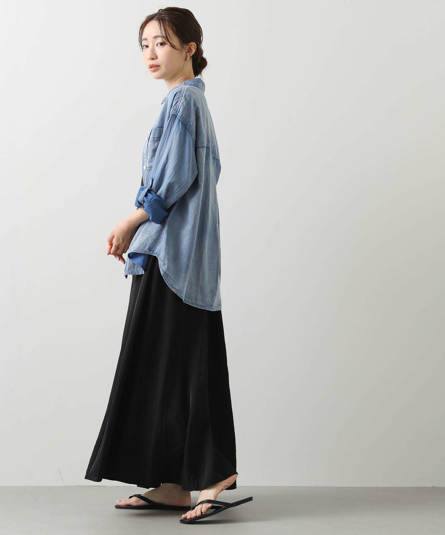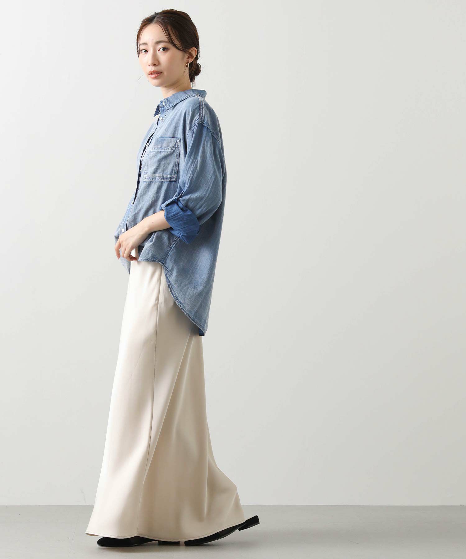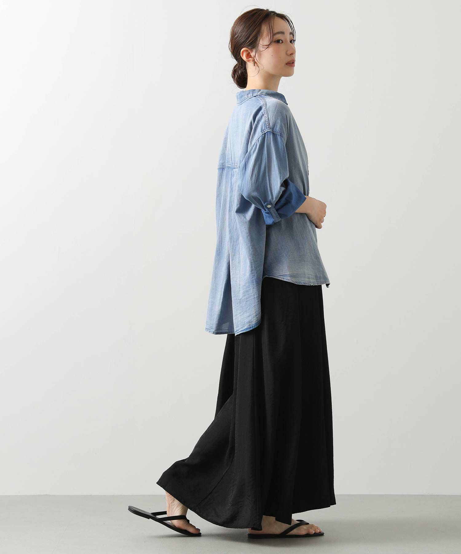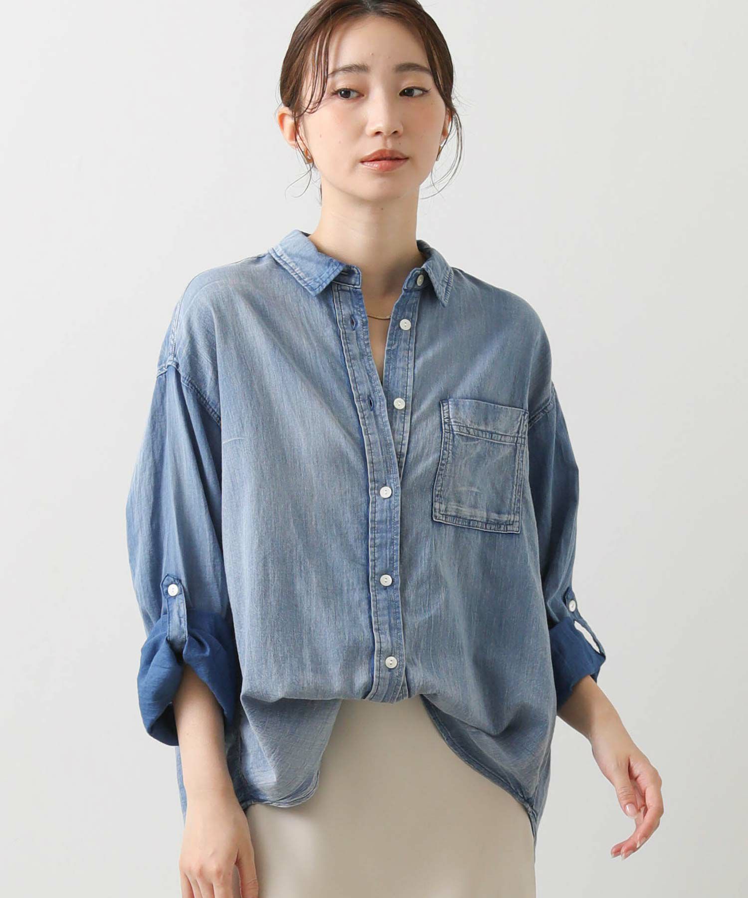 抜け感スタイルが叶うシアーデニムシャツ。