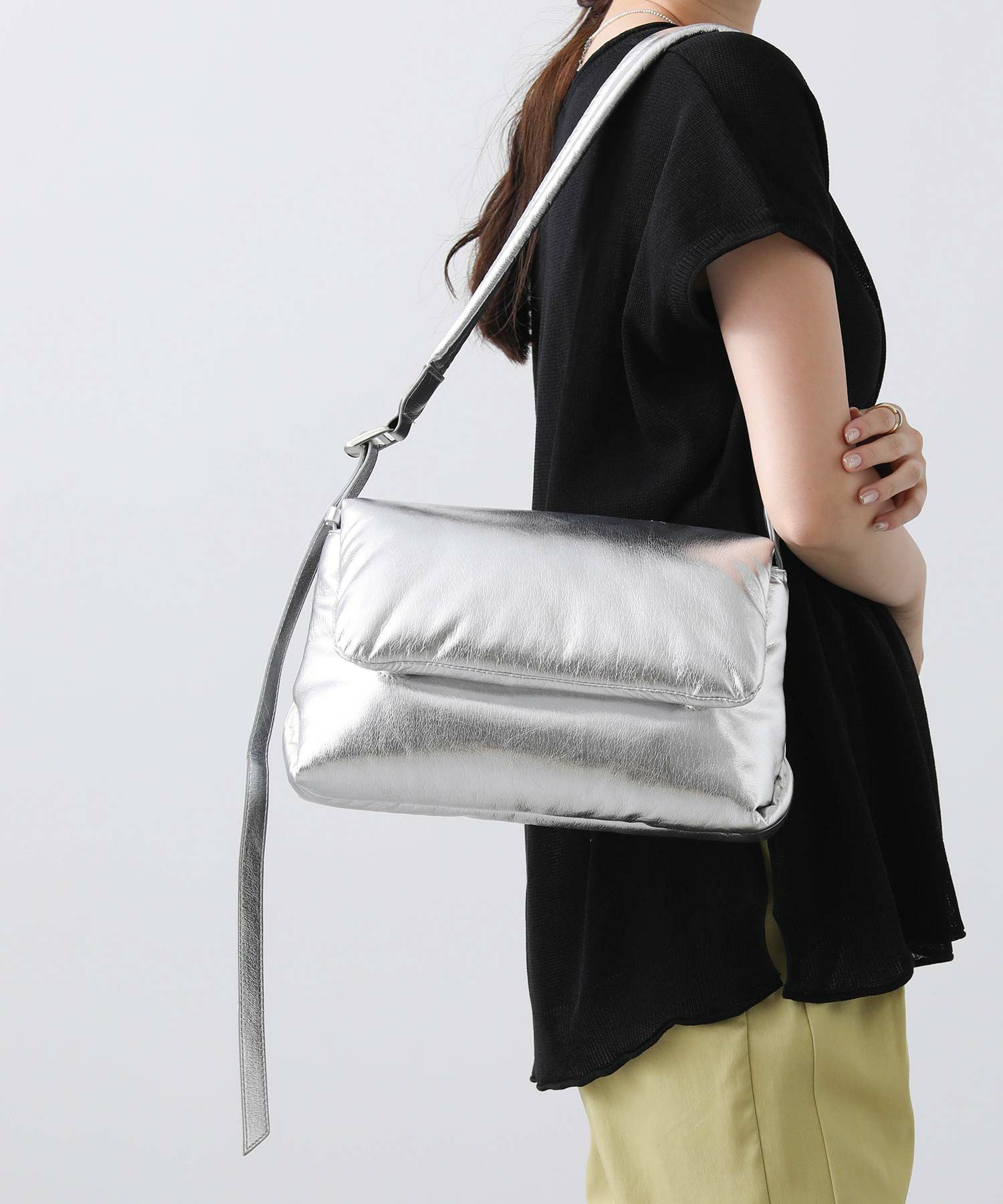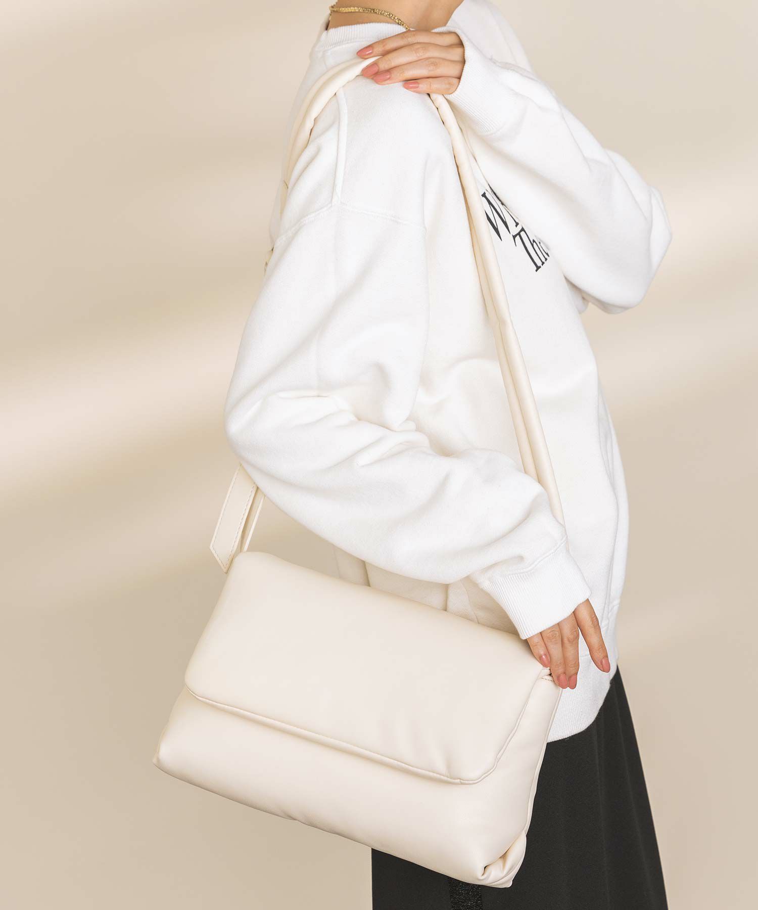 パフっとした質感が可愛いショルダーバッグ。