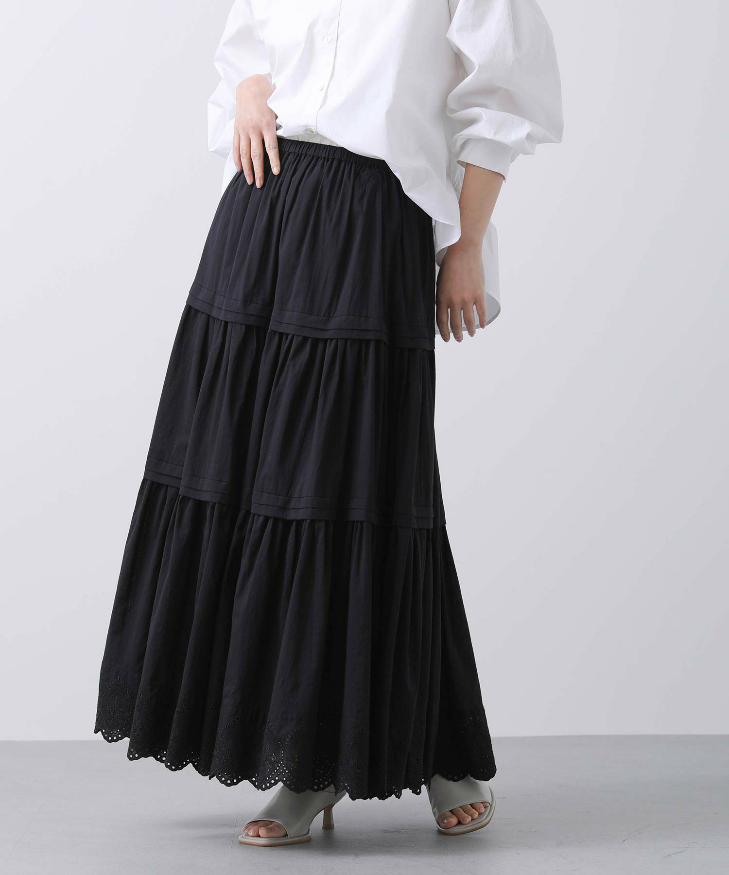 スカートに立体感と繊細さを与えるピンタックデザインが美しく甘くなりすぎず、大人可愛くスタイルが決まります。