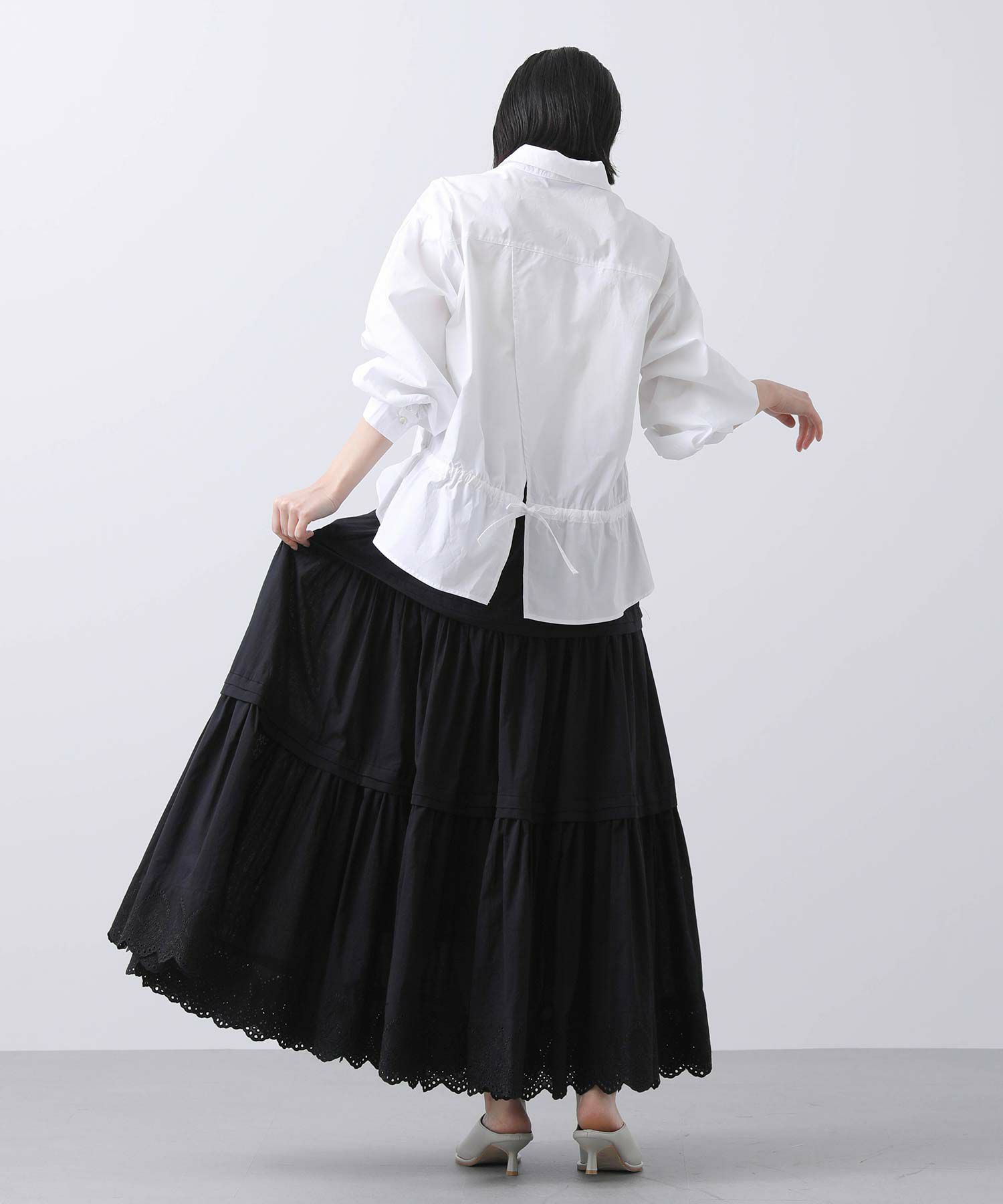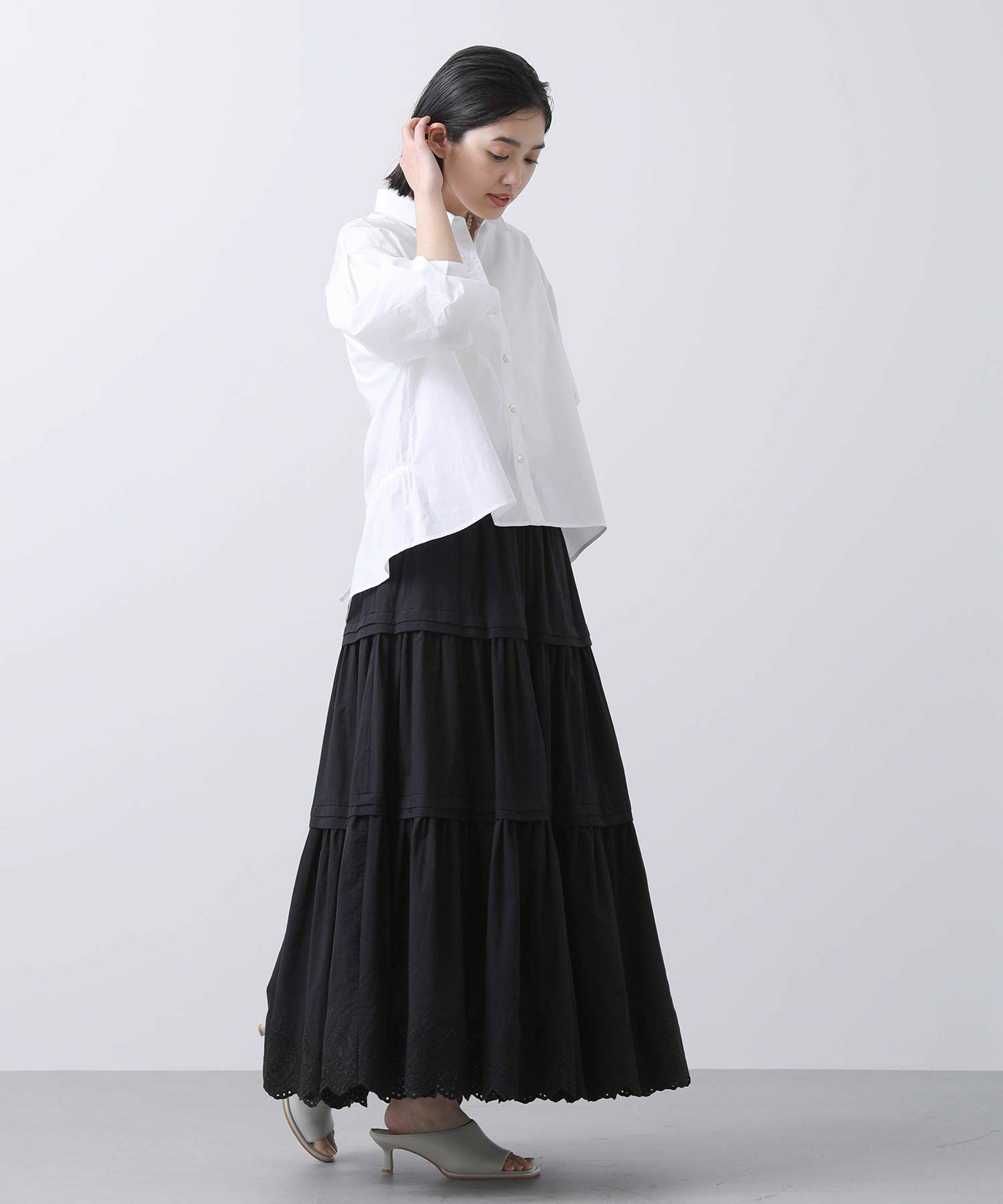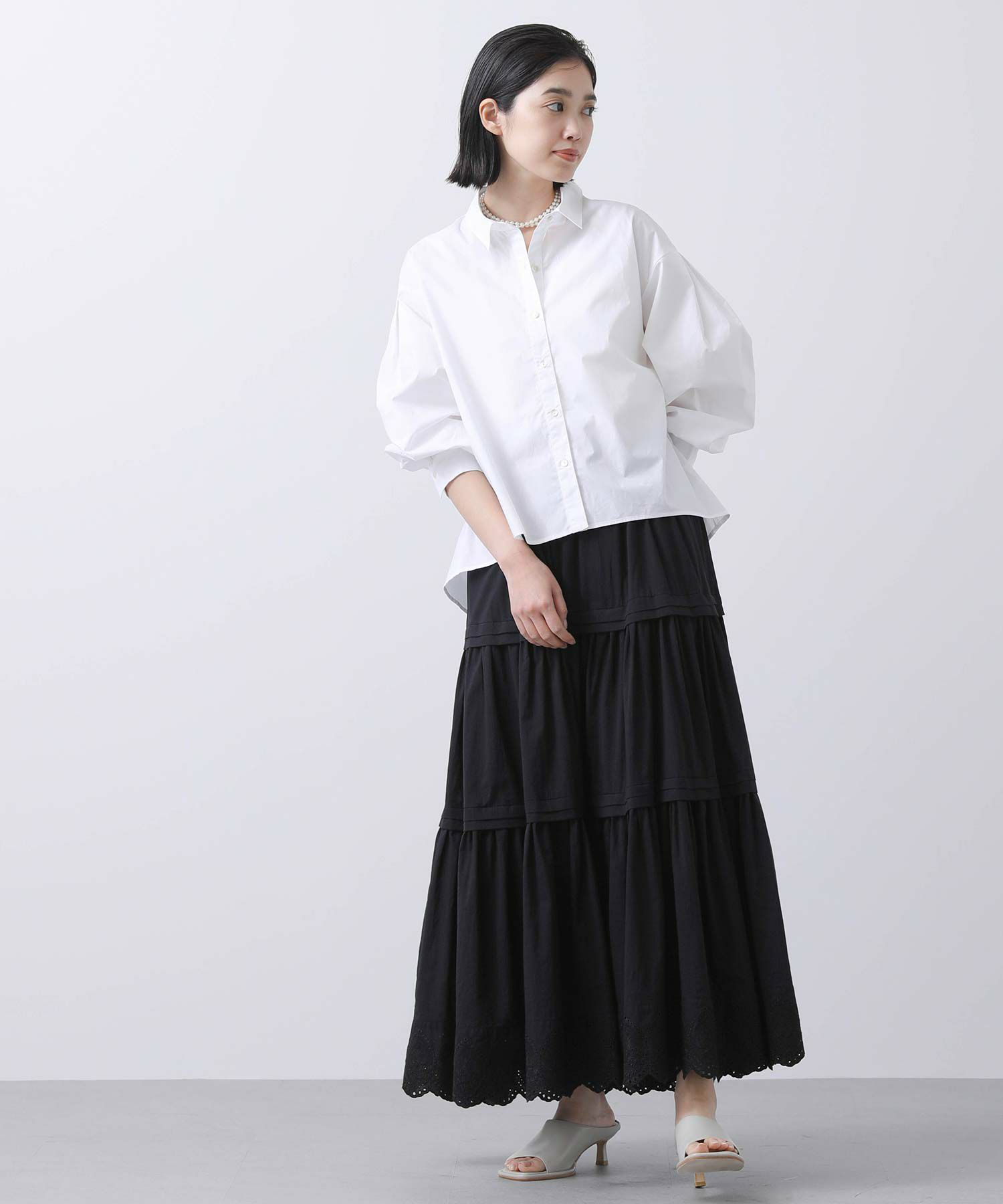 たっぷりと生地を使用しボリュームがあり、裾に向かってふんわりと広がるデザイン。