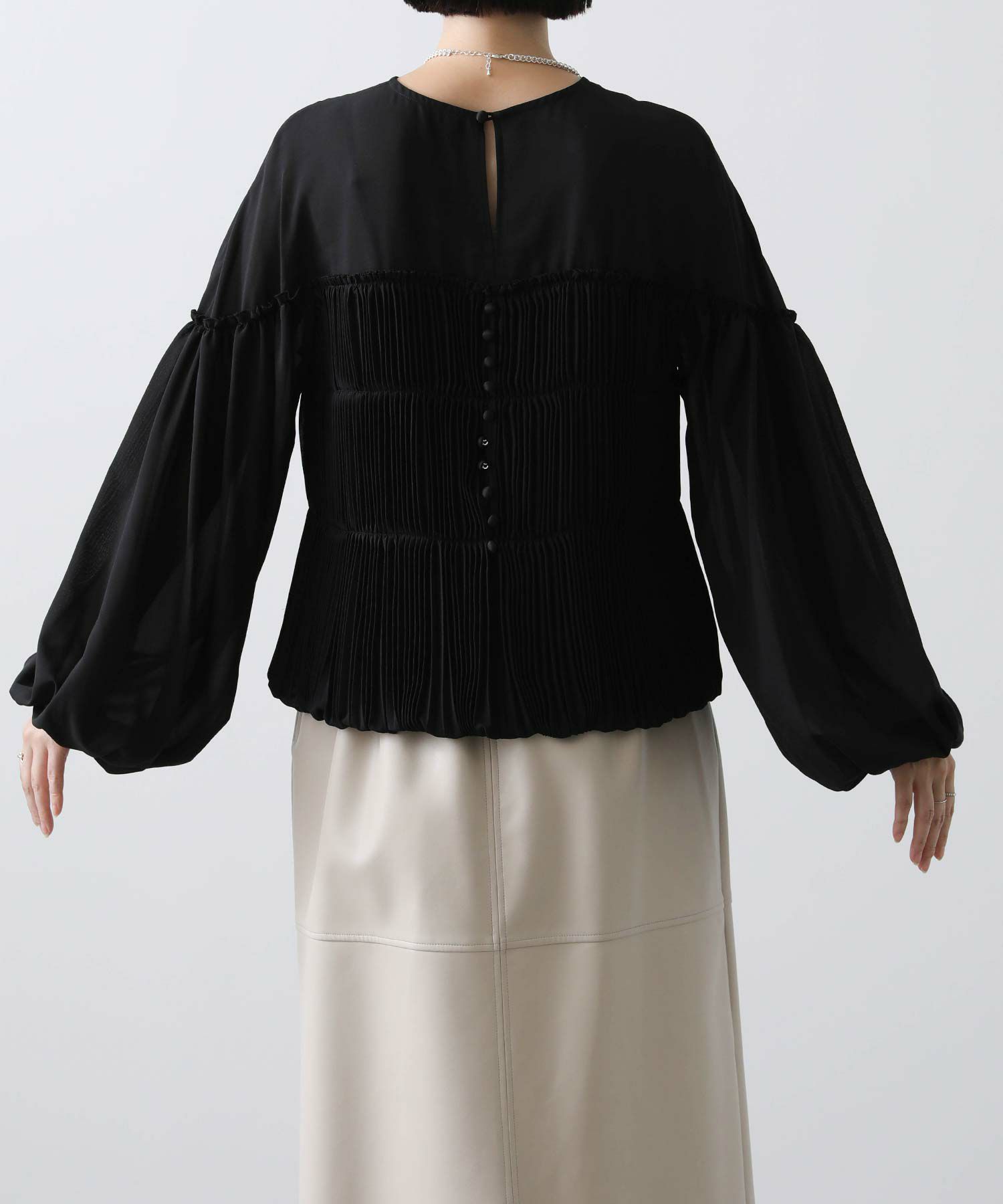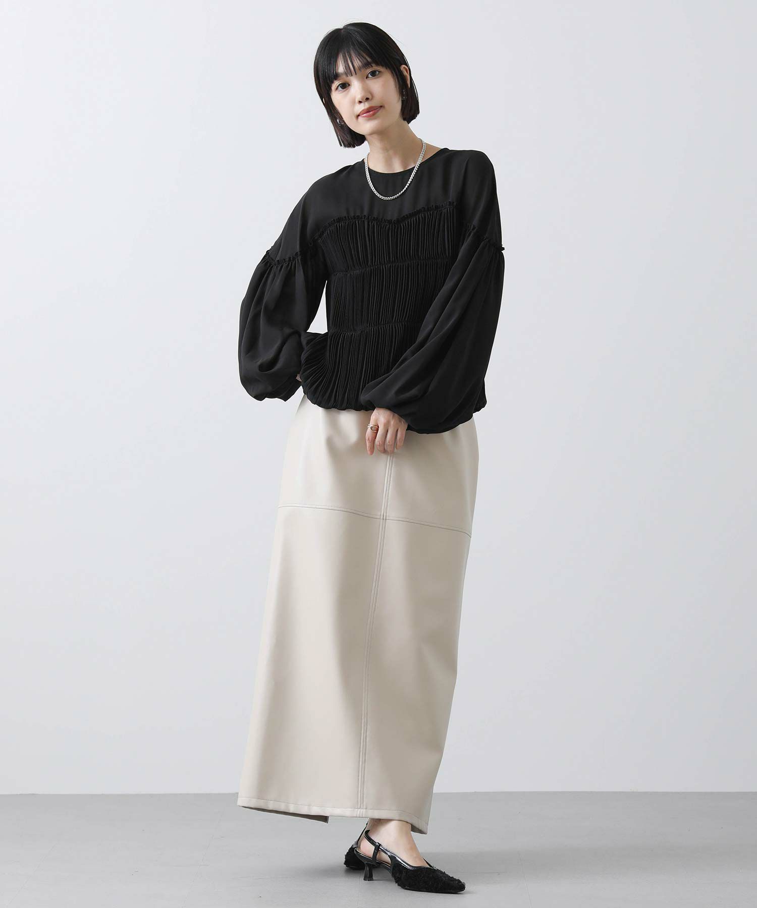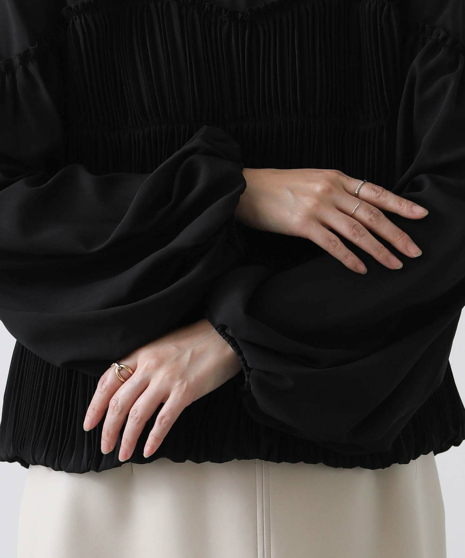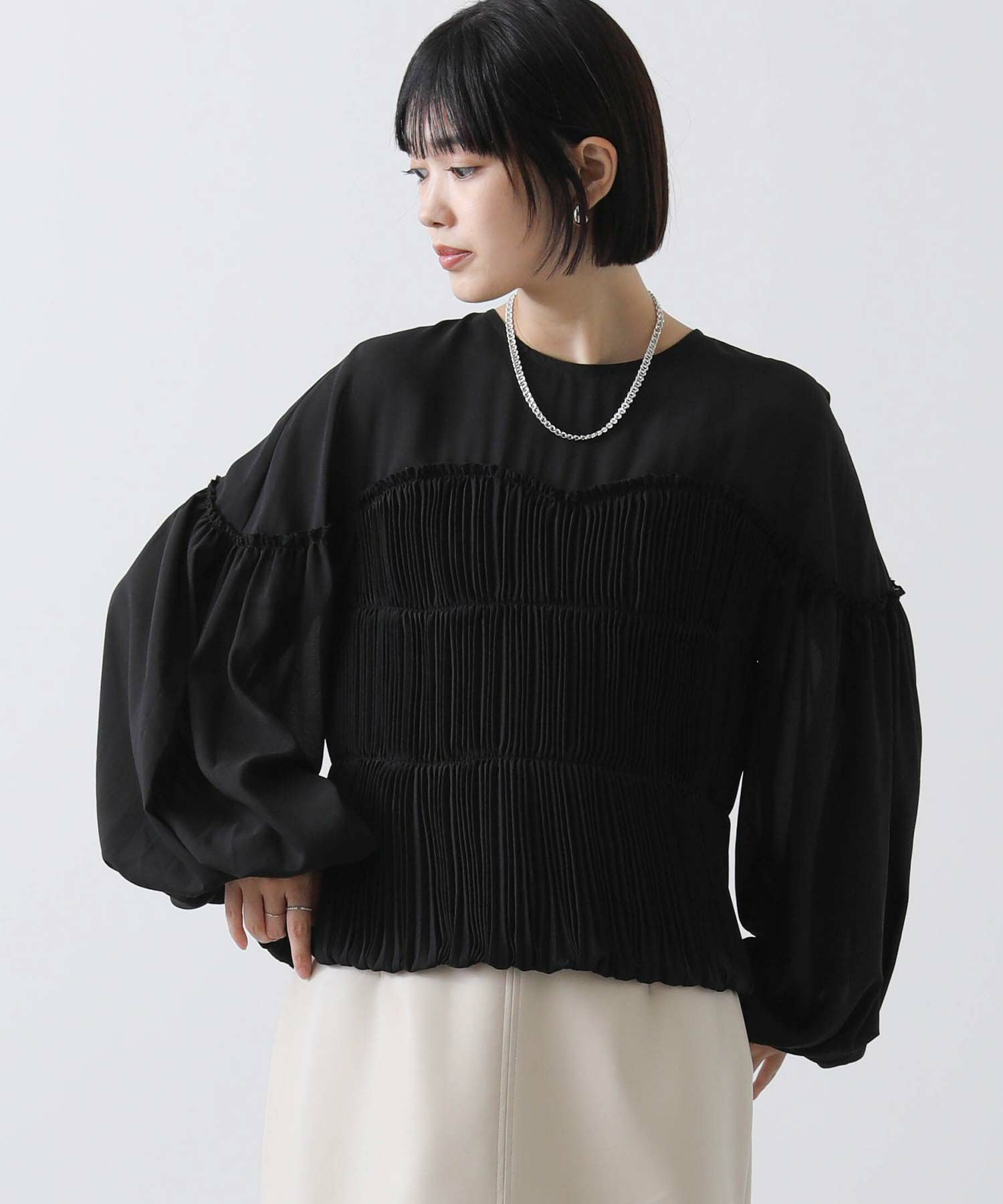ギャザ-をたっぷりと入れたボリューム袖がアクセントに。