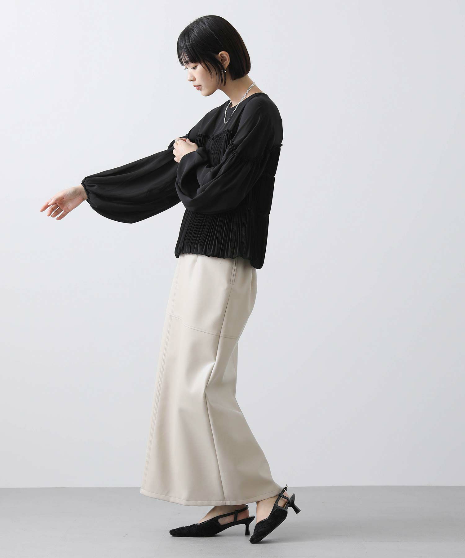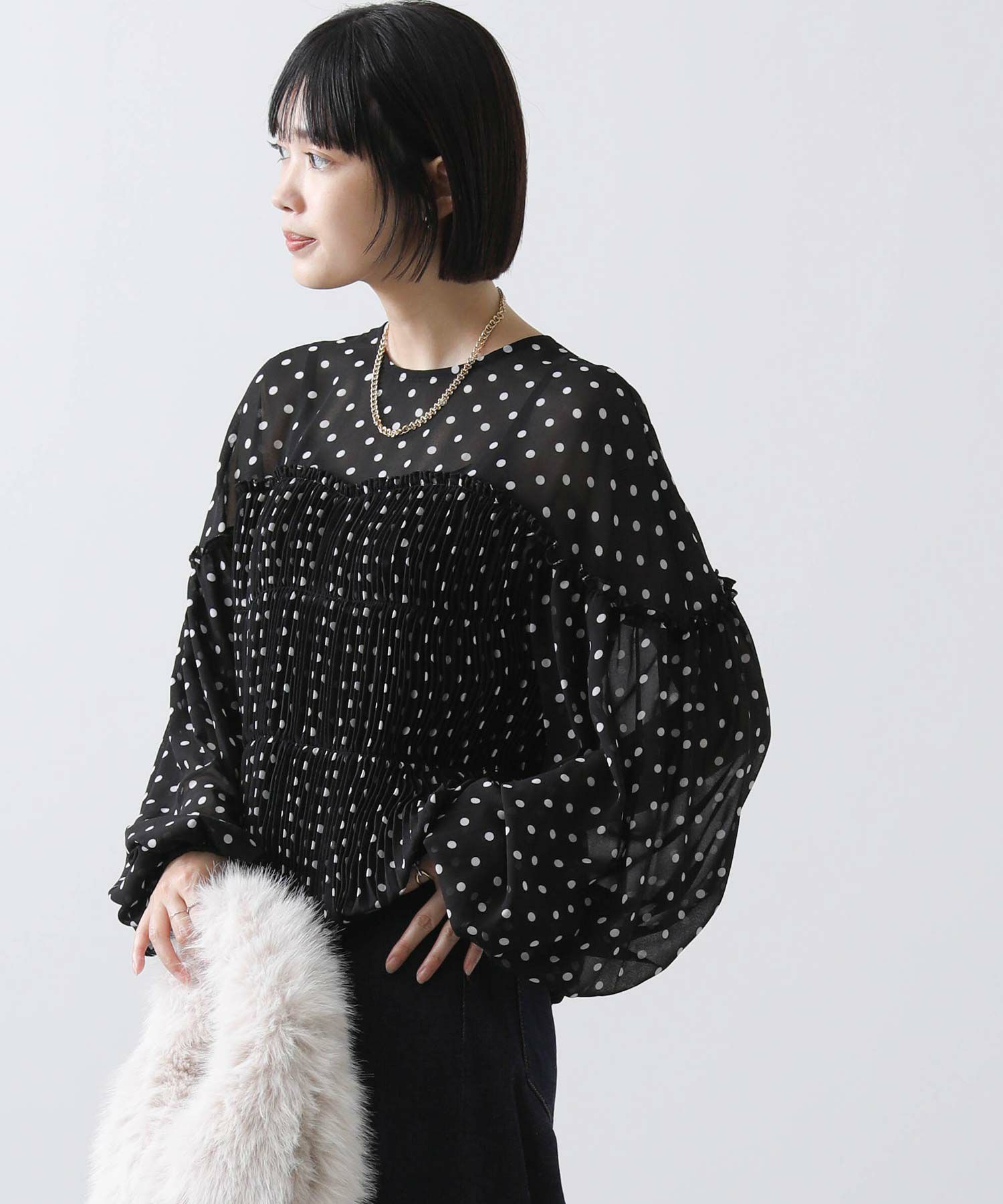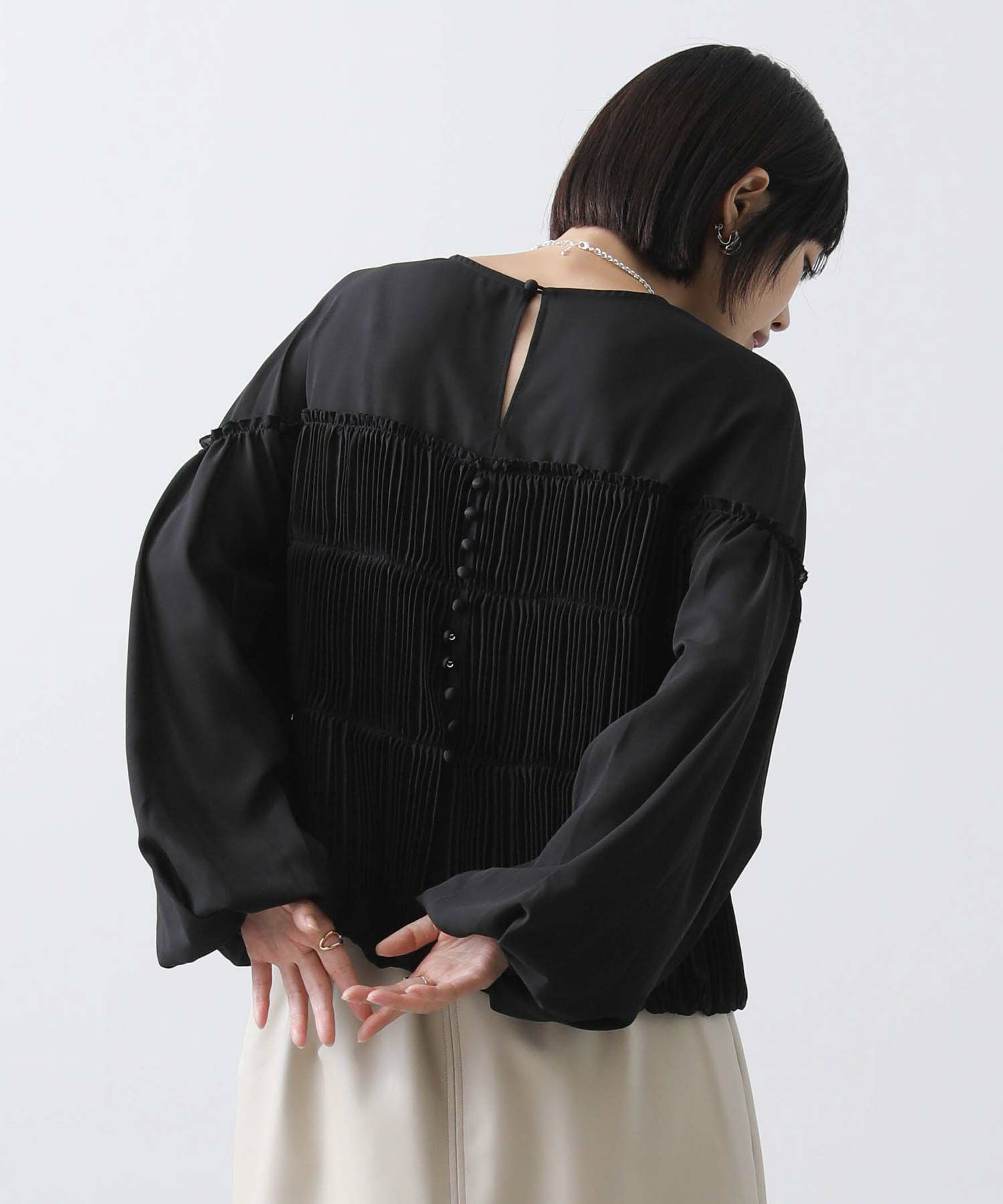 ギャザ-をたっぷりと入れたボリューム袖がアクセントに。