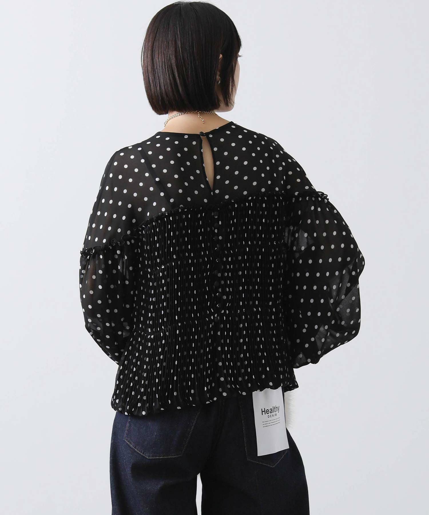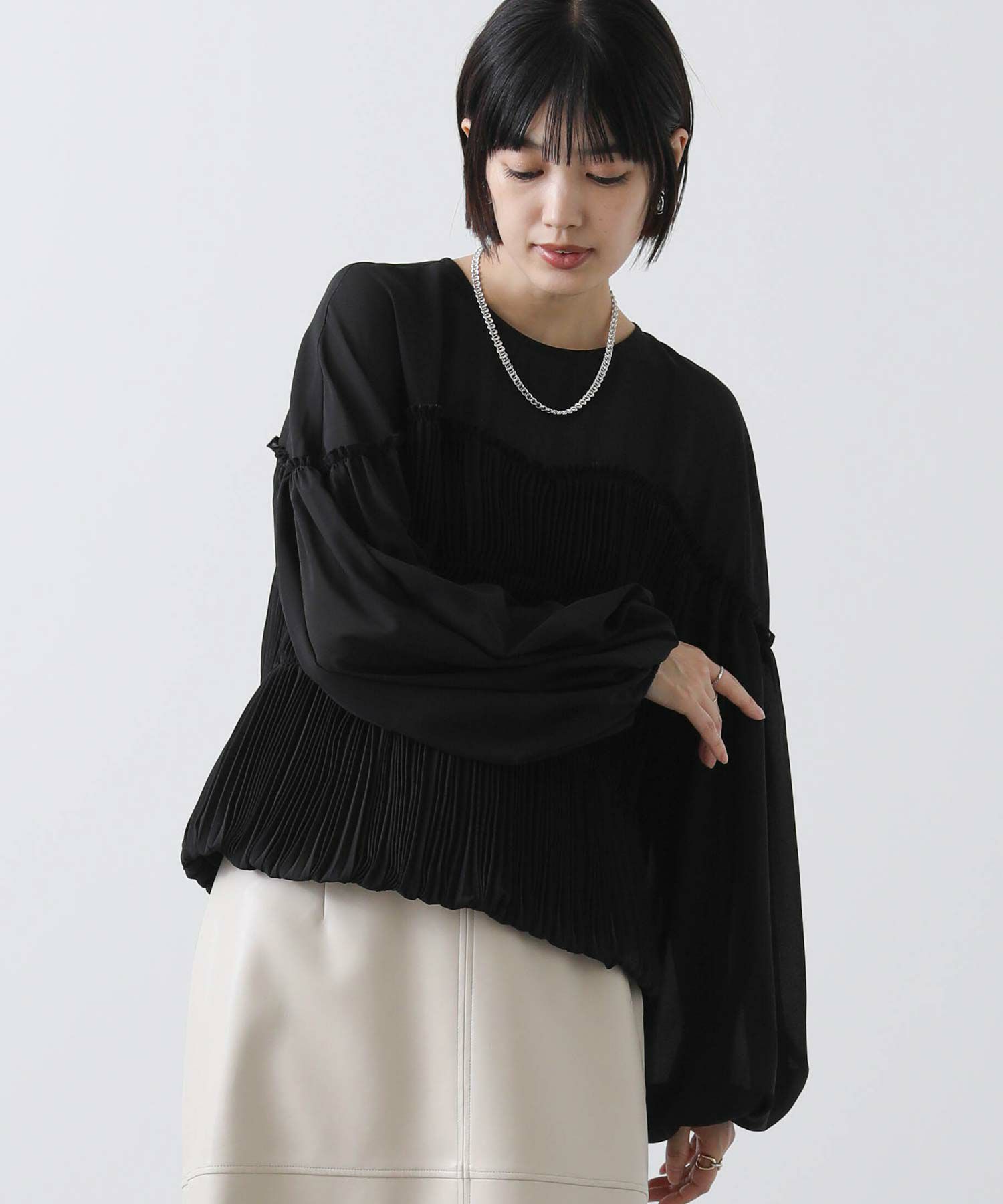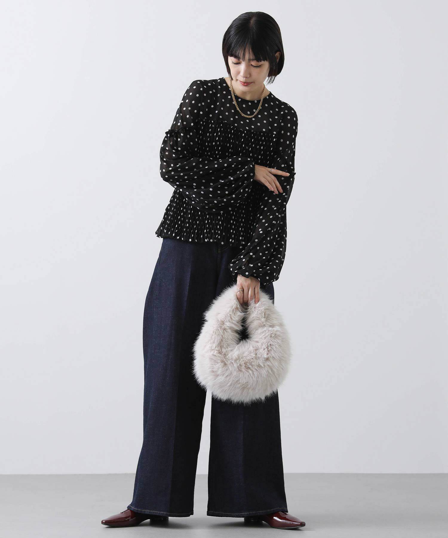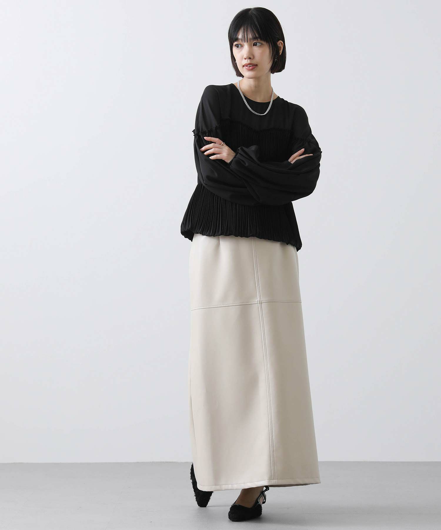 ギャザ-をたっぷりと入れたボリューム袖がアクセントに。