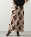 印象的なブーケモチーフの刺繍が、華やかで特別感のあるスカート。