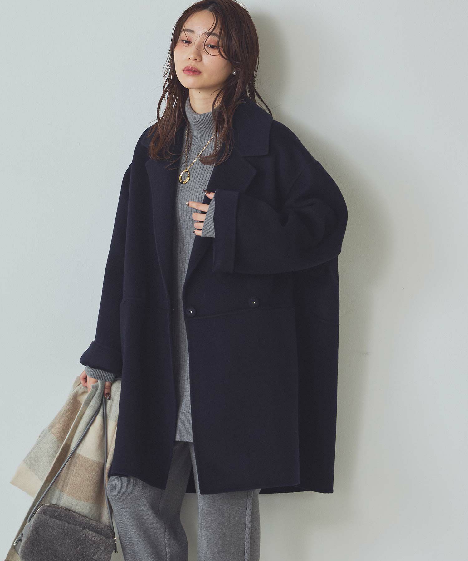 ゆとりのある今っぽいシルエットで、アームホールにもゆとりがあるので、厚手のニットの上からも羽織れます。