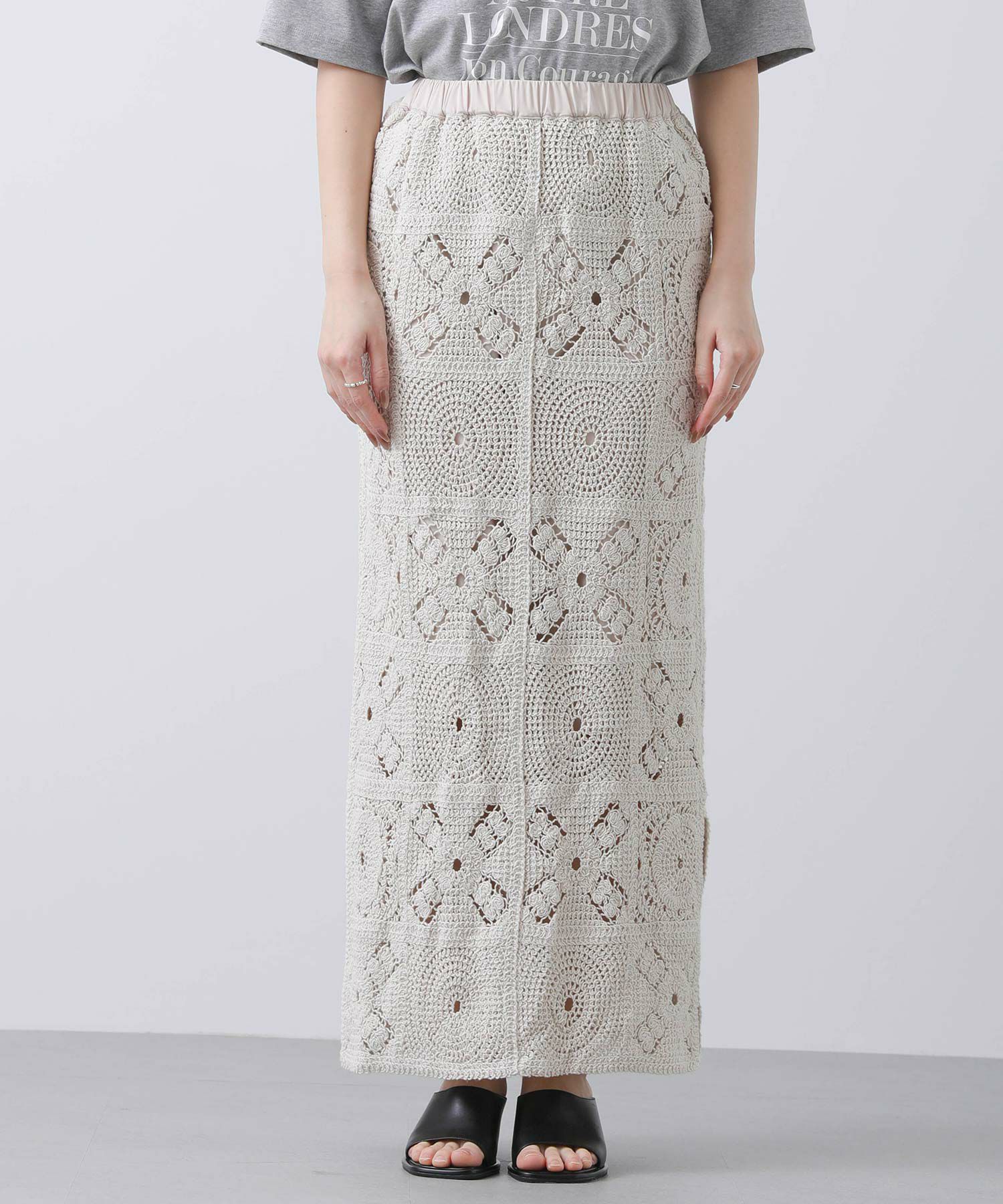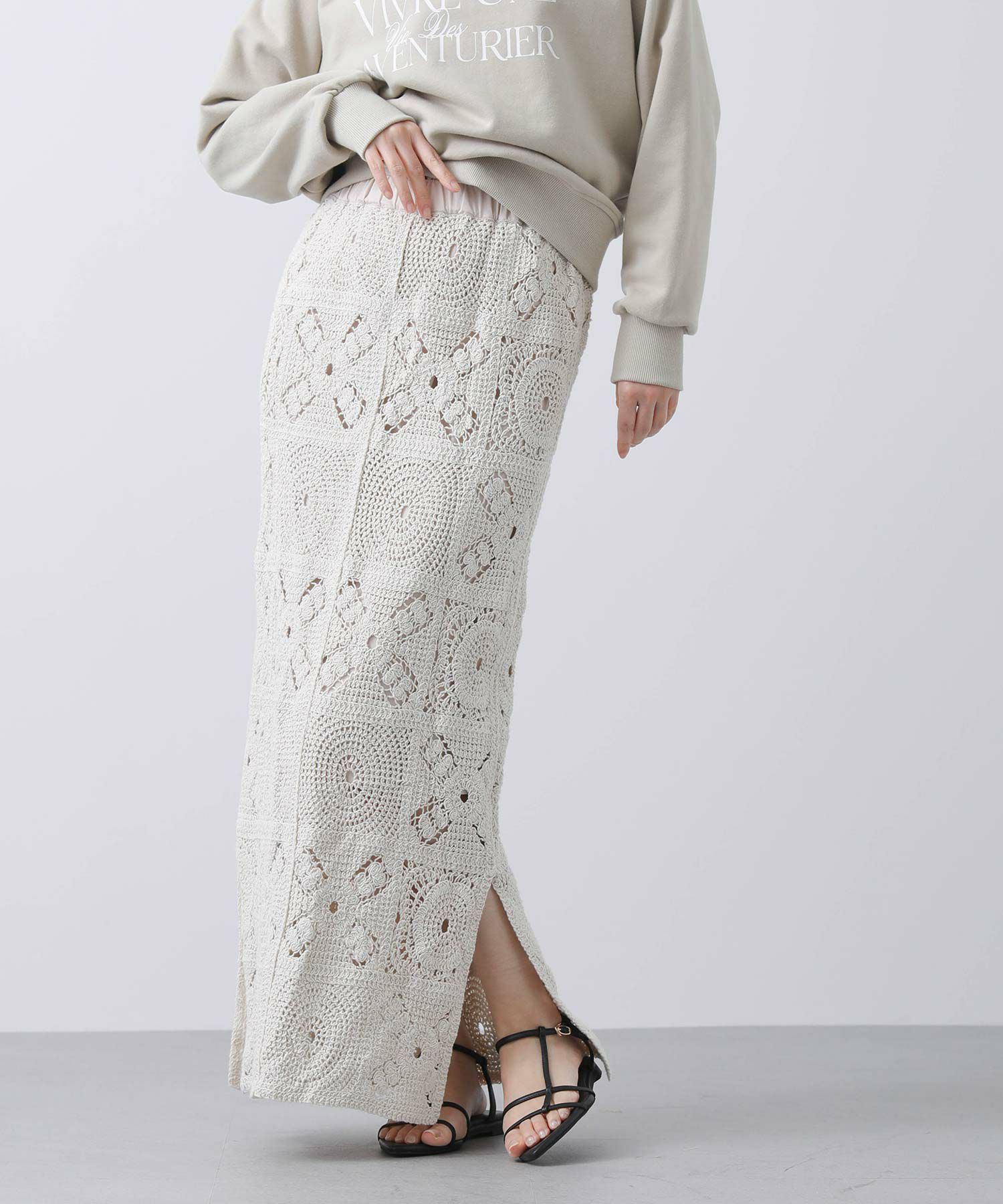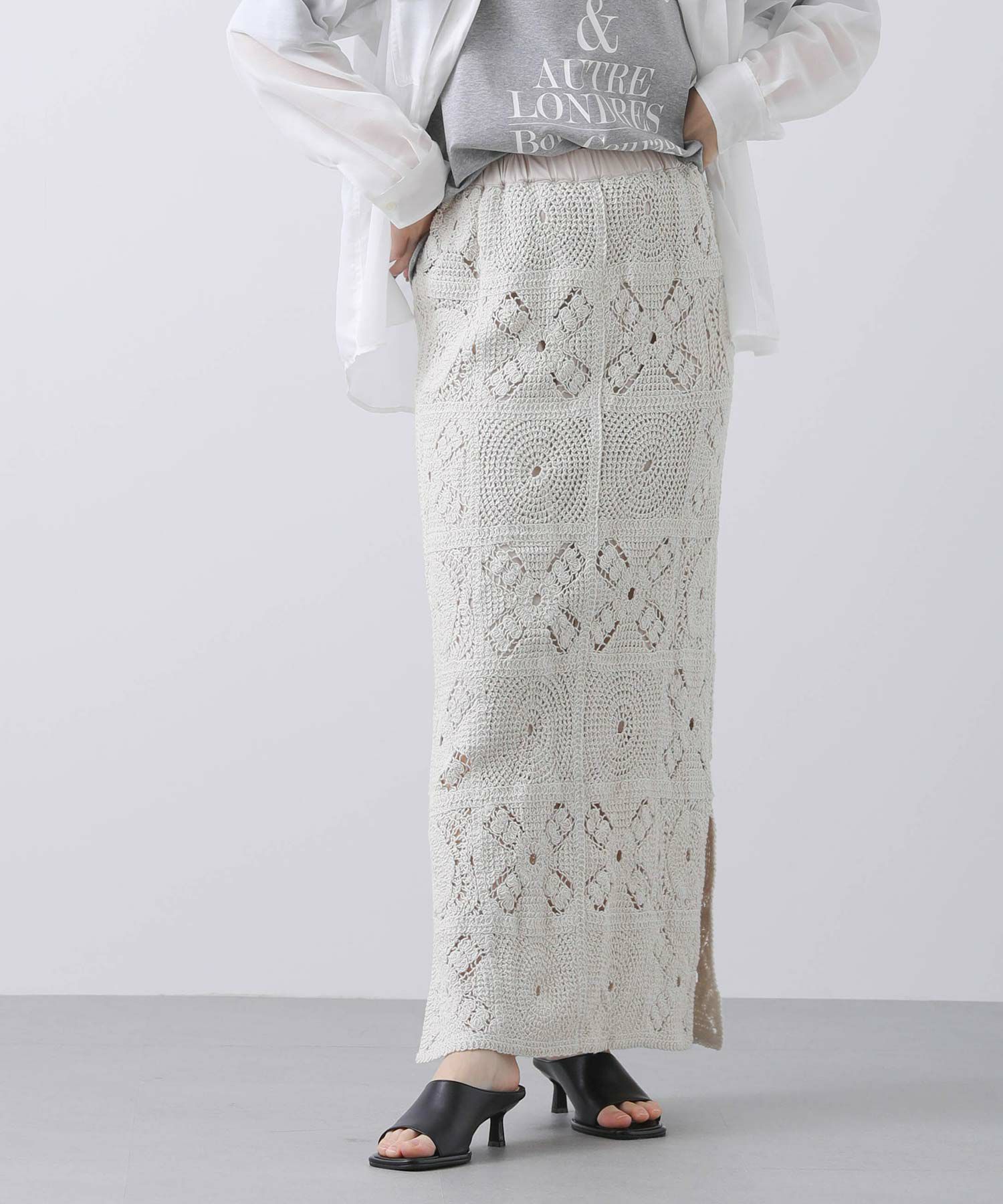 【TorrazzoDonna/トラッツォドンナ】から、クロッシェ編み風ニットのアイラインロングスカートをセレクト。
