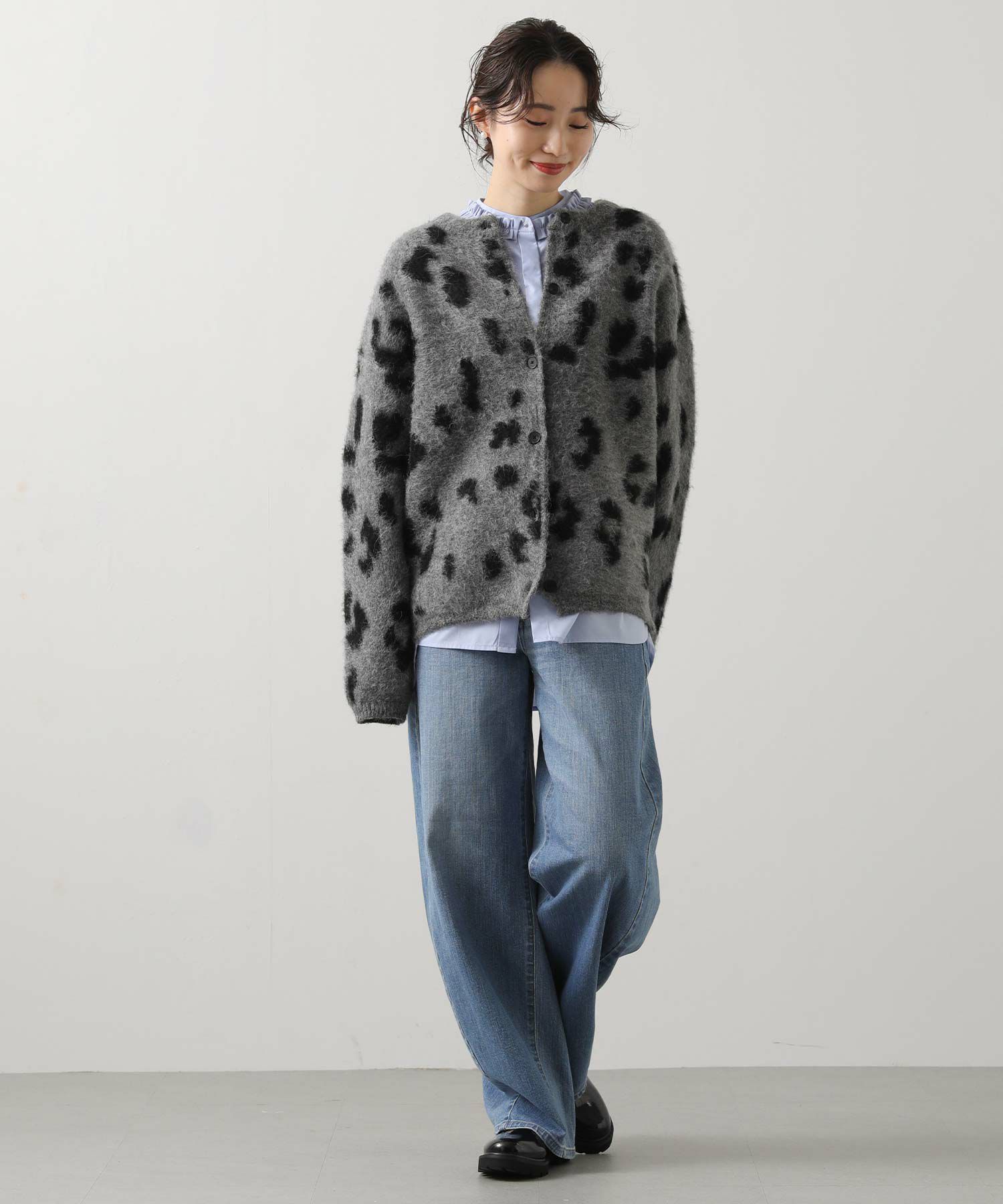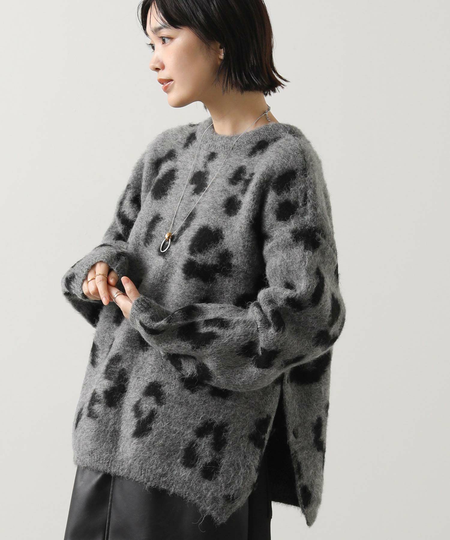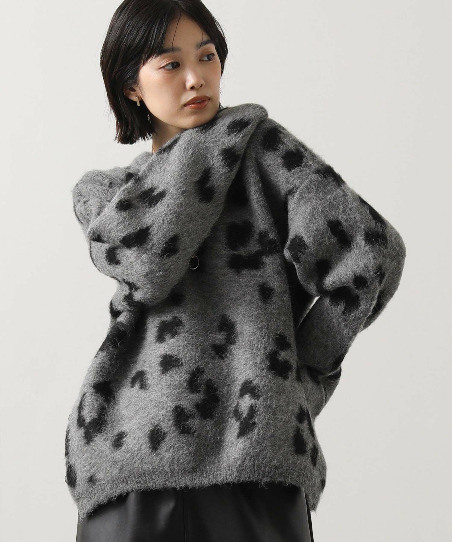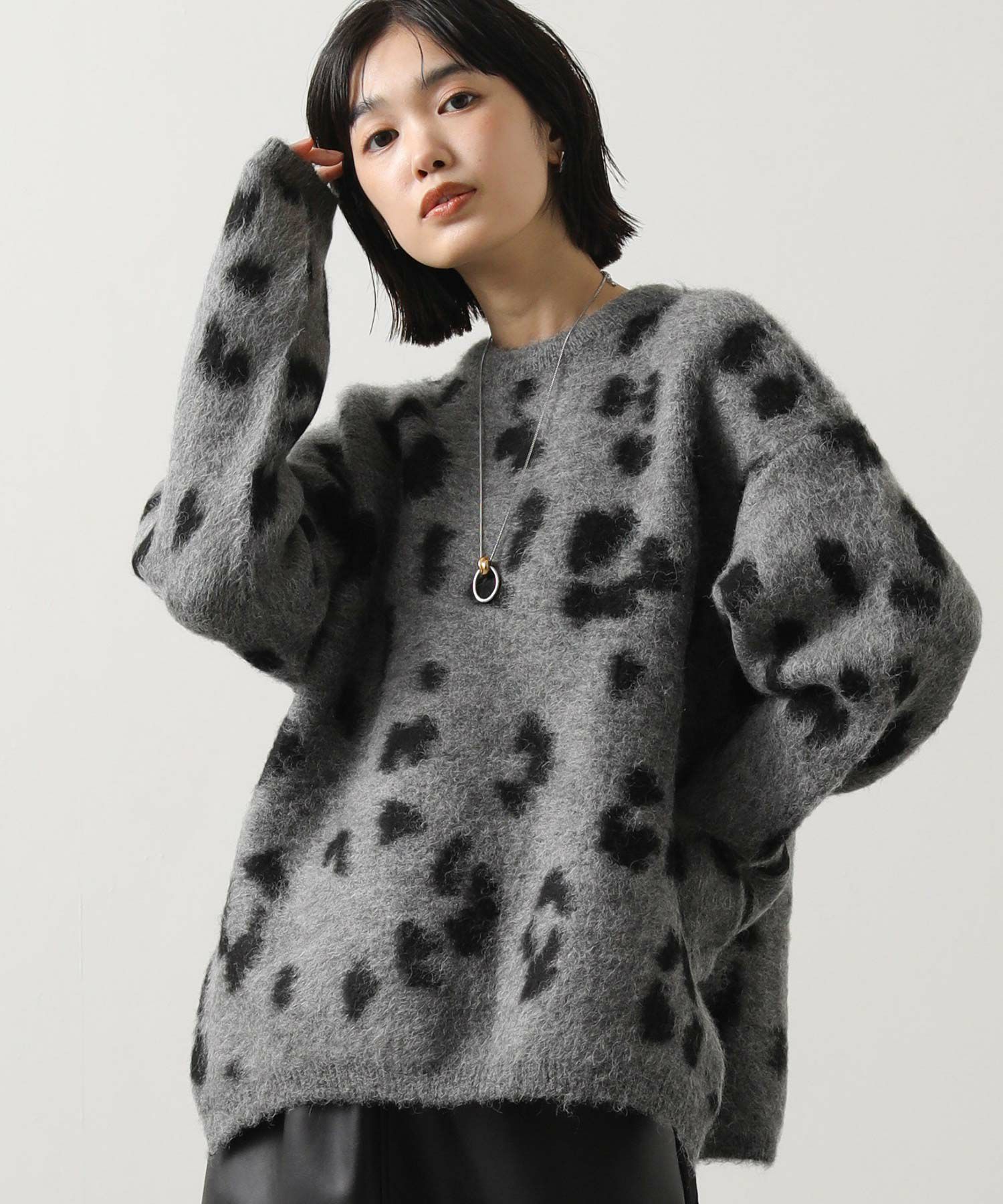 【BoutiqueOrdinary(ブティークオーディナリー)】から、レオパードジャガードで編み上げた、オーバーサイズで抜け感のある着こなしが叶うニットカーデをセレクト。