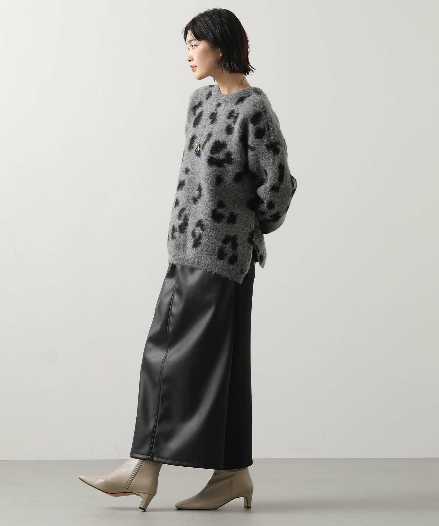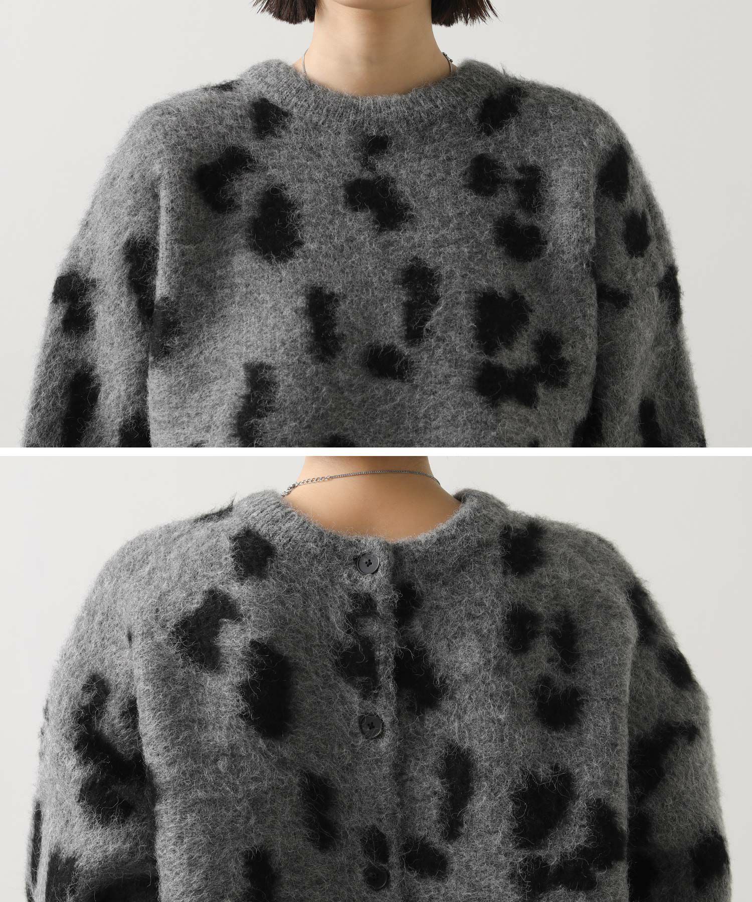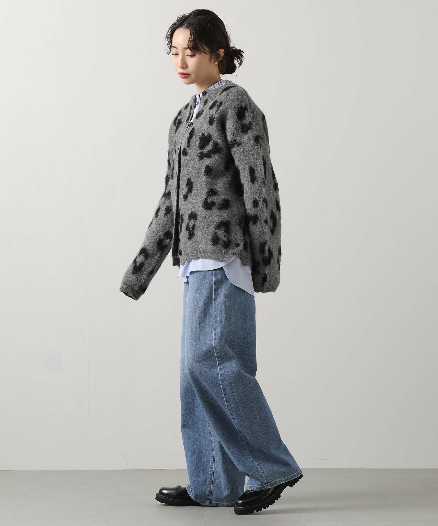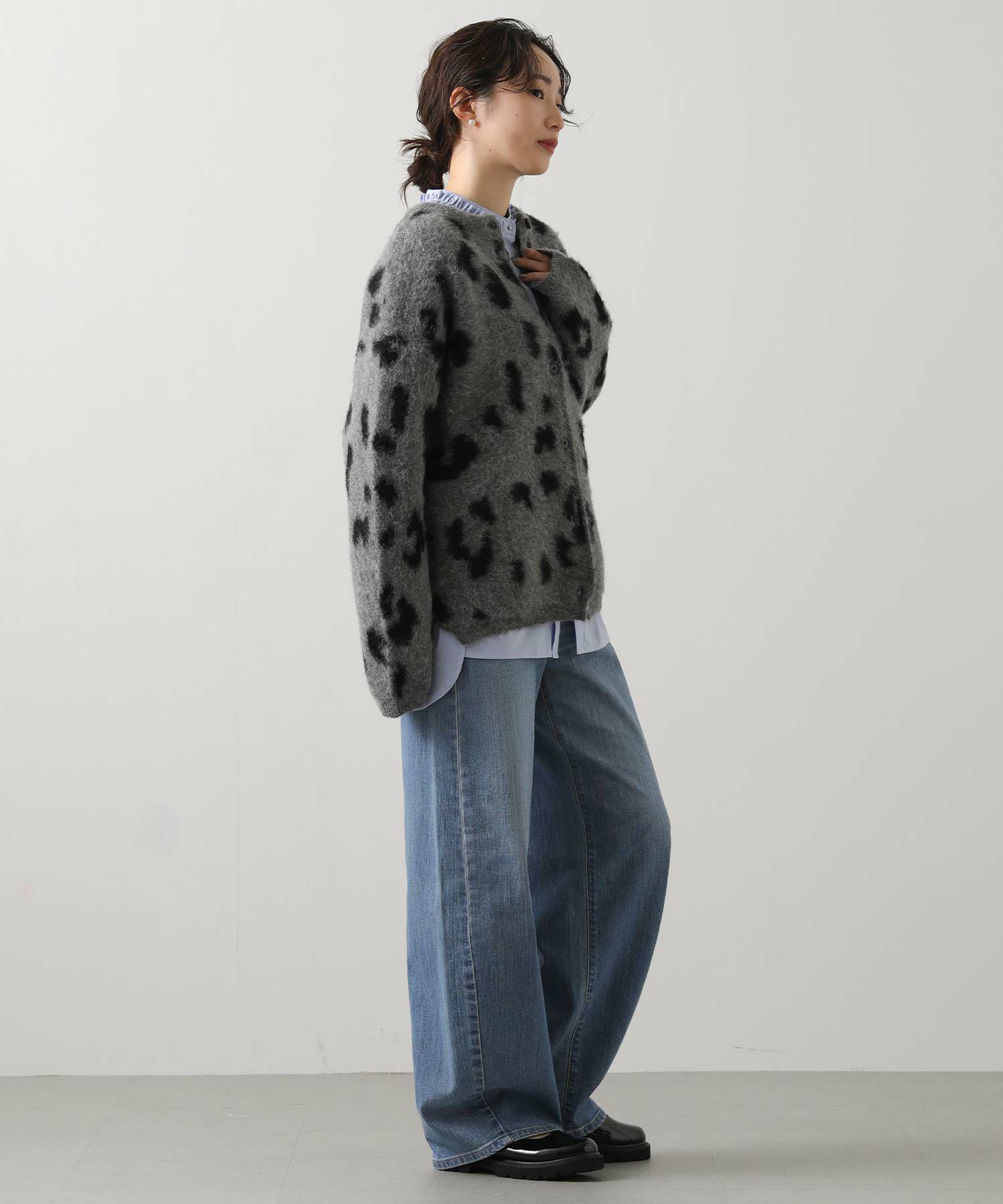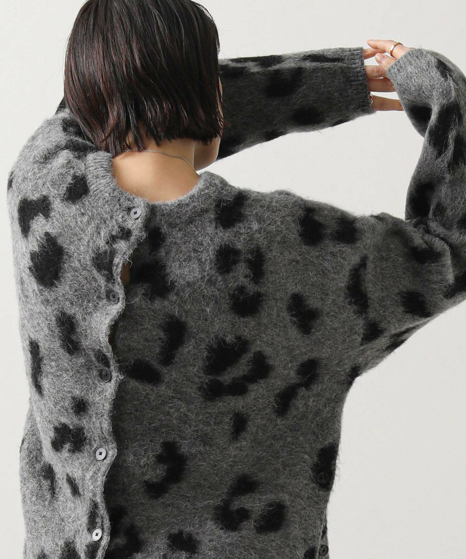 【BoutiqueOrdinary(ブティークオーディナリー)】から、レオパードジャガードで編み上げた、オーバーサイズで抜け感のある着こなしが叶うニットカーデをセレクト。