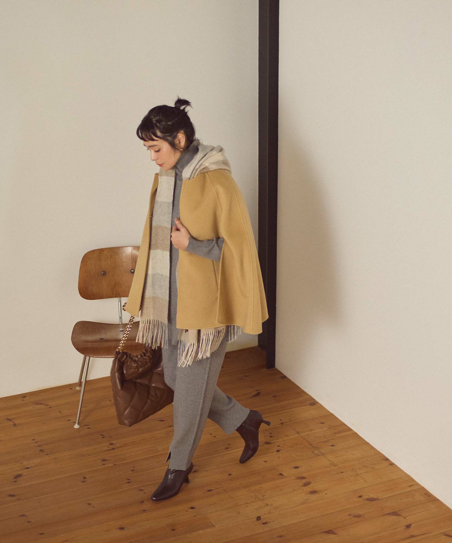滑らかで程よい厚みのニット素材を採用。 程よい生地厚にすることでほっこりし過ぎずスタイリッシュにまとまります。