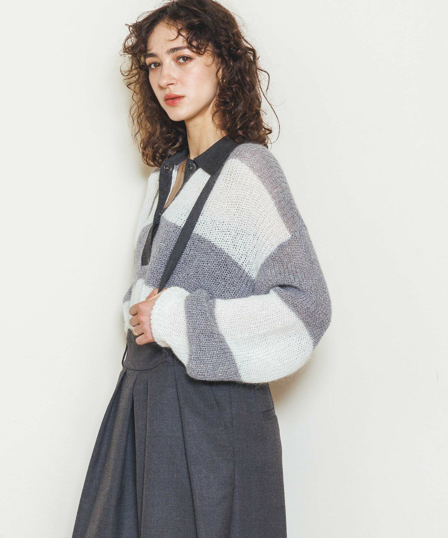 【Munich(ミューニック)】から、ふわっとエアリーで軽い編地と太ボーダーが目を惹くモヘアポロニットをセレクト。