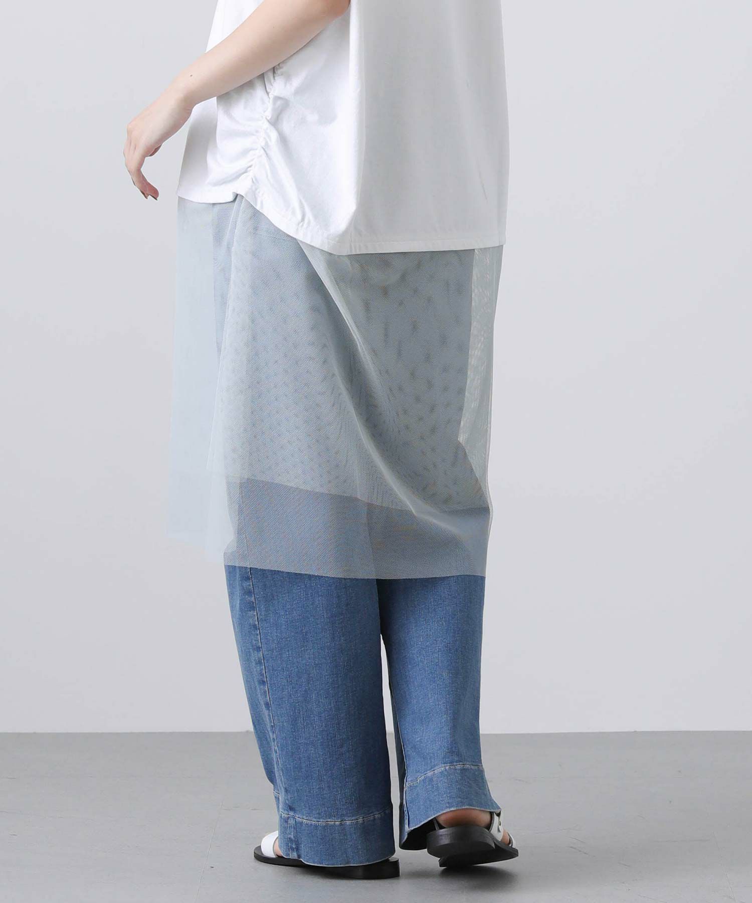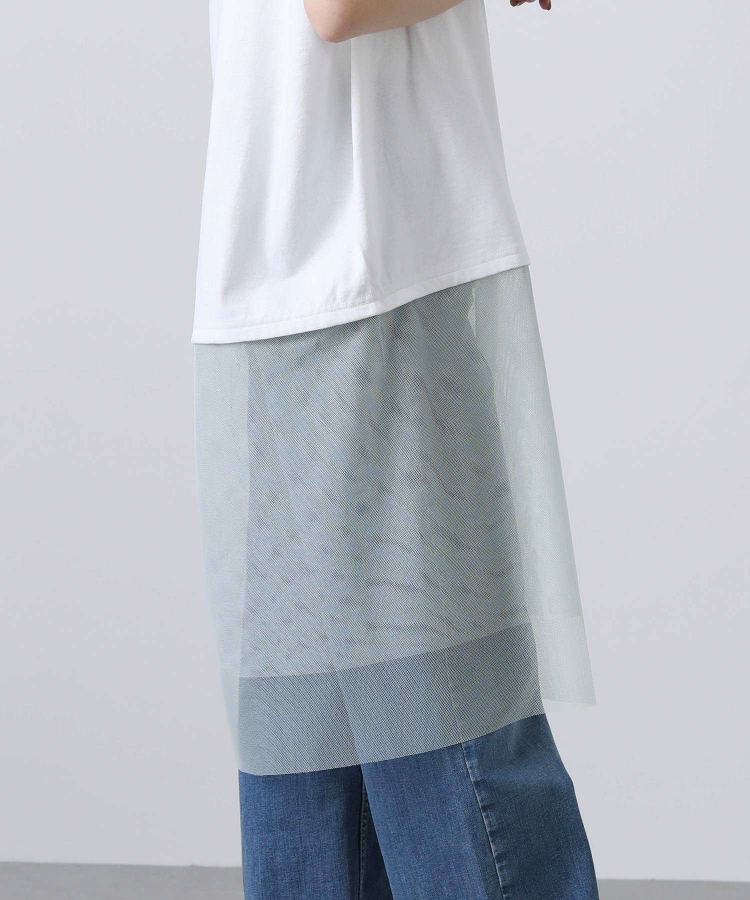 裾のチュールが腰まわりをカバーしつつ、軽やかなデザインポイントに。