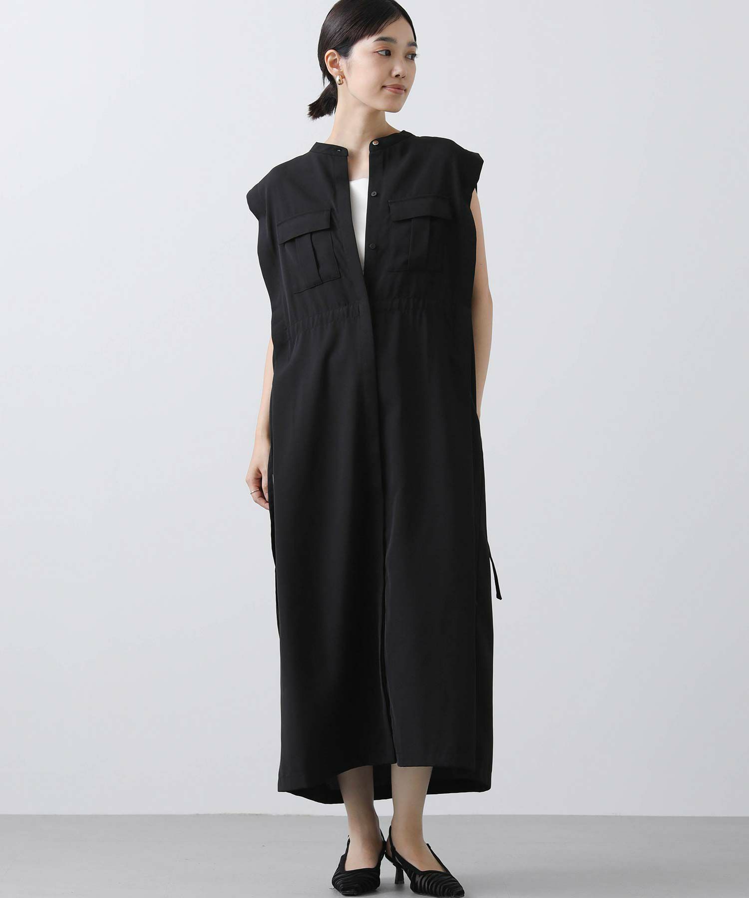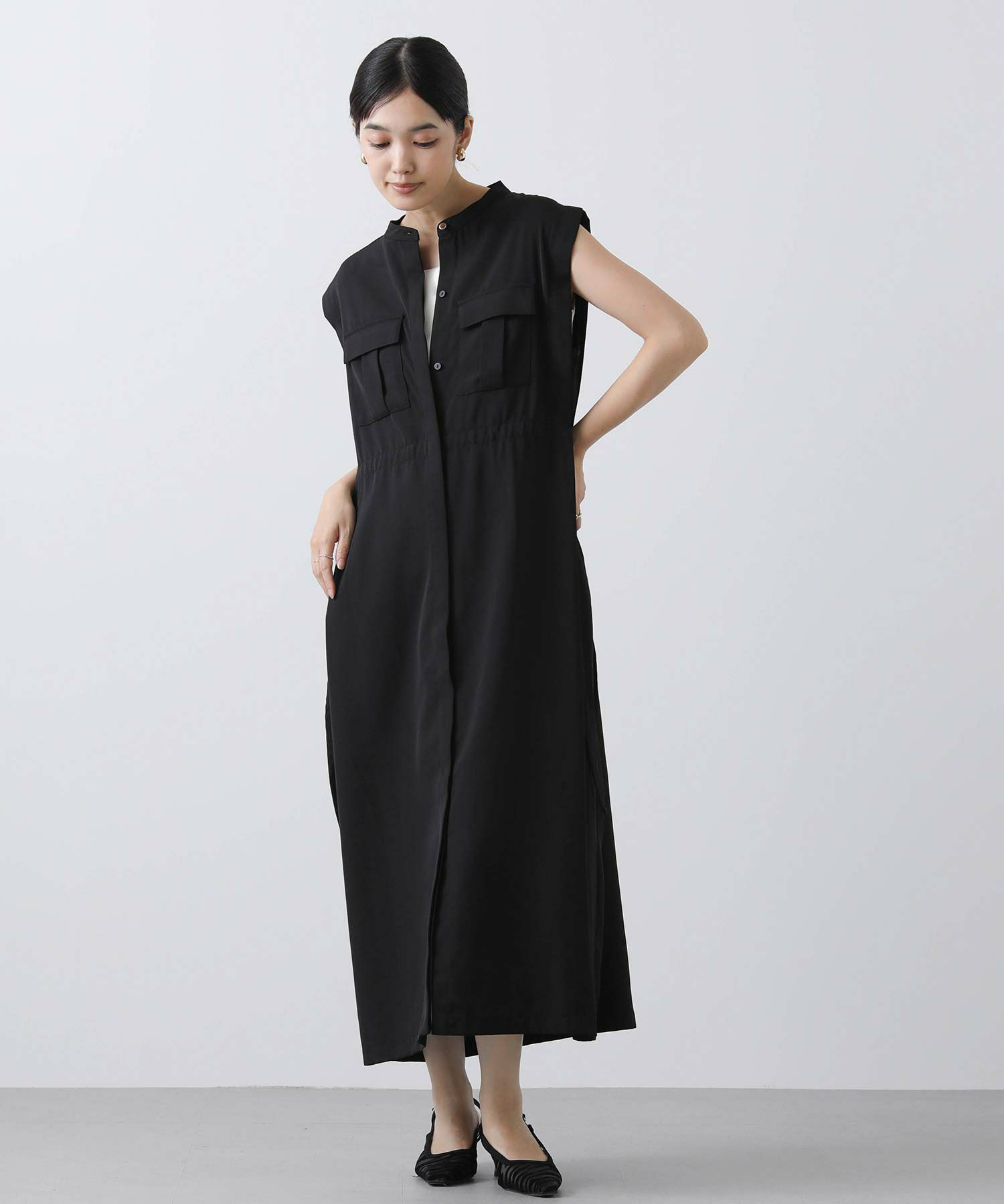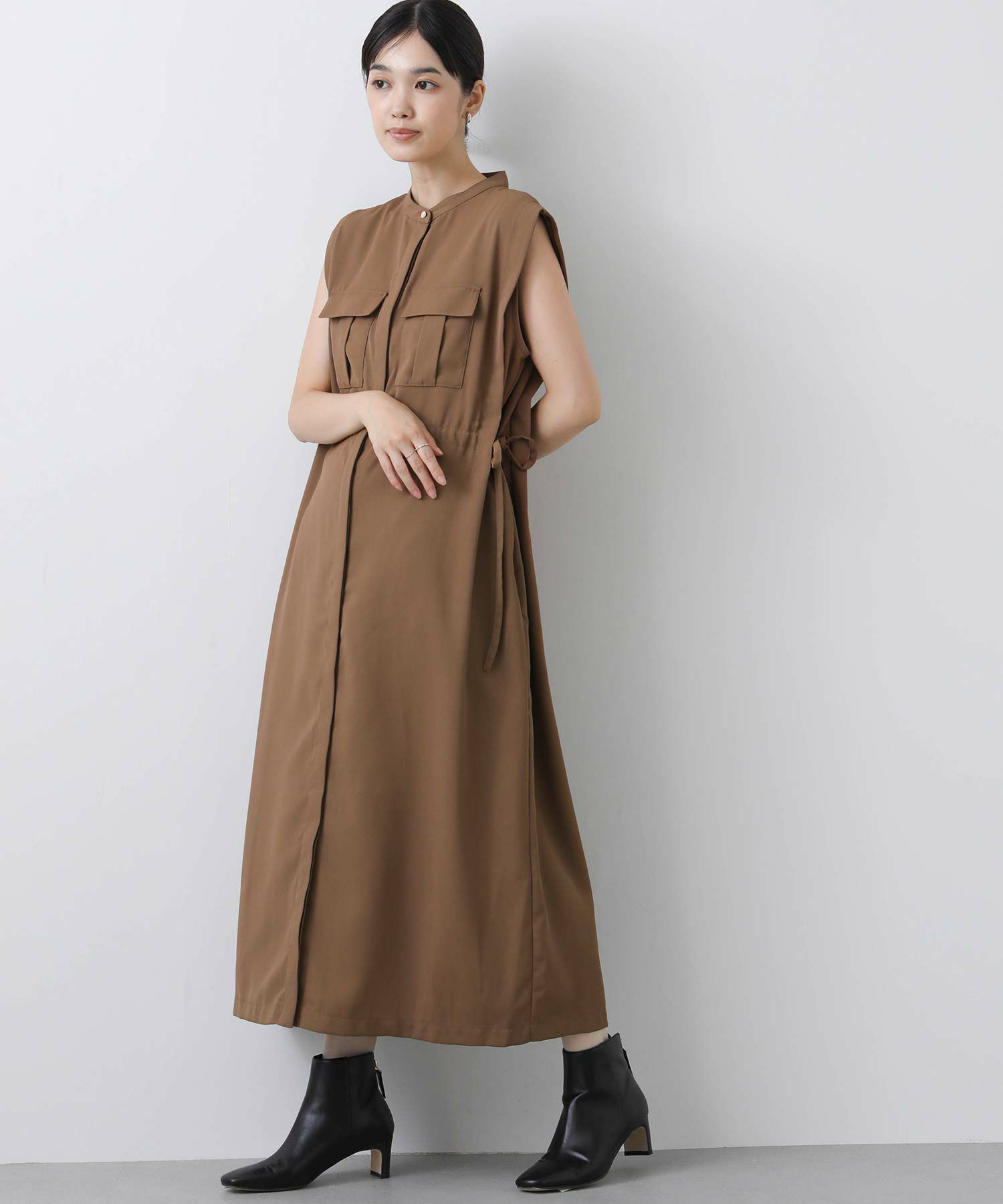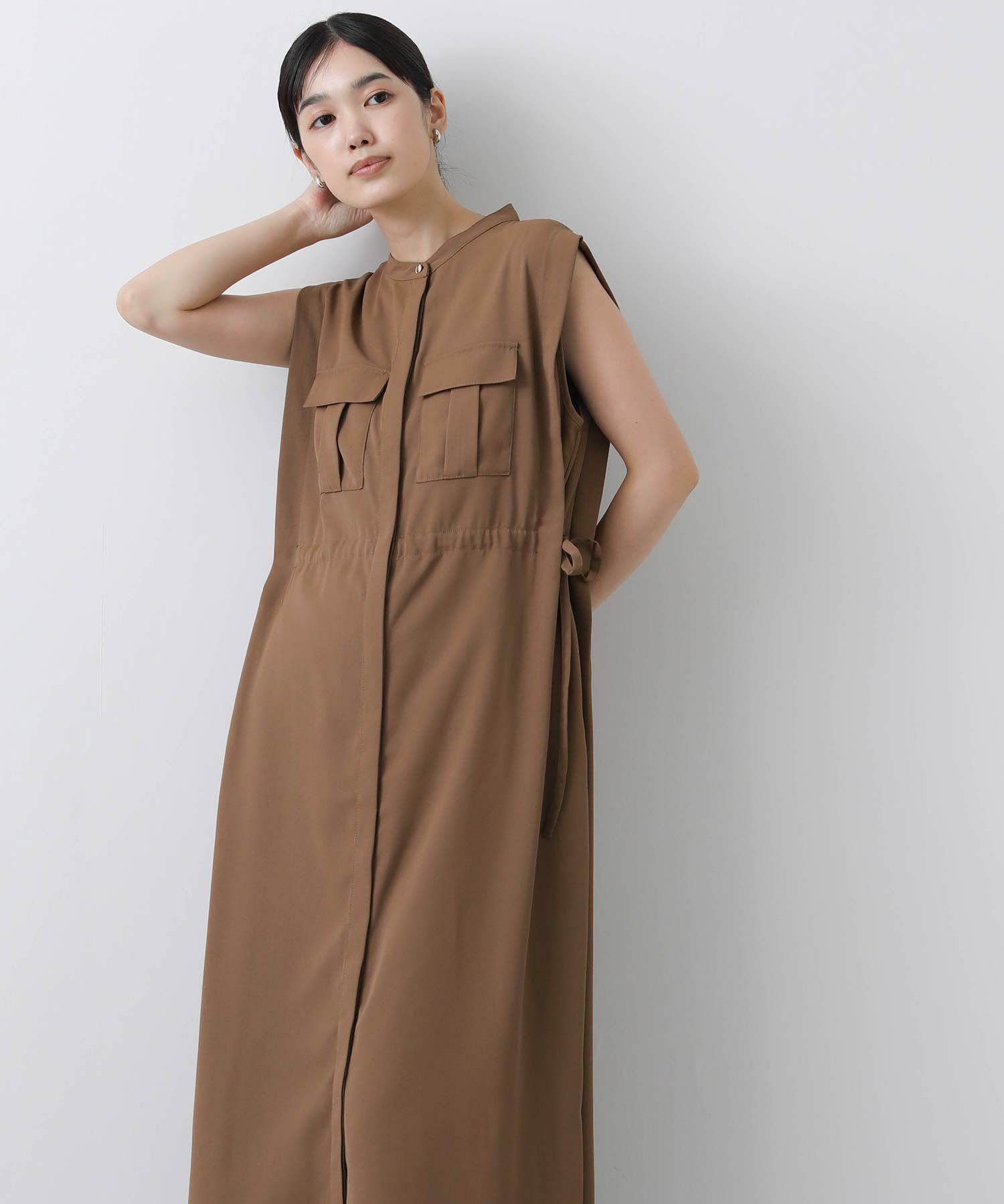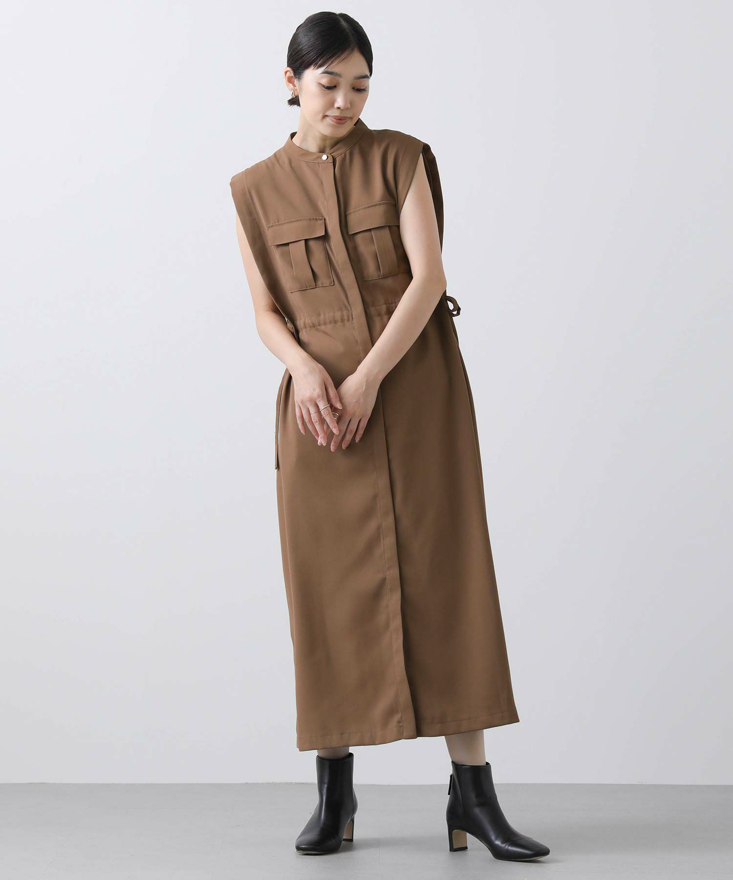 人気のサファリワンピースは、程よい厚みと落ち感の良い素材にアップデートされ、上品な印象に。
