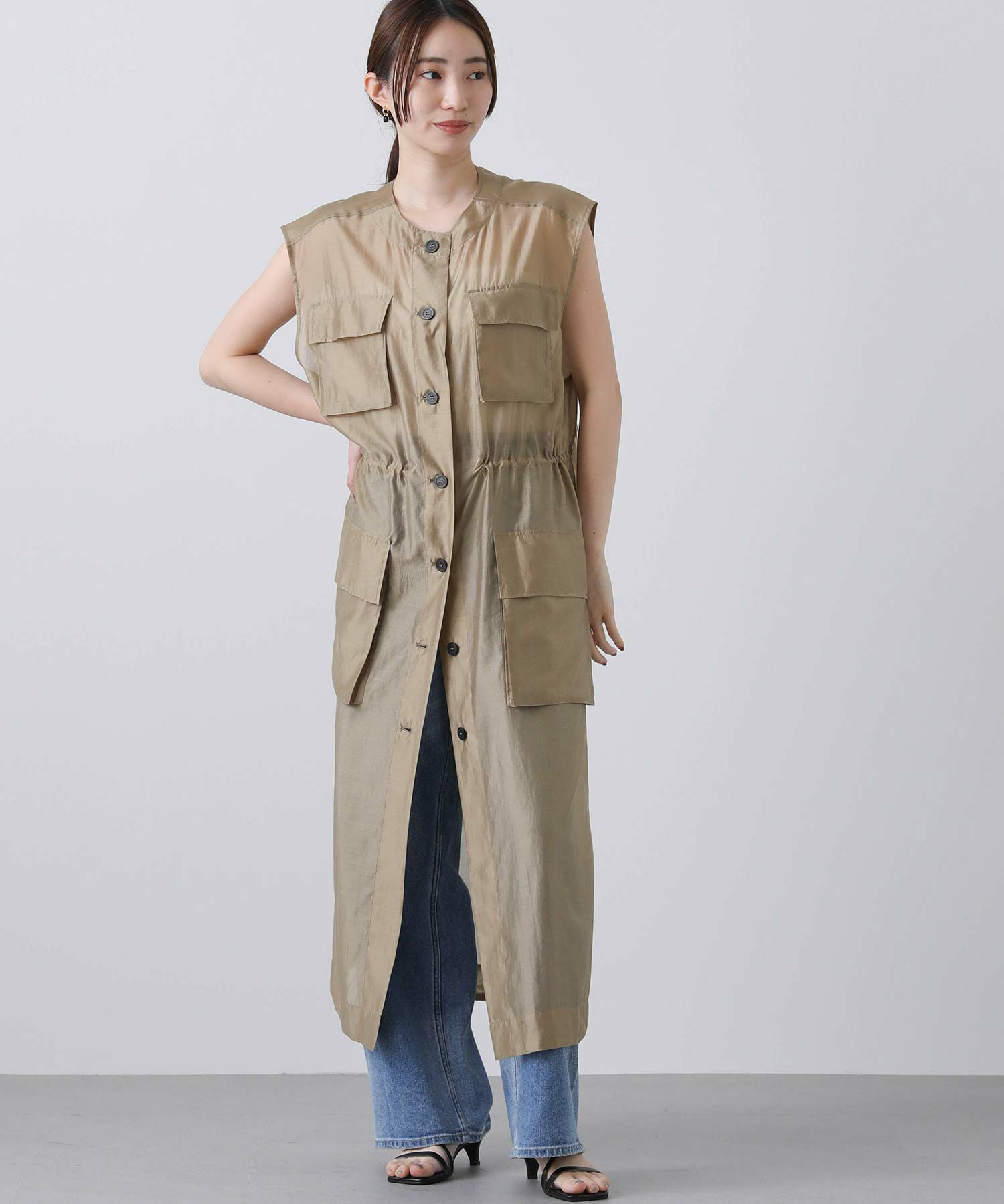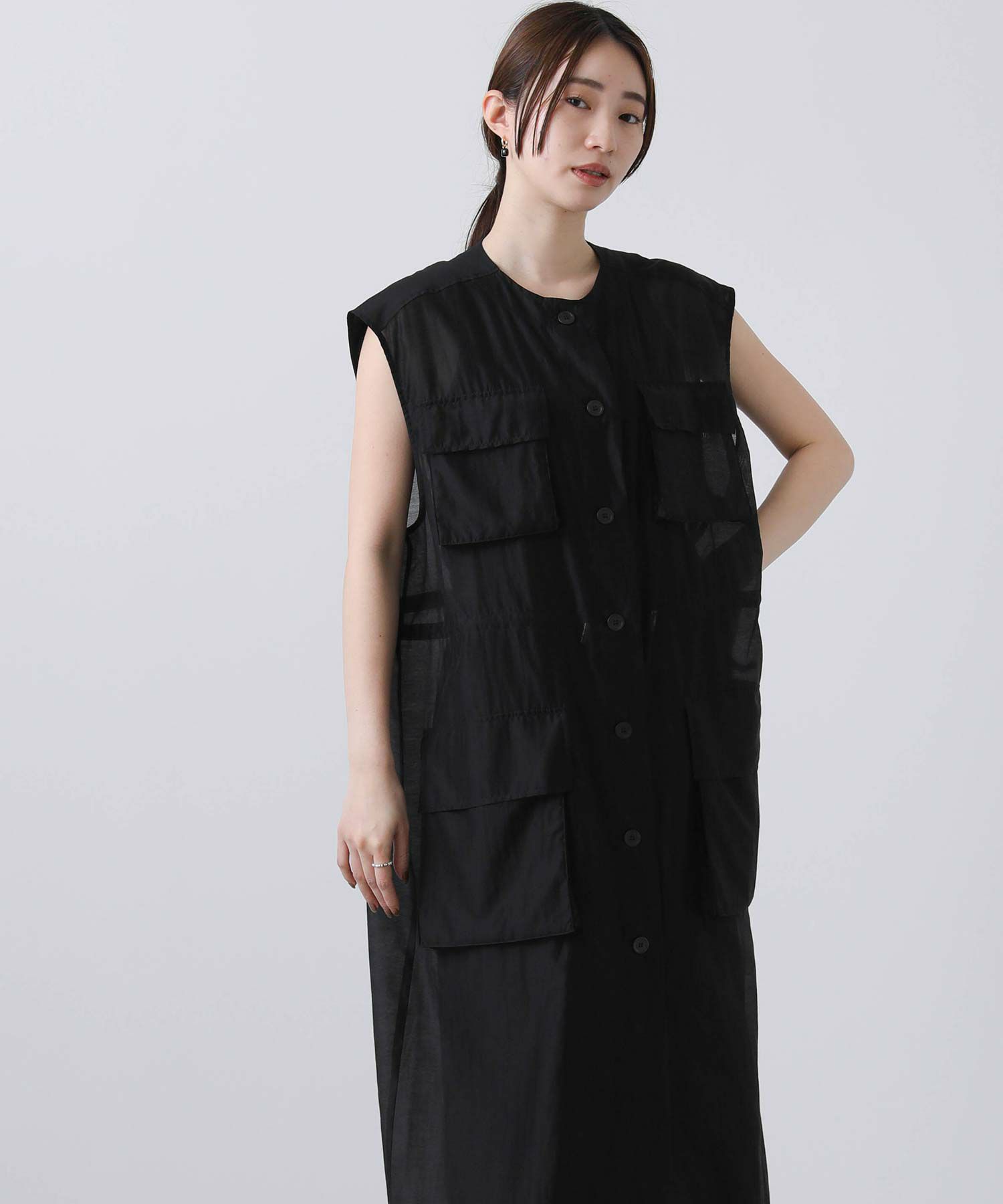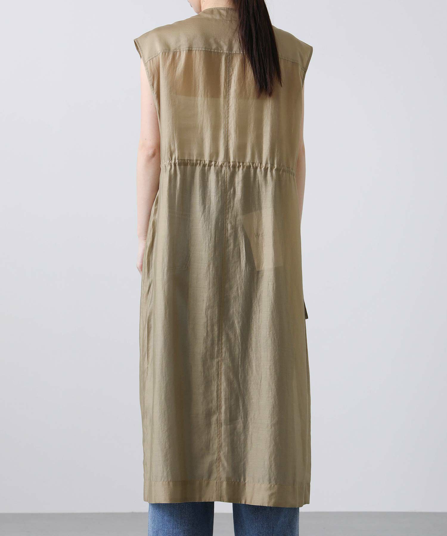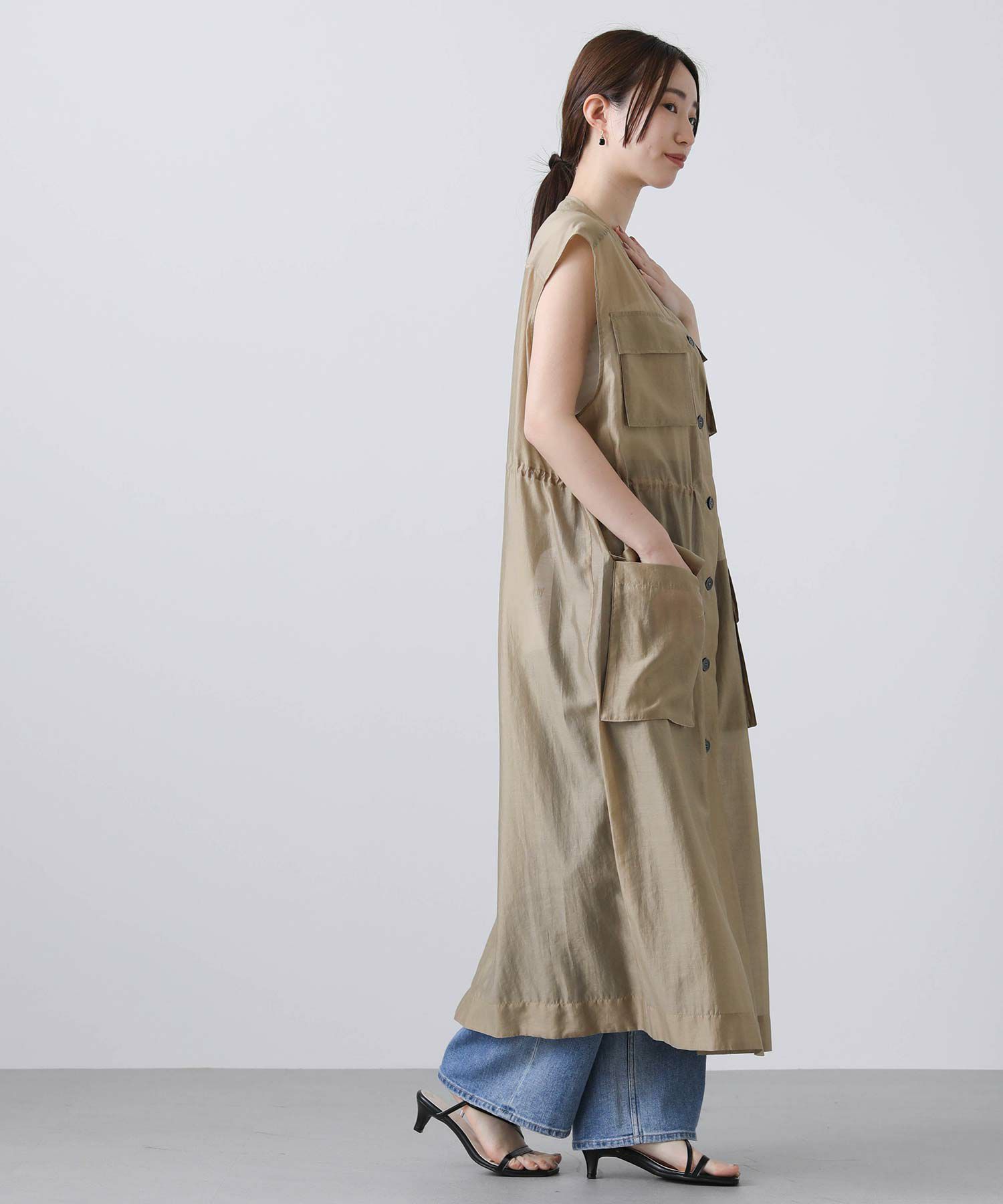 フロントはボタンを留めてワンピースとしても、開けてジレとしても着られます。