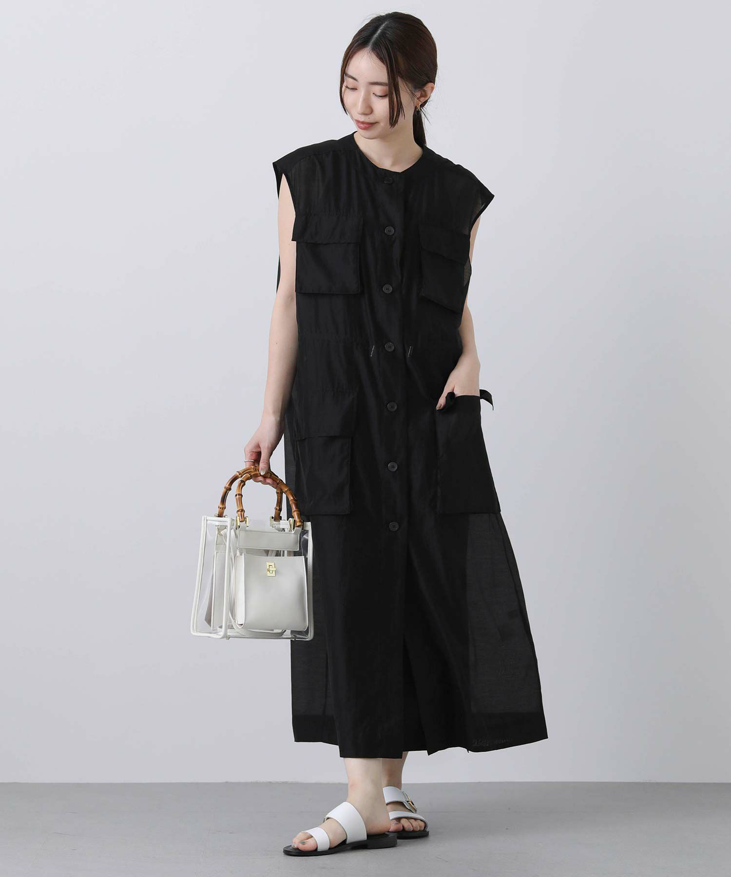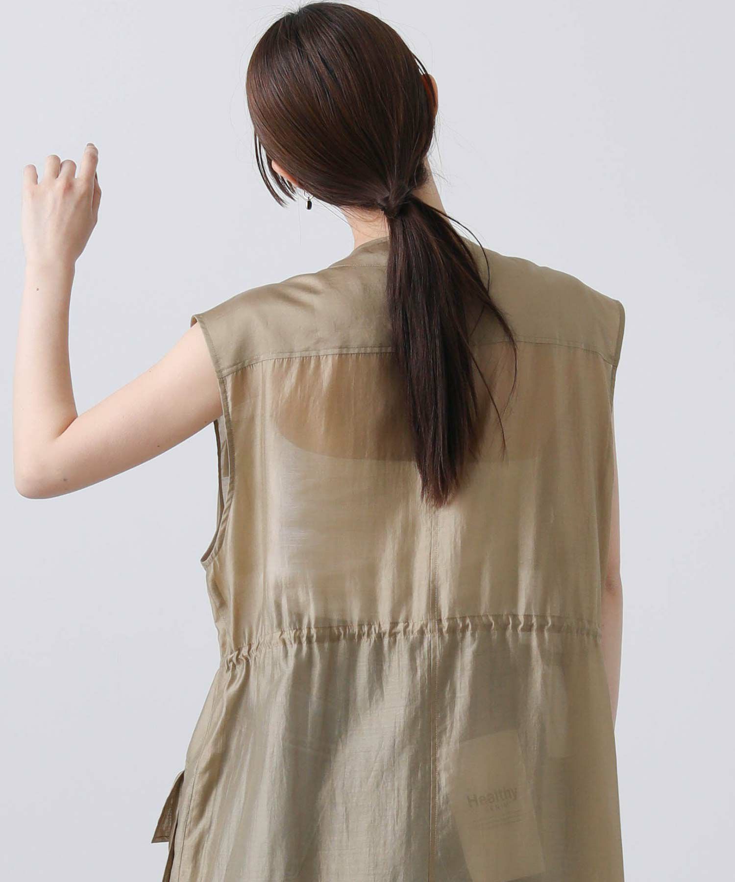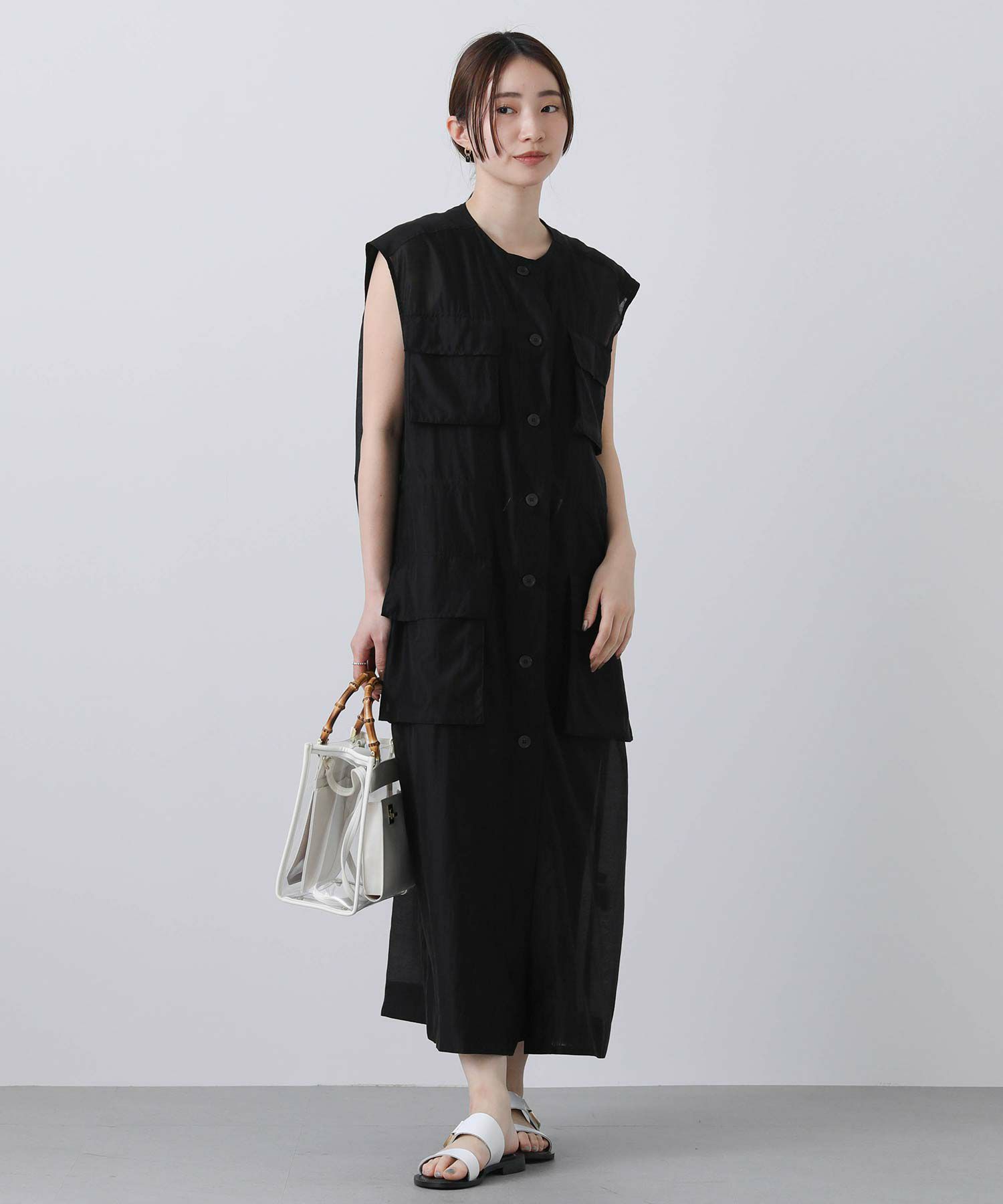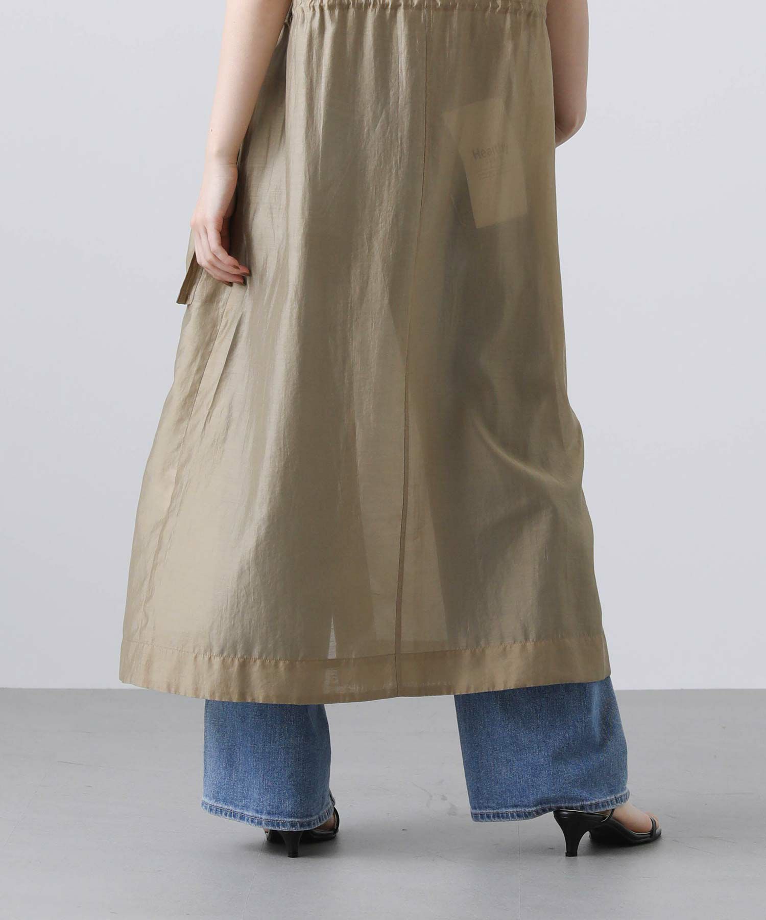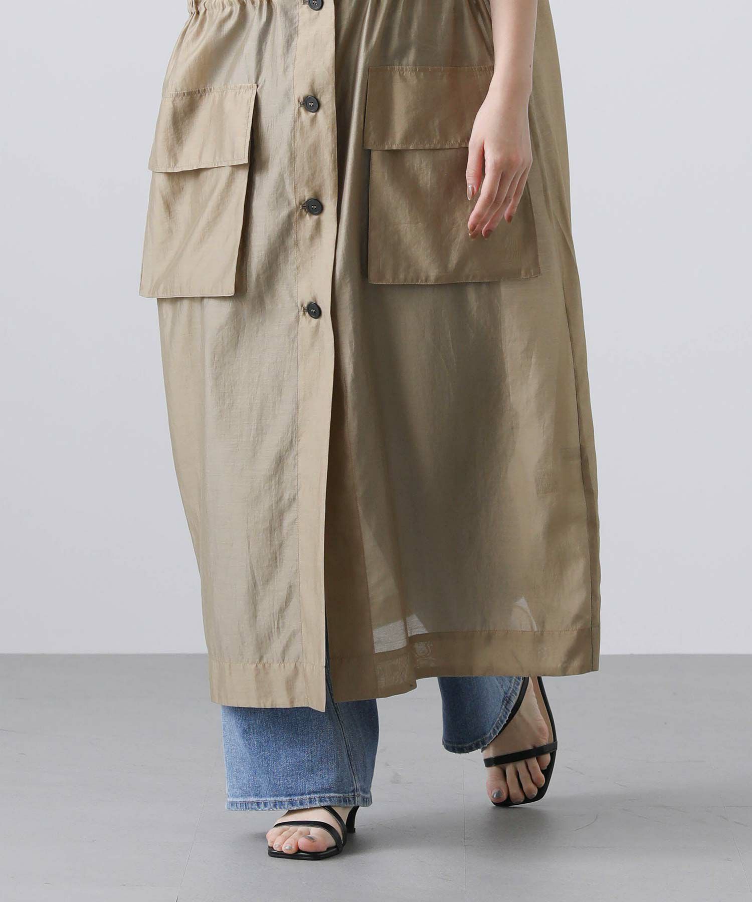 フロントはボタンを留めてワンピースとしても、開けてジレとしても着られます。