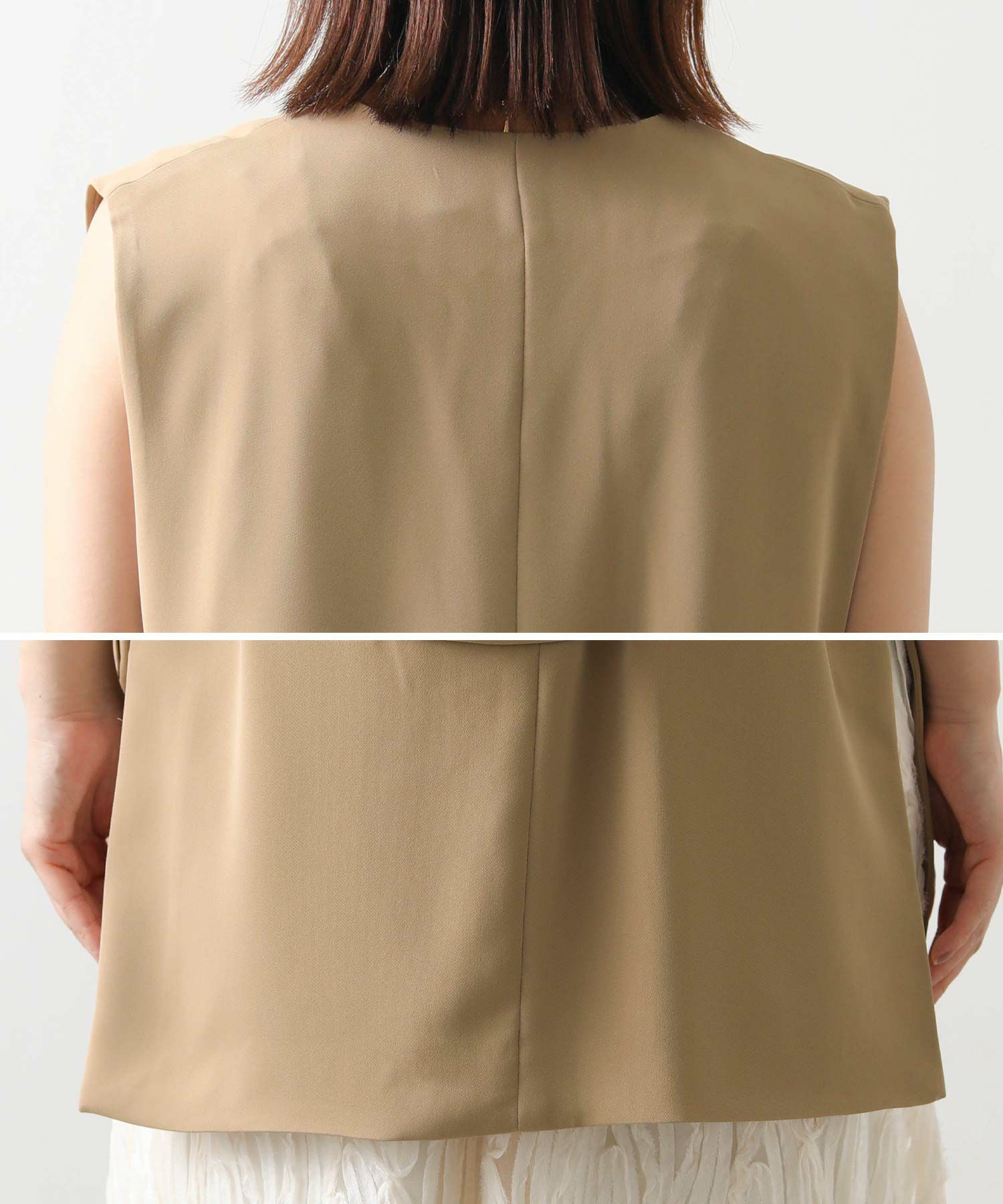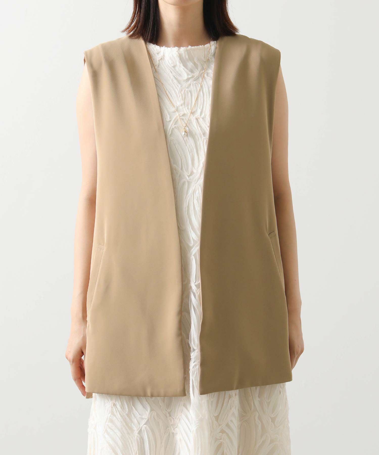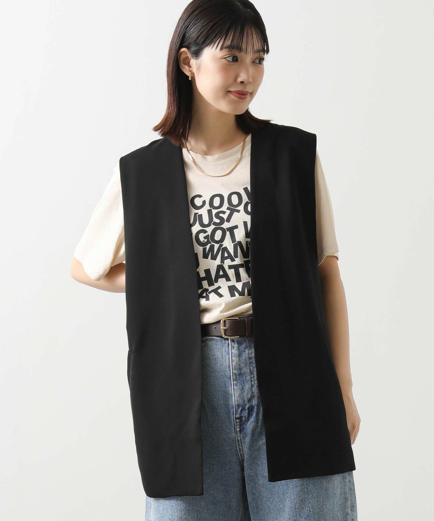 春に人気だったノーカラーのミディアム丈のジレ。人気のブラックに、秋を意識した新色キャメルを追加して登場!