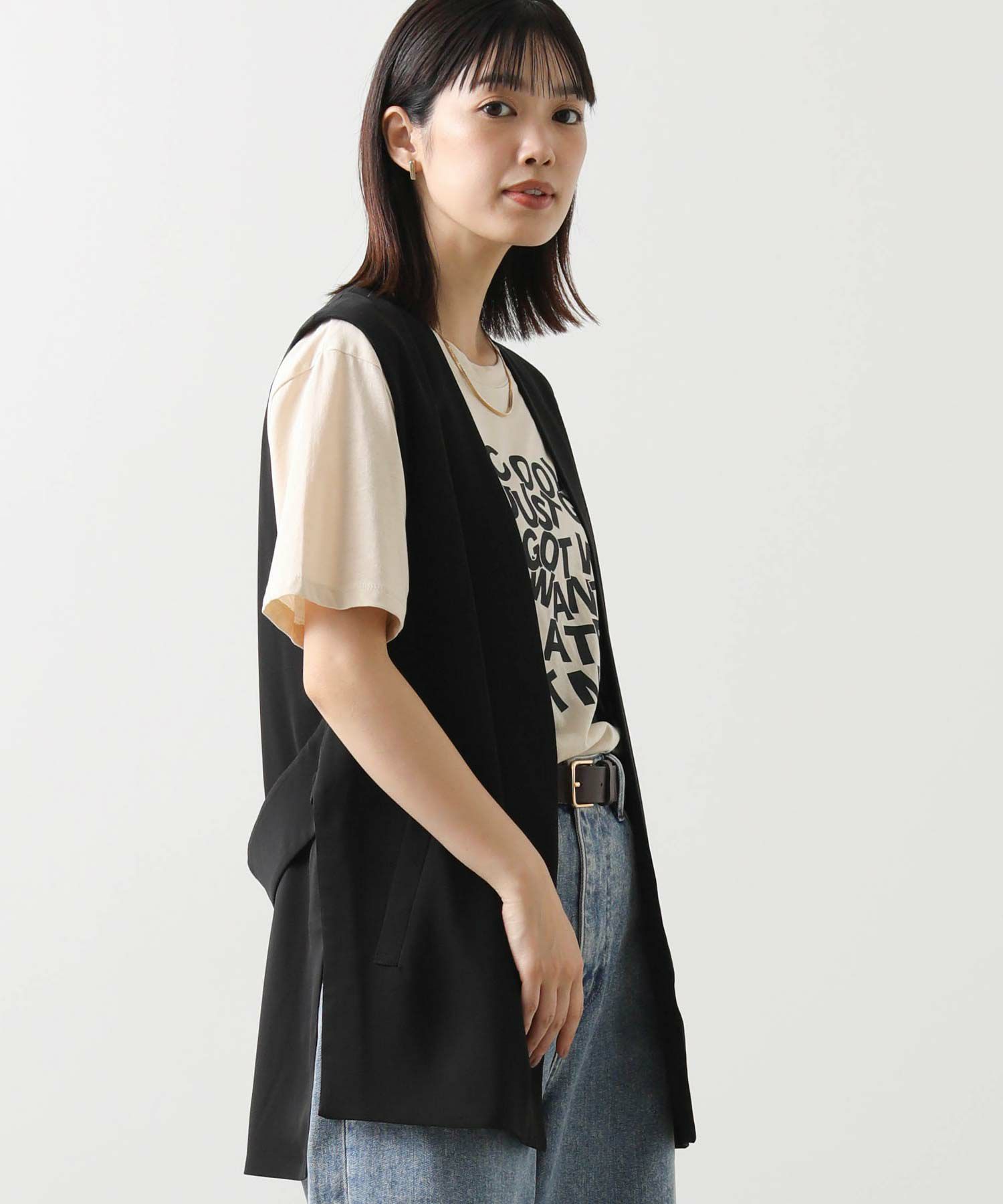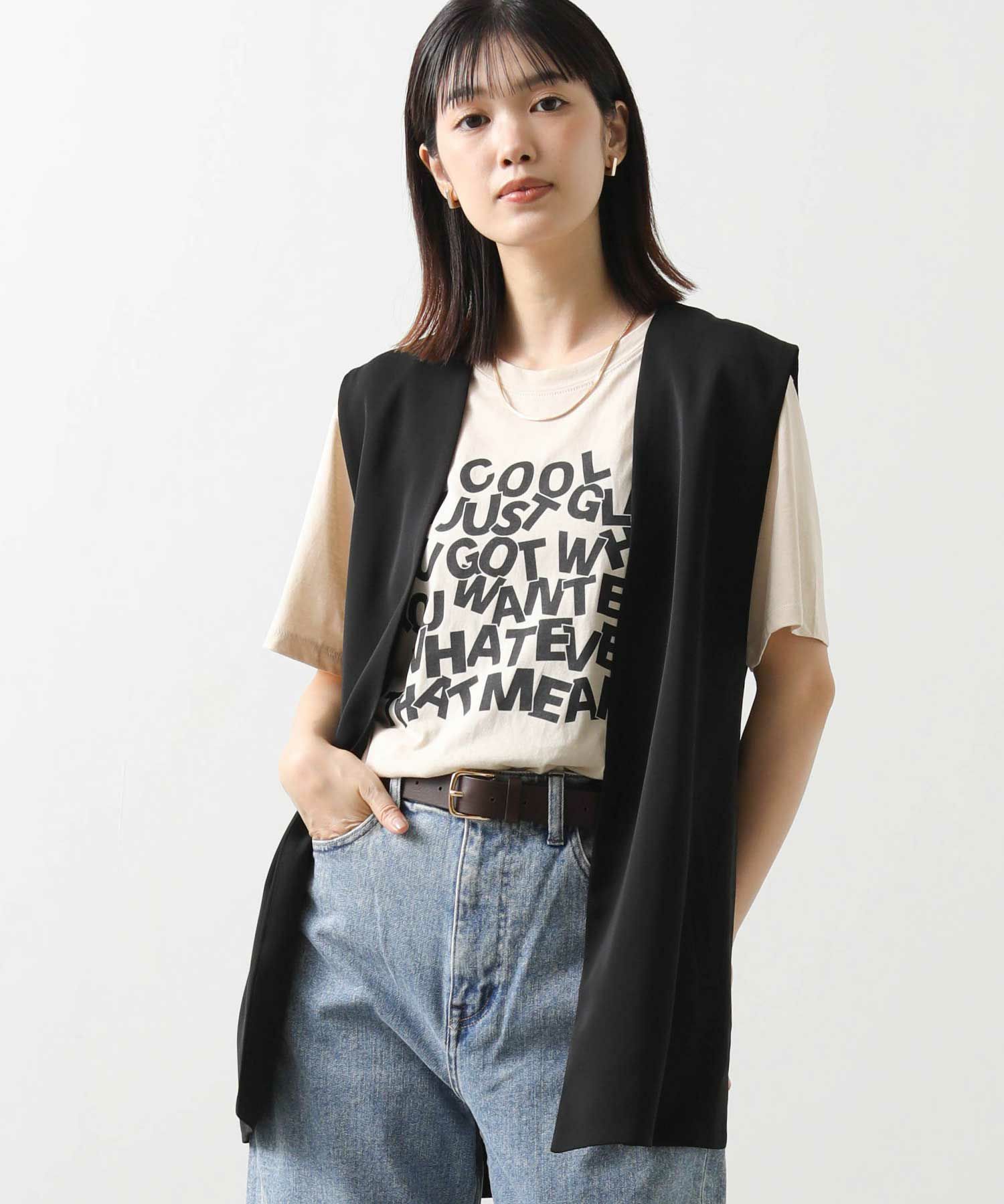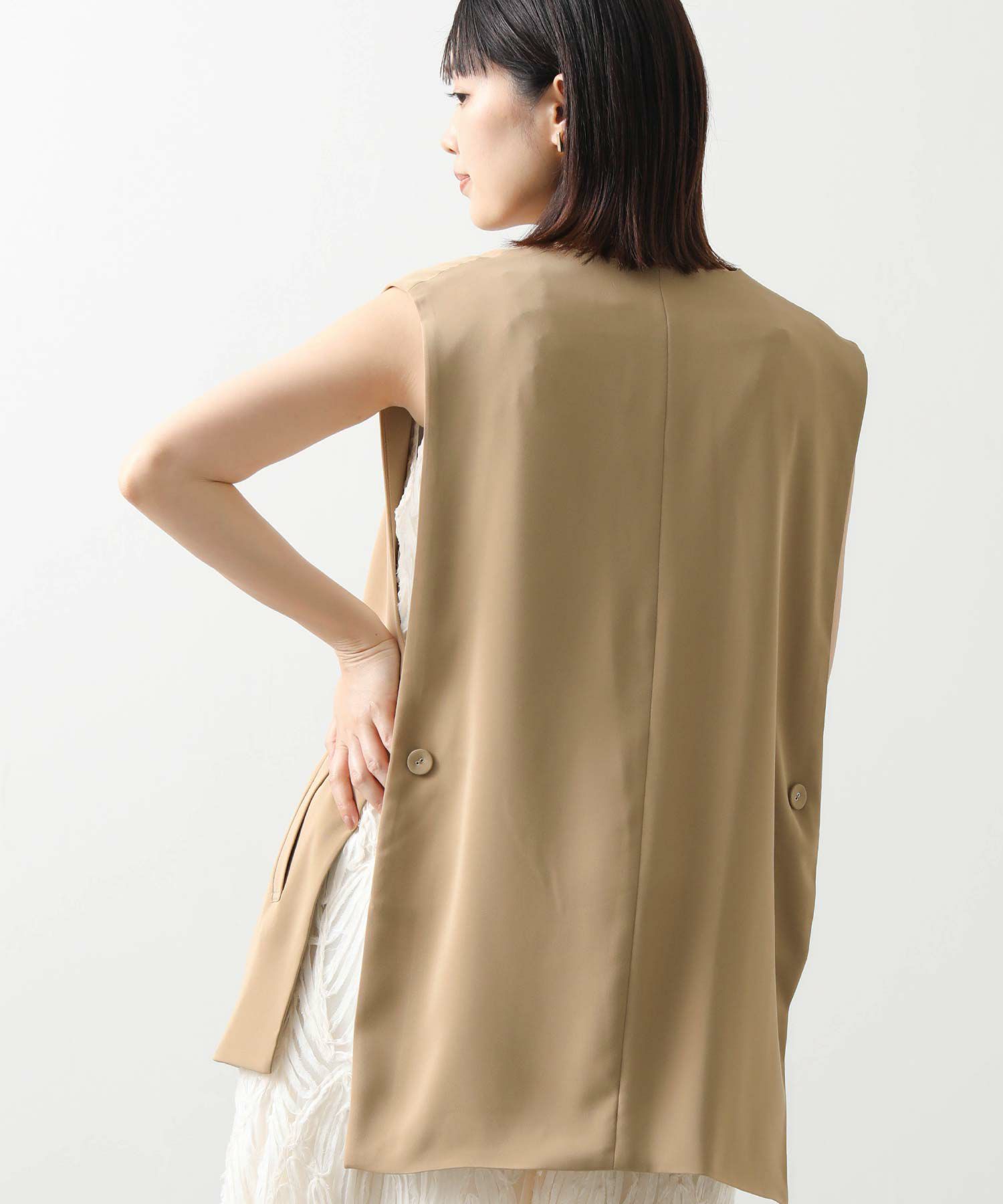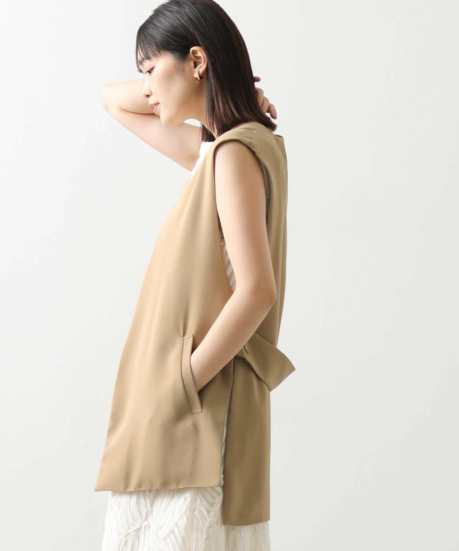 春に人気だったノーカラーのミディアム丈のジレ。人気のブラックに、秋を意識した新色キャメルを追加して登場!